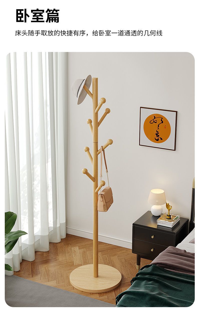 단단한 나무 코트 랙, 바닥에서 천장까지 침실 옷걸이, 현대적인 간단한 옷걸이, 거실 수직 간단한 가정용 가방 걸이스토어 가기
