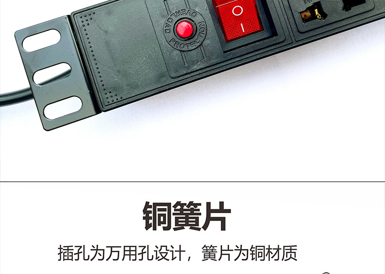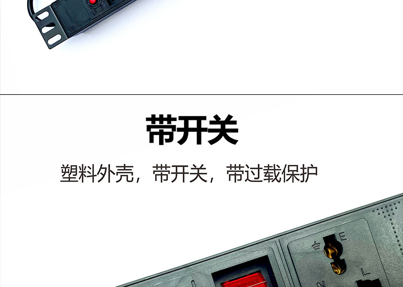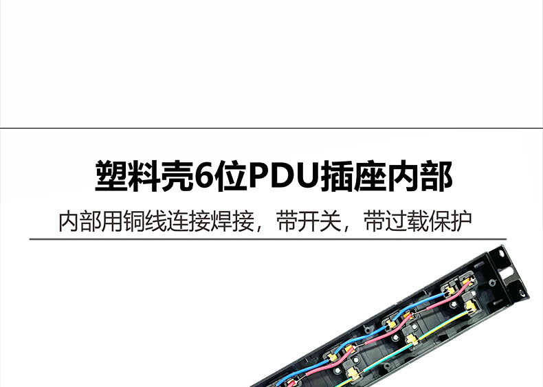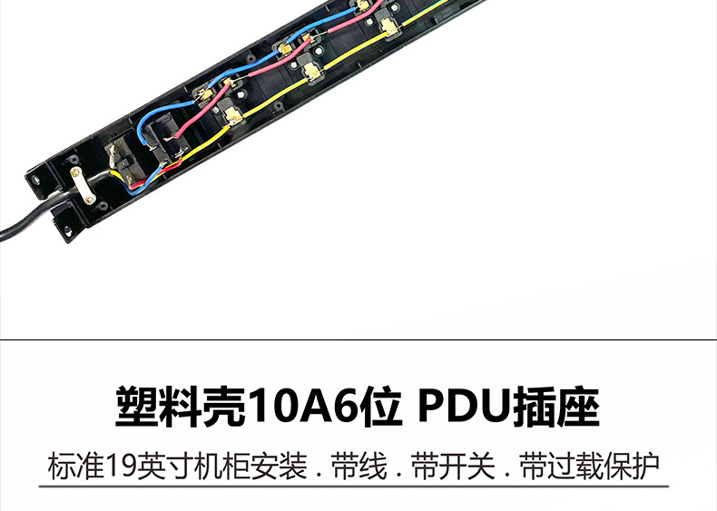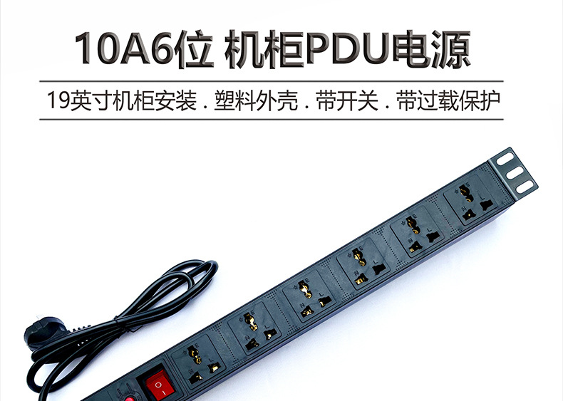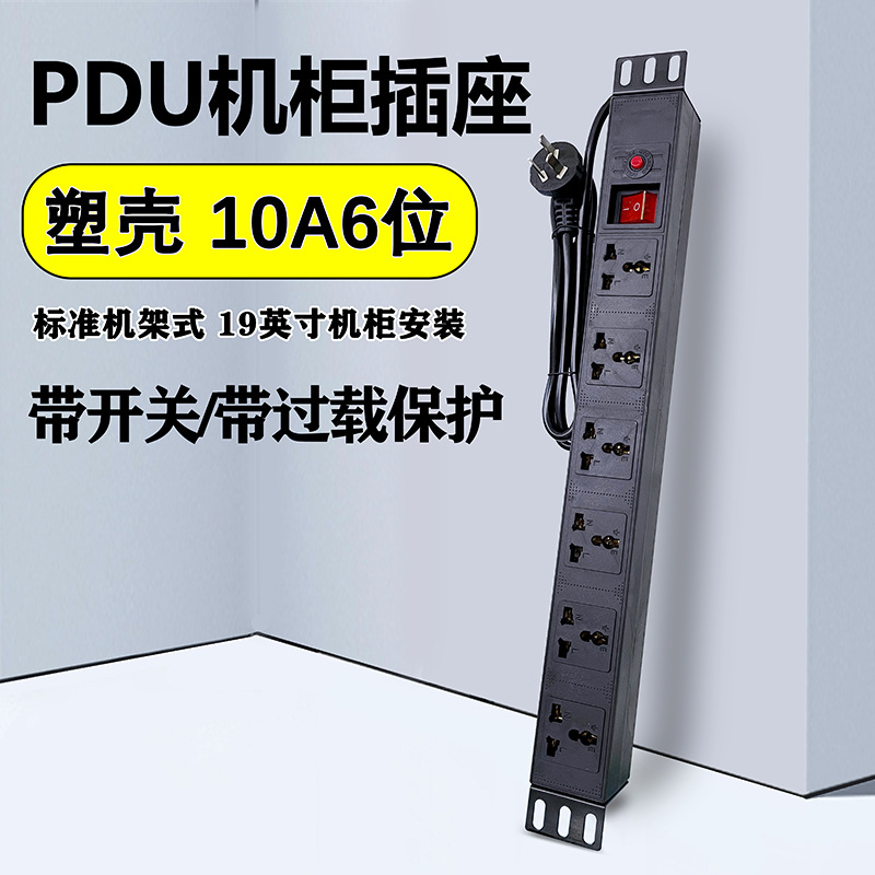 과부하 보호 배선 보드가 있는 스위치가 있는 6구 PDU 캐비닛 전원 소켓 플라스틱 쉘 10A6 잭