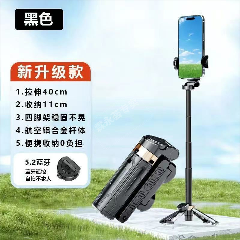블루투스 필 라이트가 장착된 미니 셀카봉 삼각대 2025 새로운 휴대폰 홀더는 360도 회전할 수 있습니다.