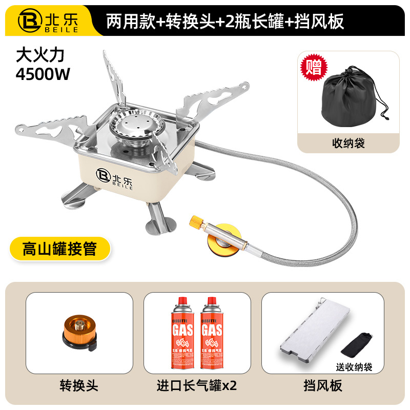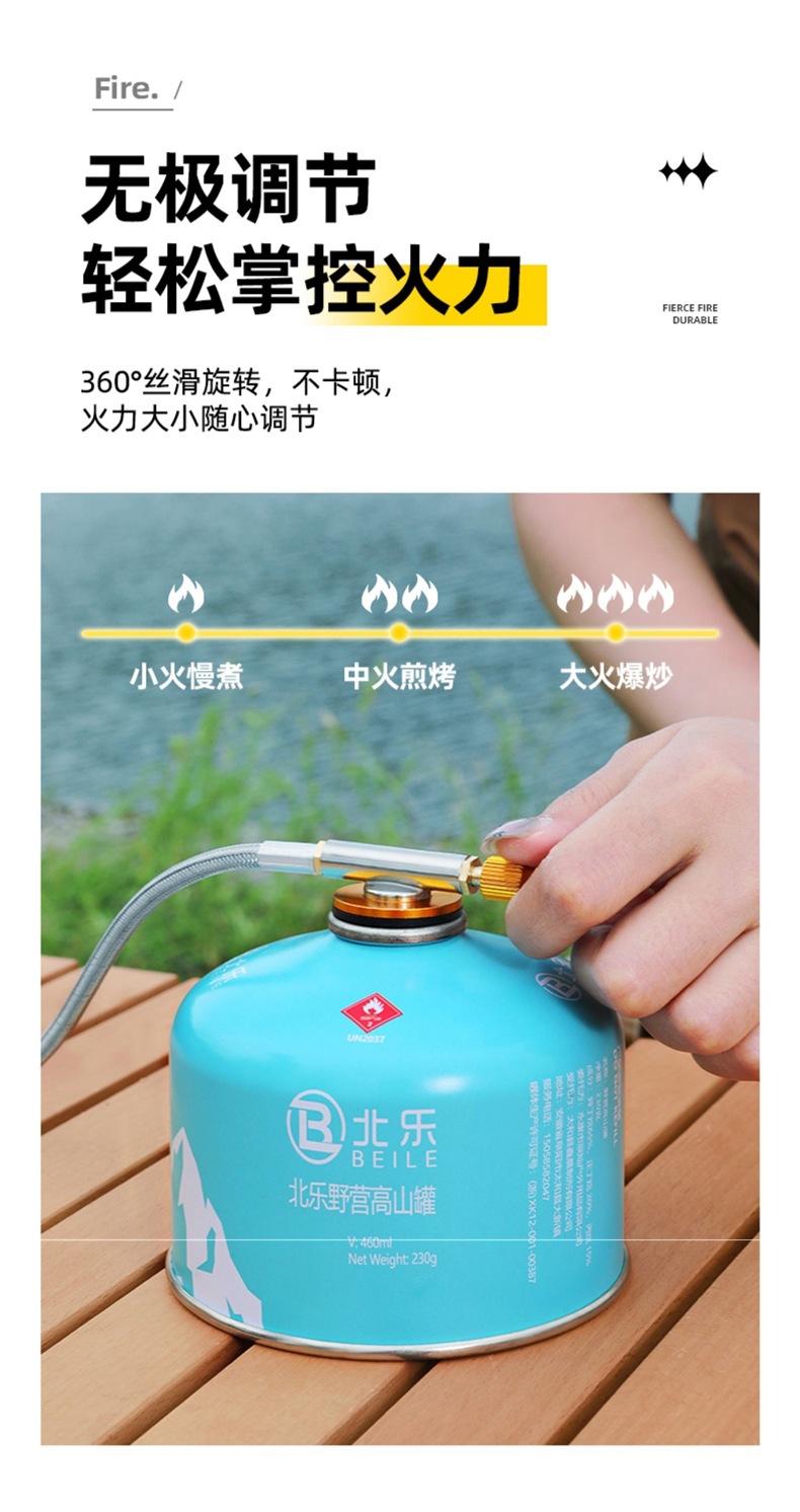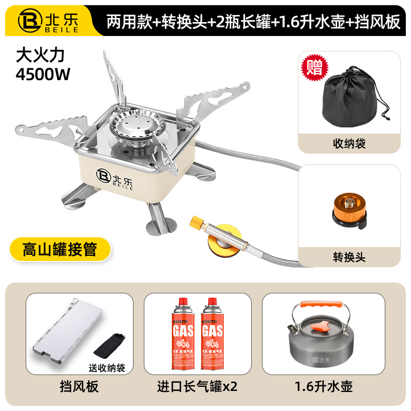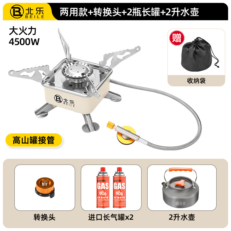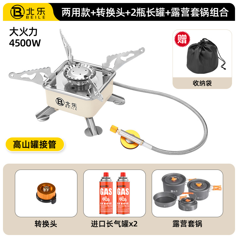 • 고급스러운 겸용모델 + 컨버터블 헤드 + 220g 수입가스 2병 + 캠핑 냄비 세트 조합
