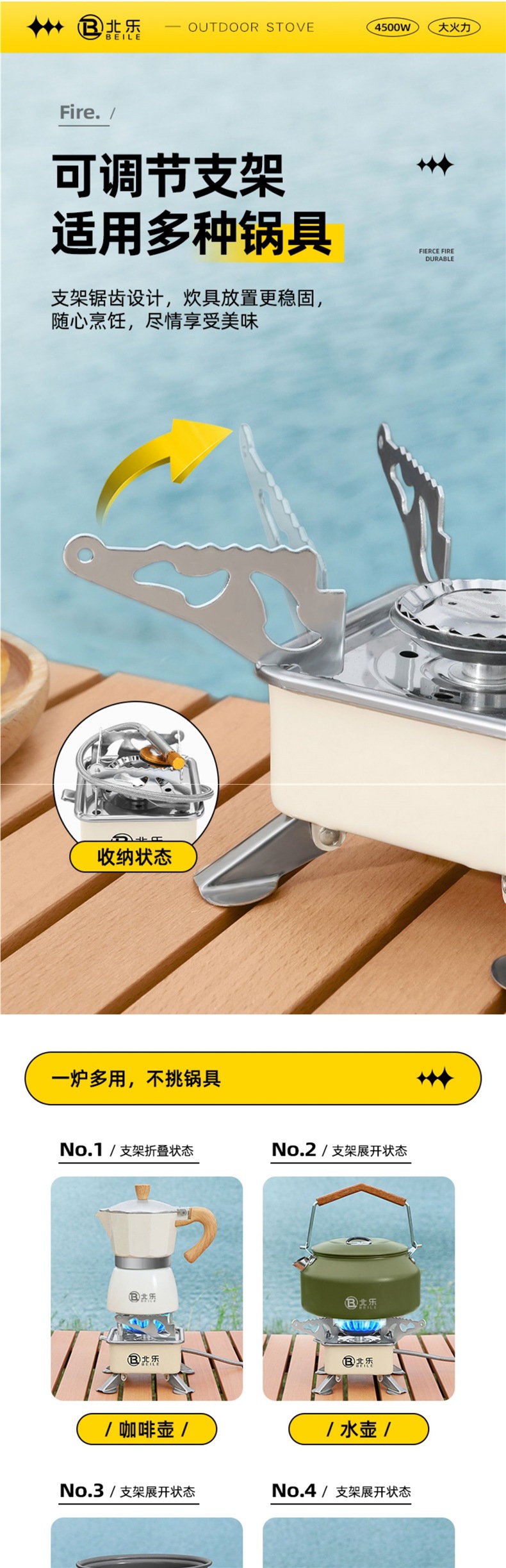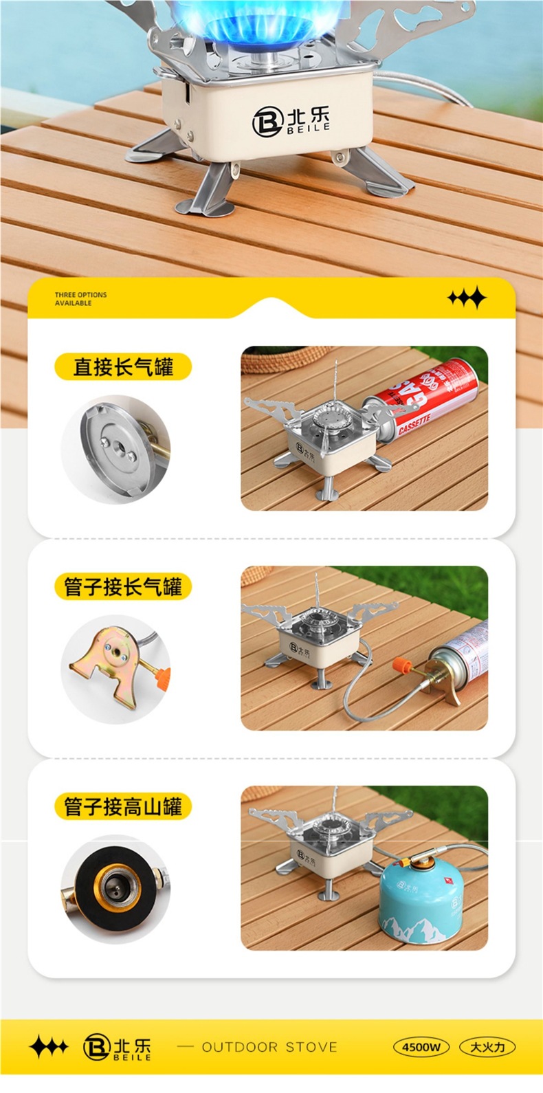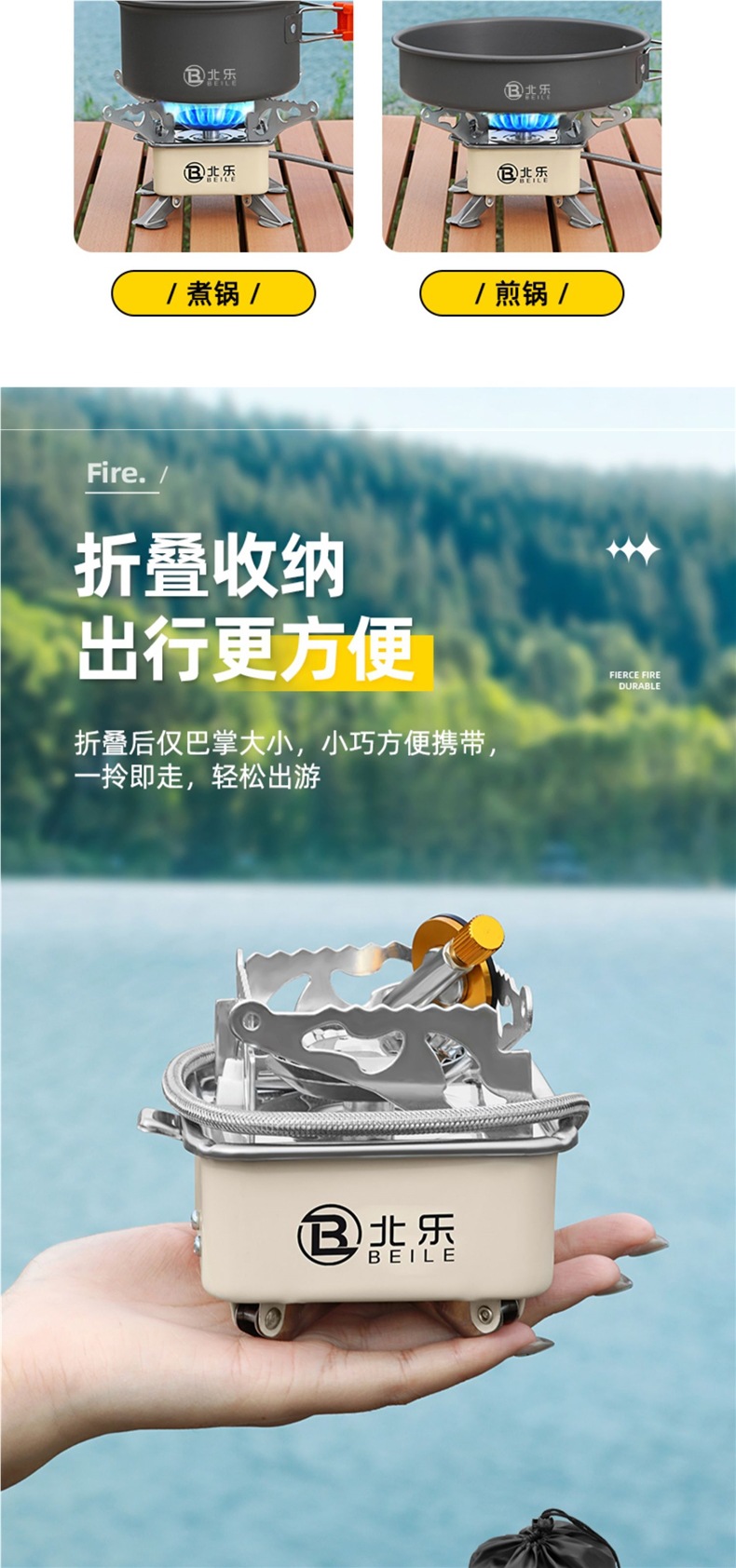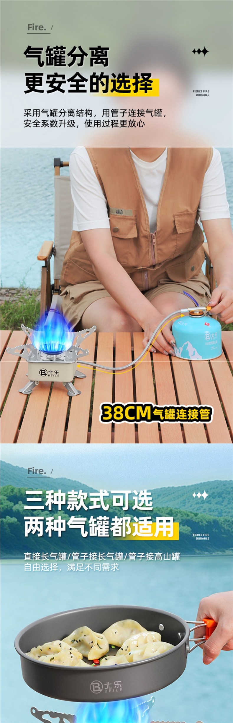 • 고급스러운 겸용모델 + 컨버터블 헤드 + 220g 수입가스 2병 + 캠핑 냄비 세트 조합