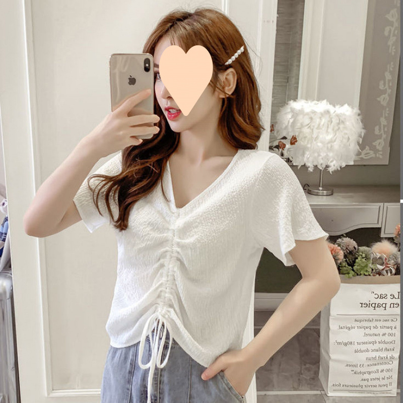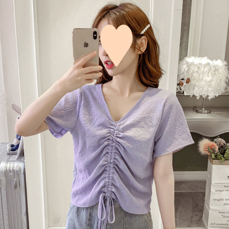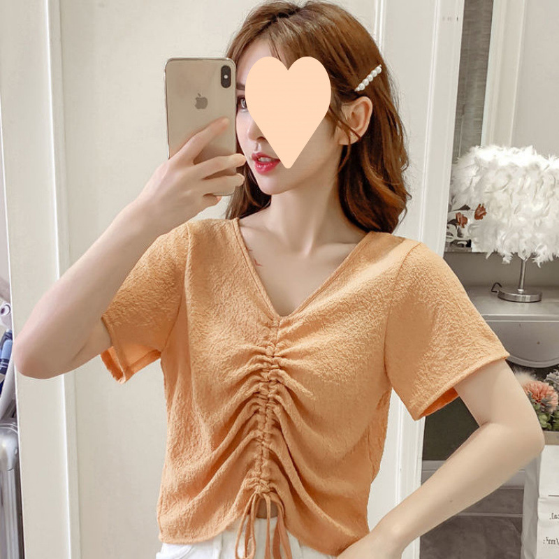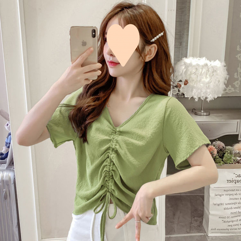 여성용 쉬폰 탑, 여름 디자인, 틈새 프렌치 시크 칼라 드로스트링 버블 주름 셔츠, 달콤한 반팔 셔츠, 트렌디스토어 가기