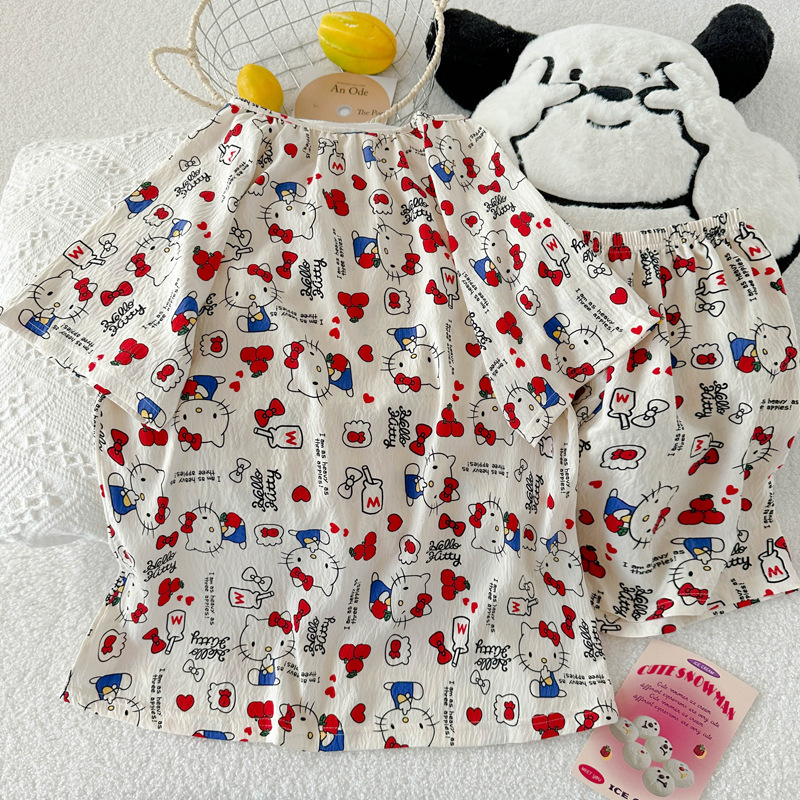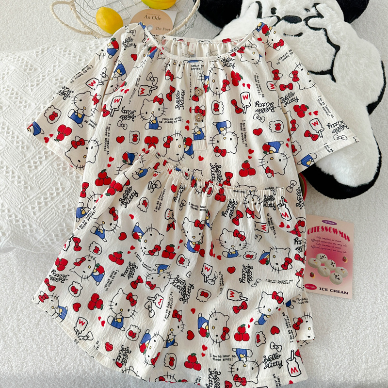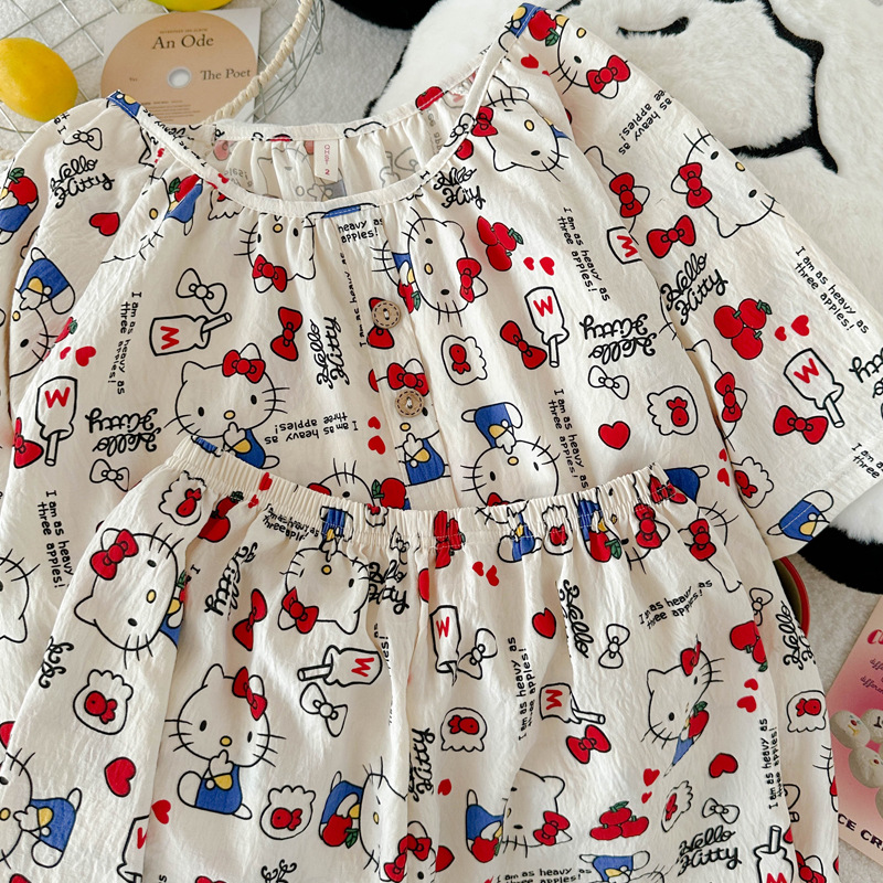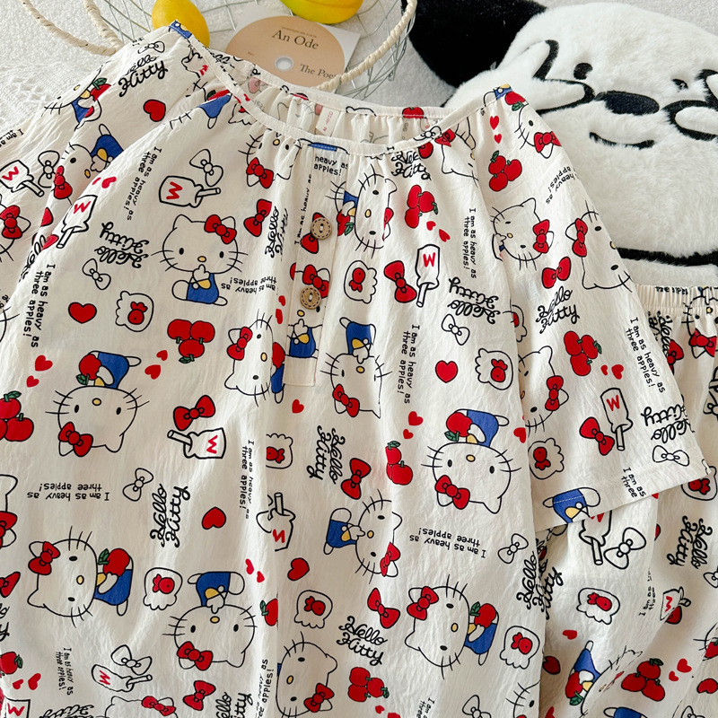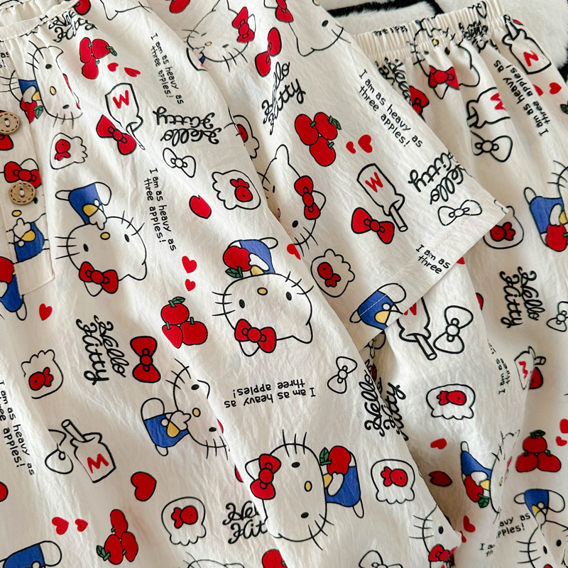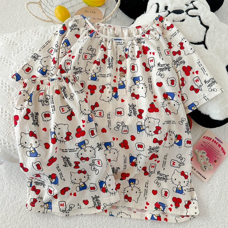 KT 고양이 잠옷 여성 여름 반팔 반바지 클라우드 코튼 라운드 넥 귀여운 학생은 집 밖에서 입을 수 있습니다.스토어 가기