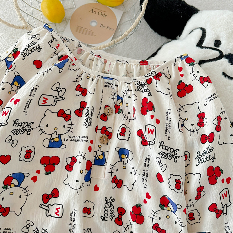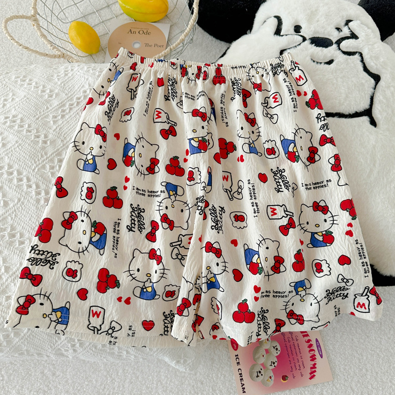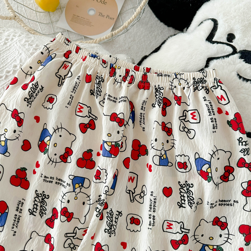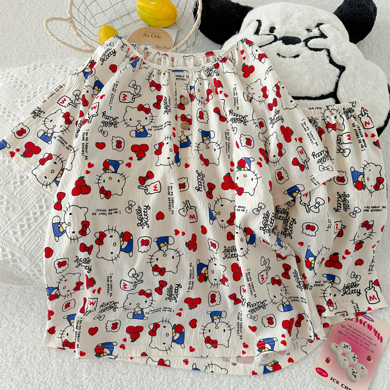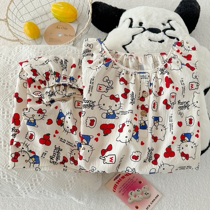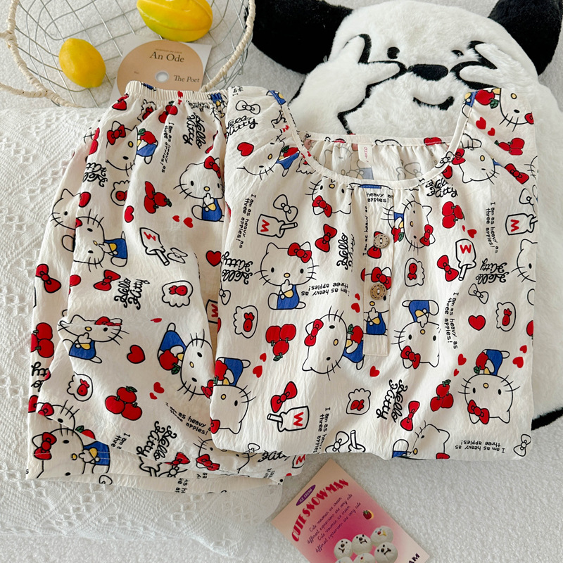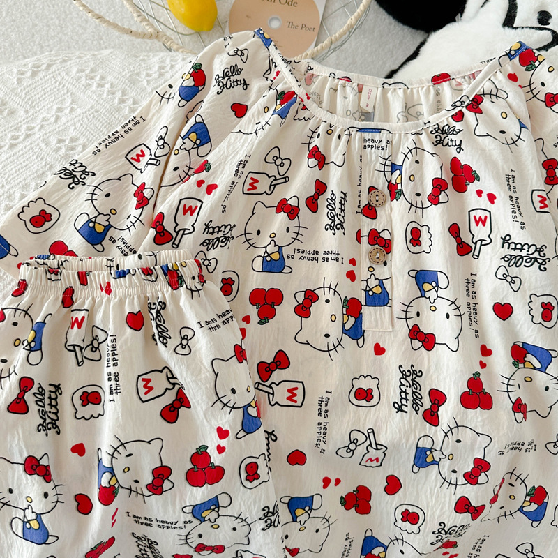KT 고양이 잠옷 여성 여름 반팔 반바지 클라우드 코튼 라운드 넥 귀여운 학생은 집 밖에서 입을 수 있습니다.스토어 가기