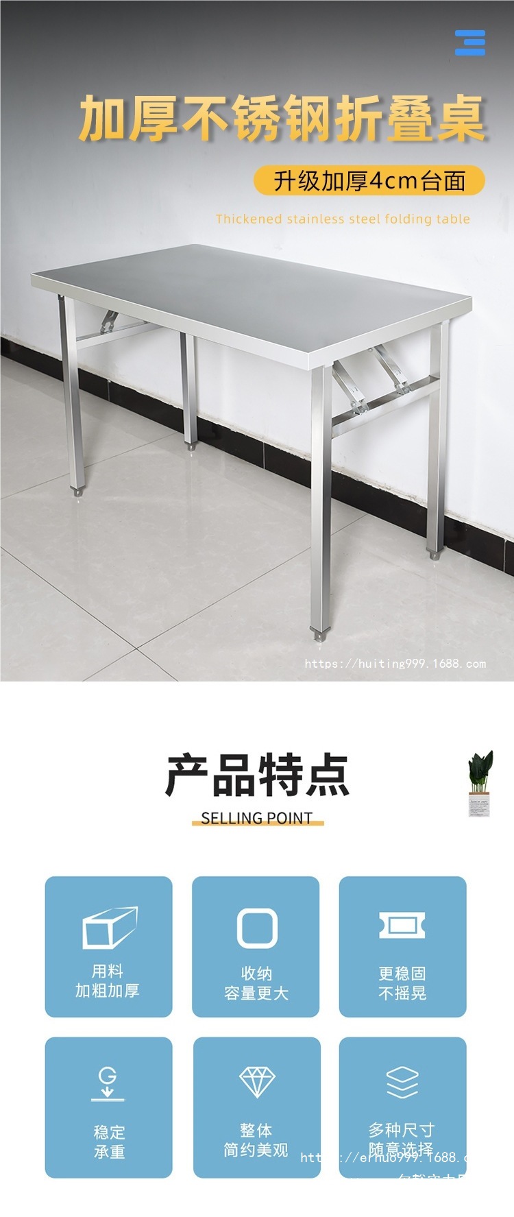 두꺼운 스테인레스 스틸 접이식 테이블 가정용 긴 테이블 상업용 직사각형 야외 바베큐 스톨 휴대용 식탁스토어 가기