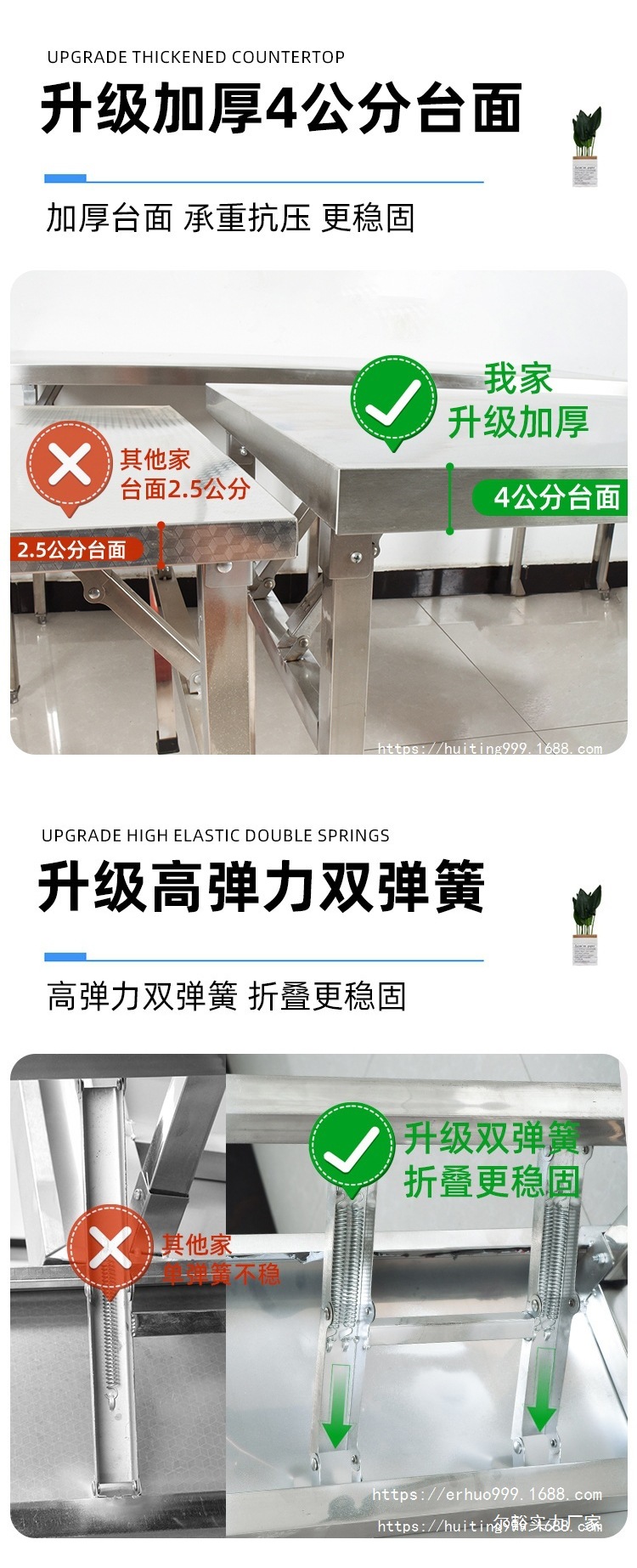 두꺼운 스테인레스 스틸 접이식 테이블 가정용 긴 테이블 상업용 직사각형 야외 바베큐 스톨 휴대용 식탁
