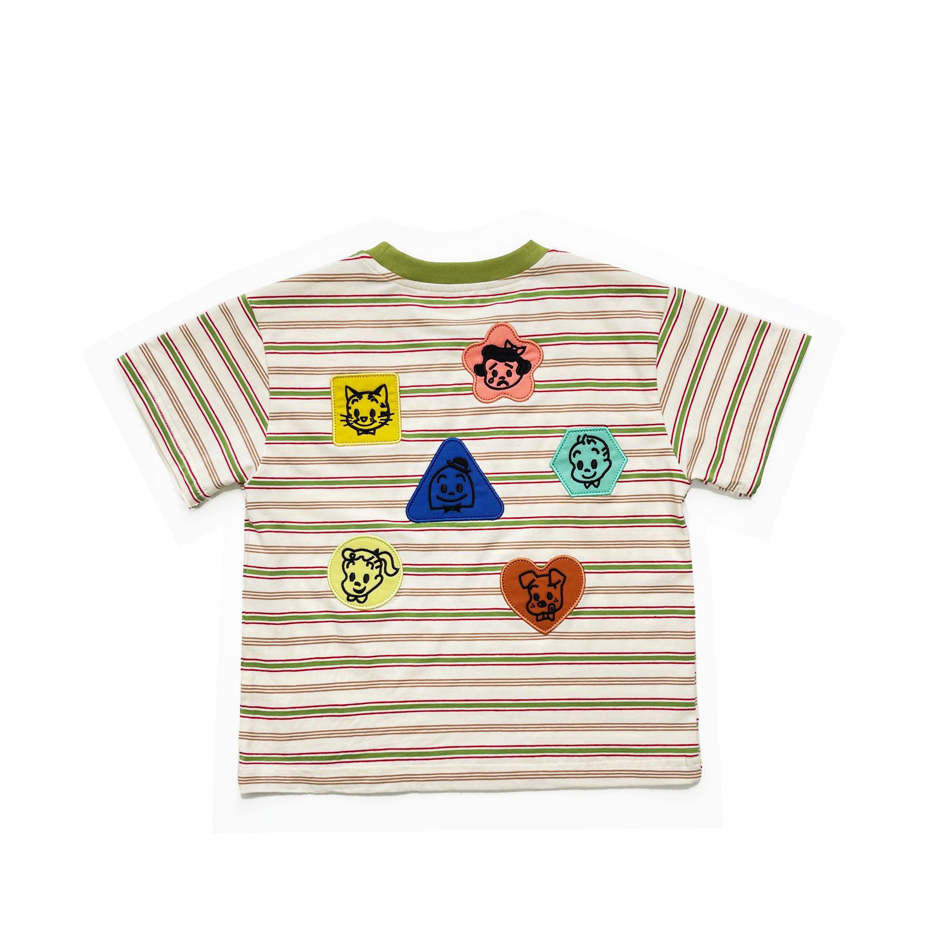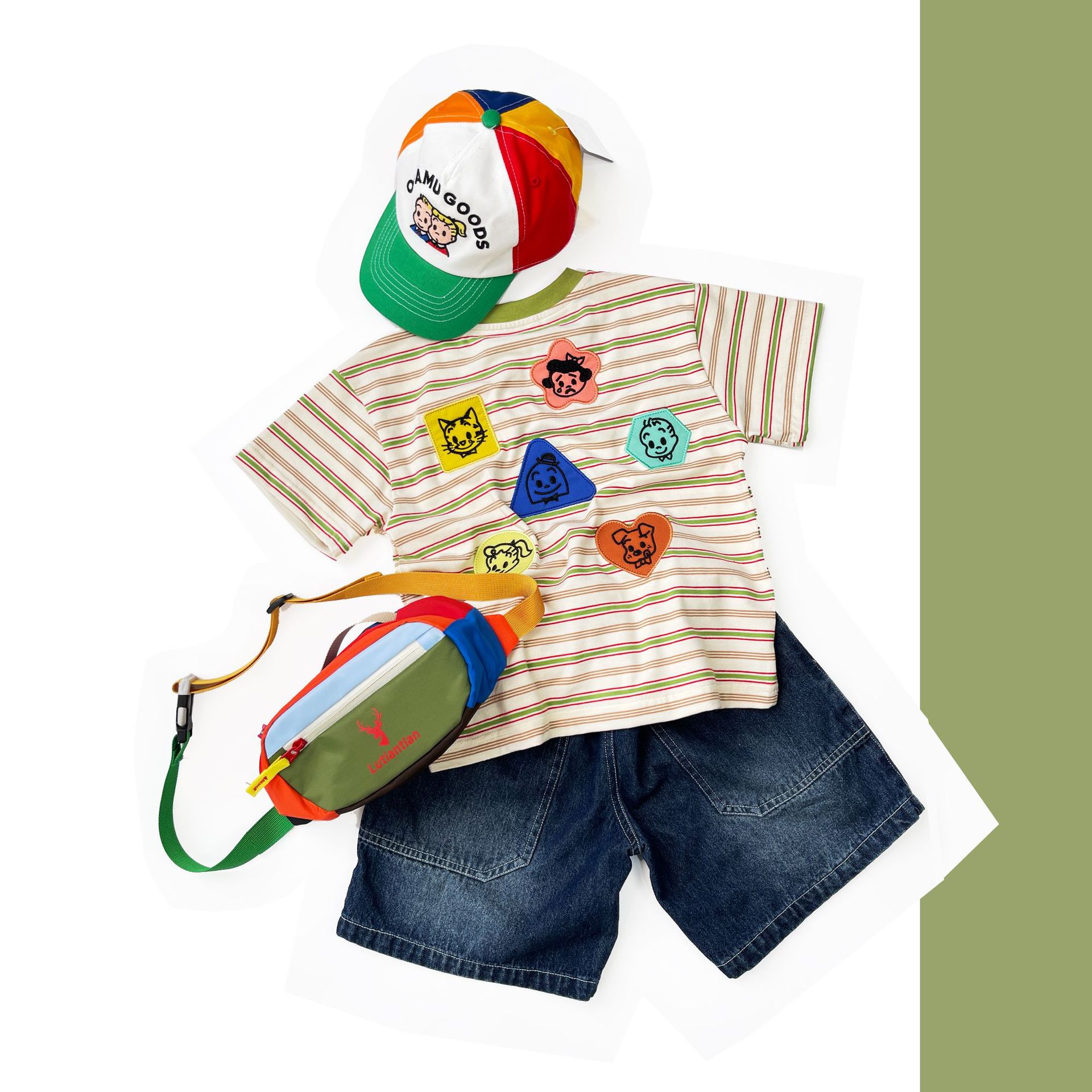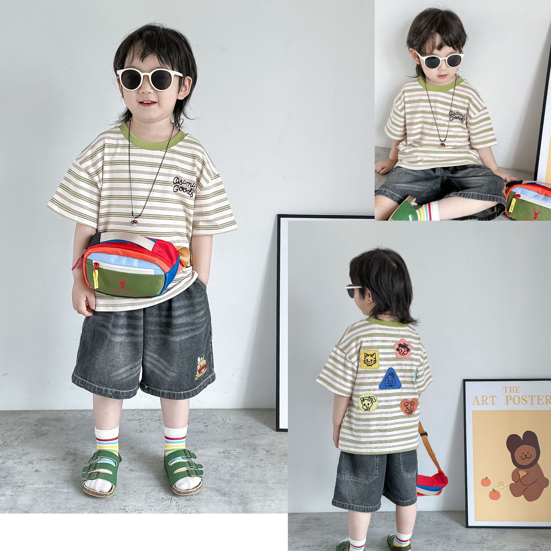 Spot Harada Nozomi 아동 여름 의류 아동용 라운드 넥 반팔 스트라이프 셔츠 새로운 소년 만화 자수 라운드 넥 티셔츠스토어 가기
