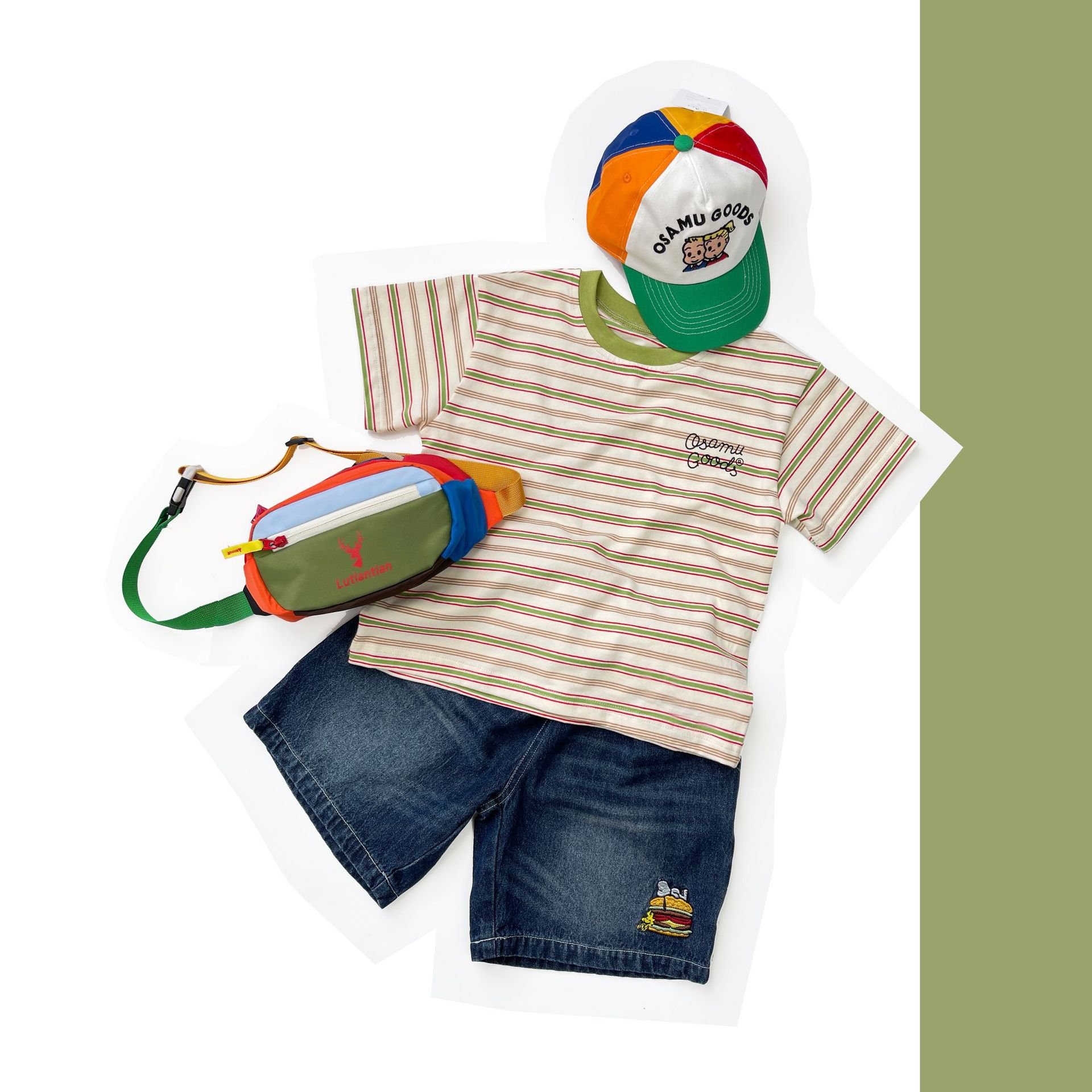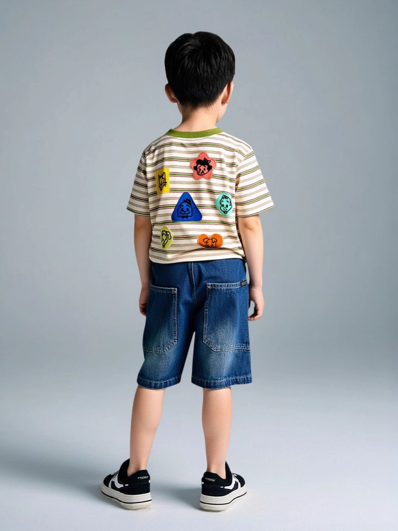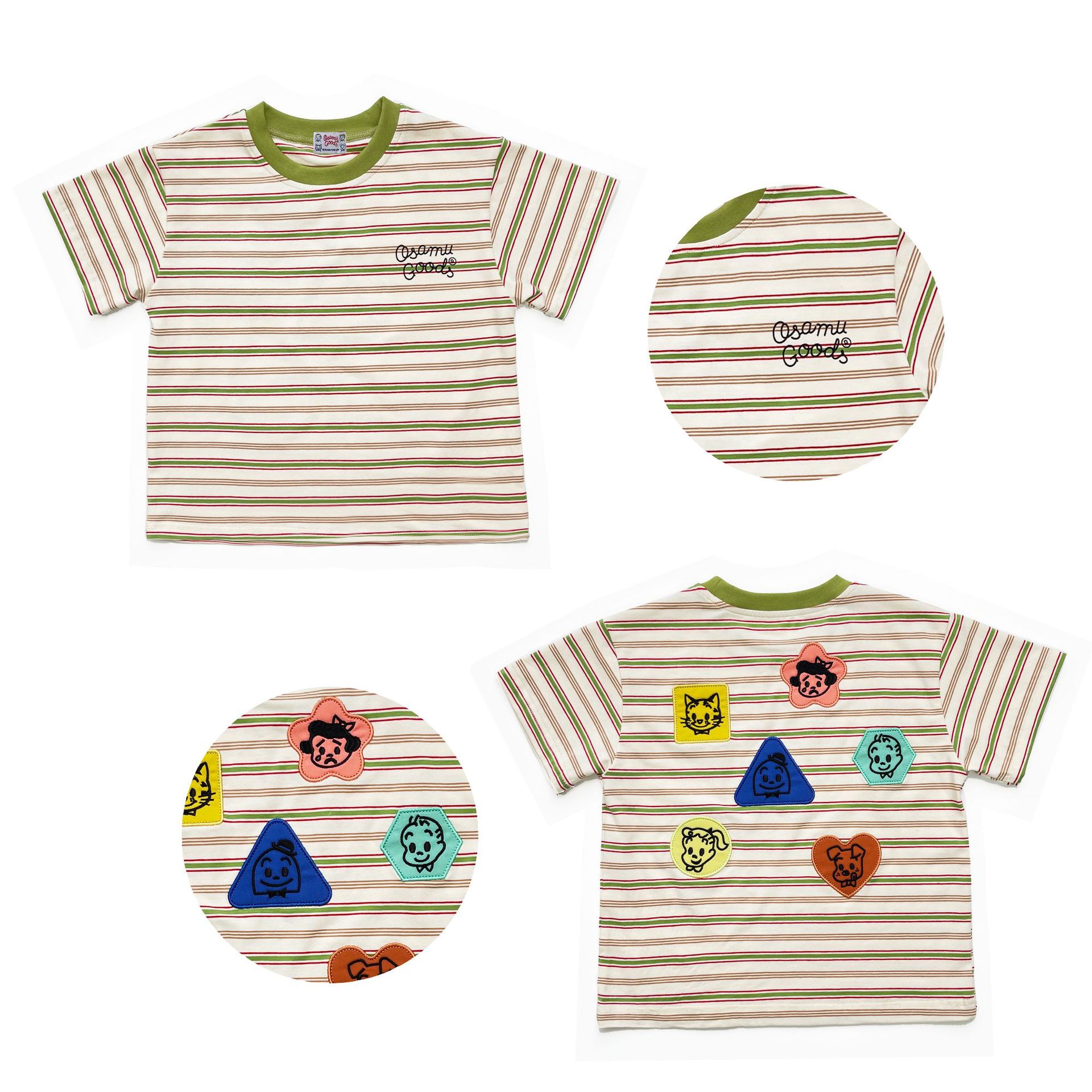 Spot Harada Nozomi 아동 여름 의류 아동용 라운드 넥 반팔 스트라이프 셔츠 새로운 소년 만화 자수 라운드 넥 티셔츠스토어 가기