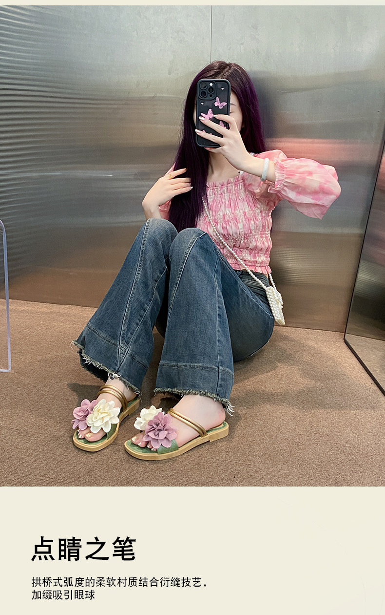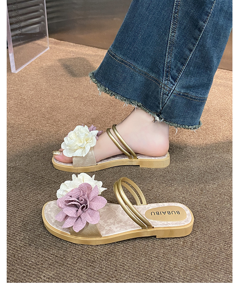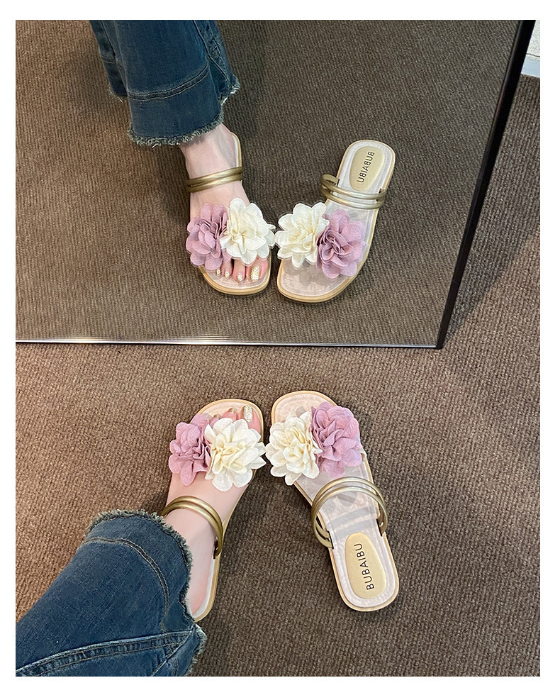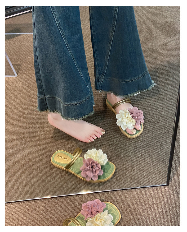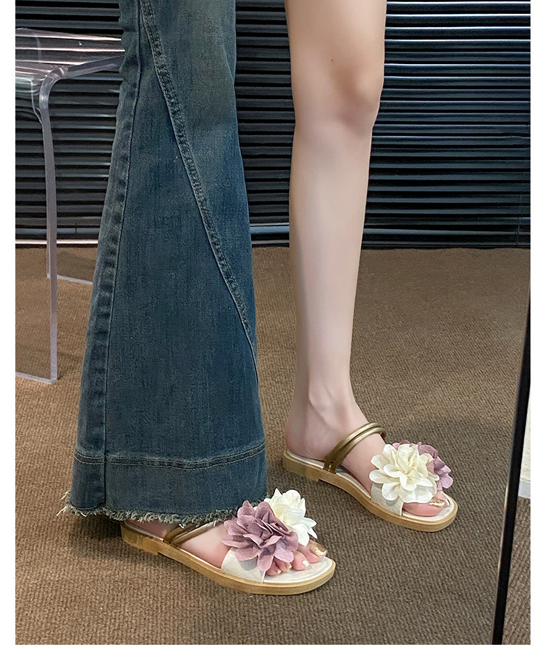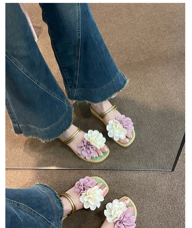 아름다운 요정 스타일 디자인 틈새 투웨어 투인원 로우힐 샌들 2025 신상 여름 아우터 샌들스토어 가기