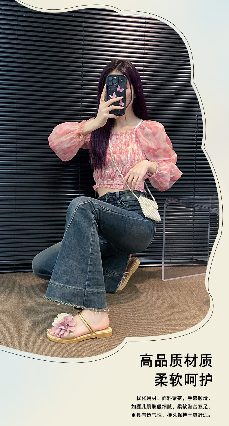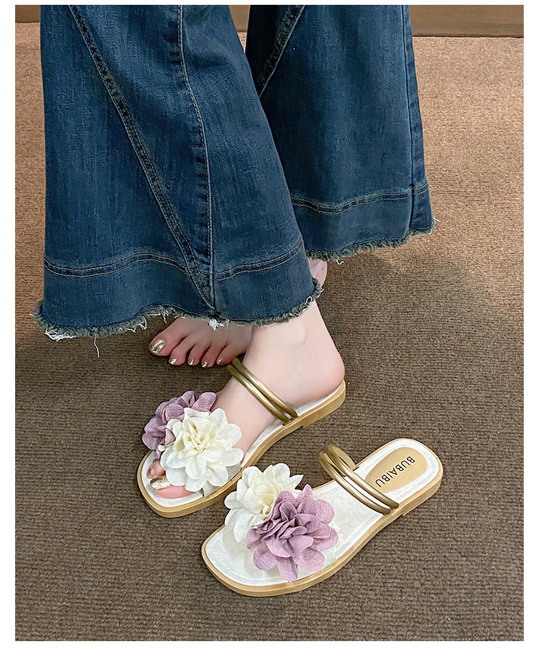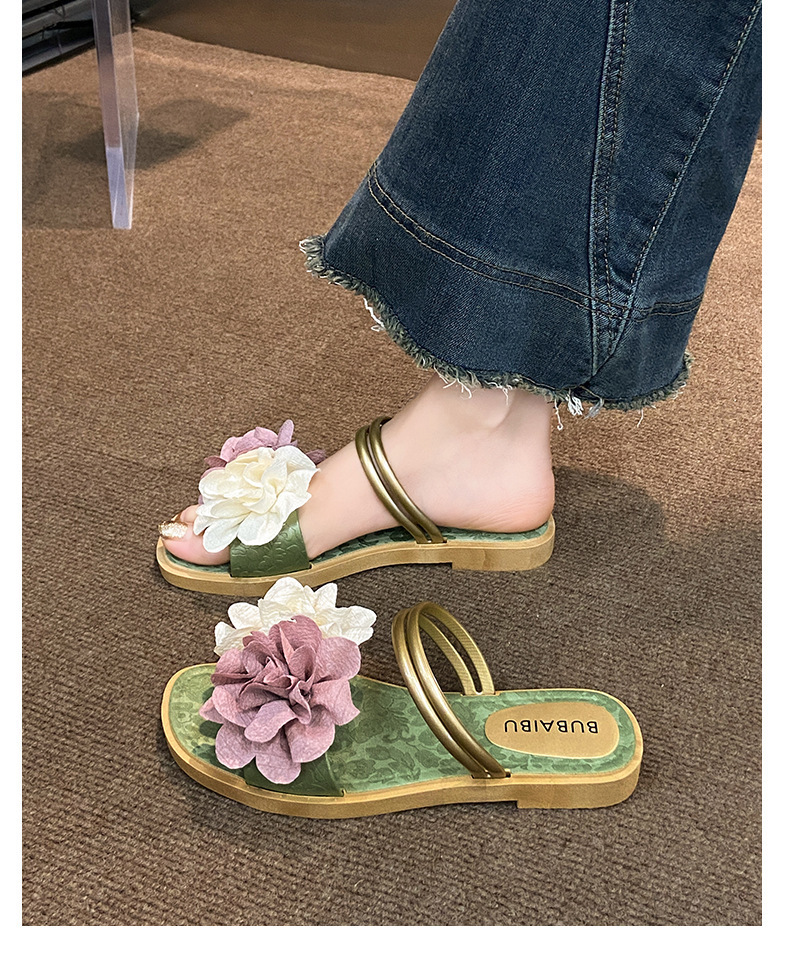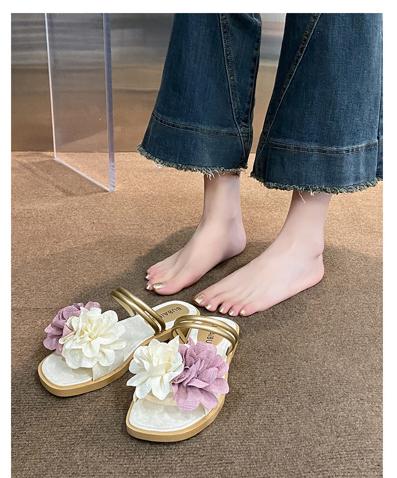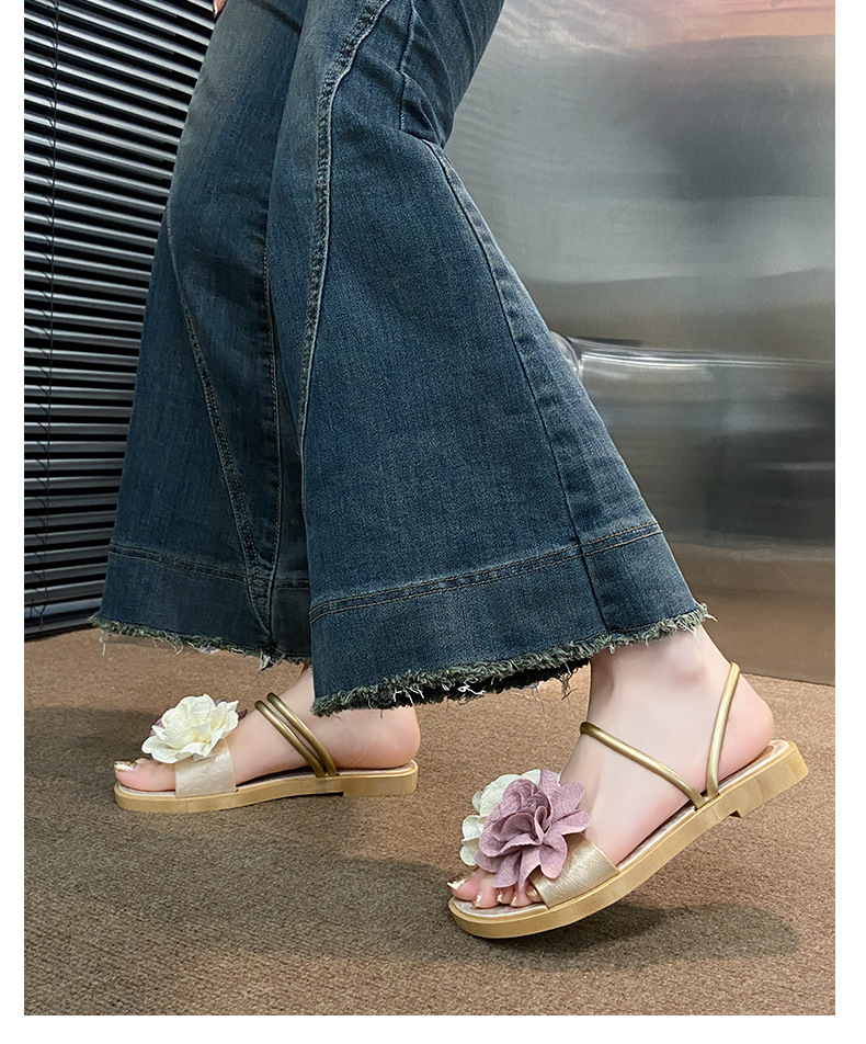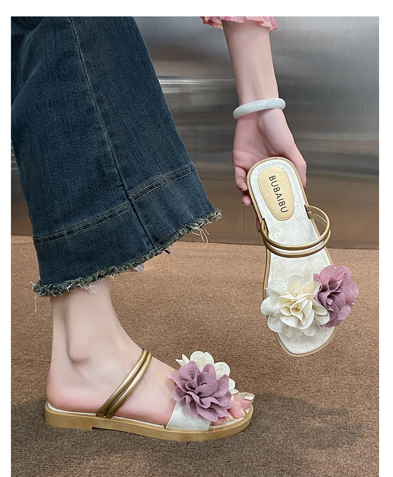 아름다운 요정 스타일 디자인 틈새 투웨어 투인원 로우힐 샌들 2025 신상 여름 아우터 샌들스토어 가기