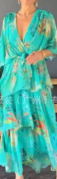 2025년 유럽 및 미국 해외 아마존 독립 홈페이지 신상 봄 여름 그라데이션 프린트 레이어드 패션 여성 원피스스토어 가기