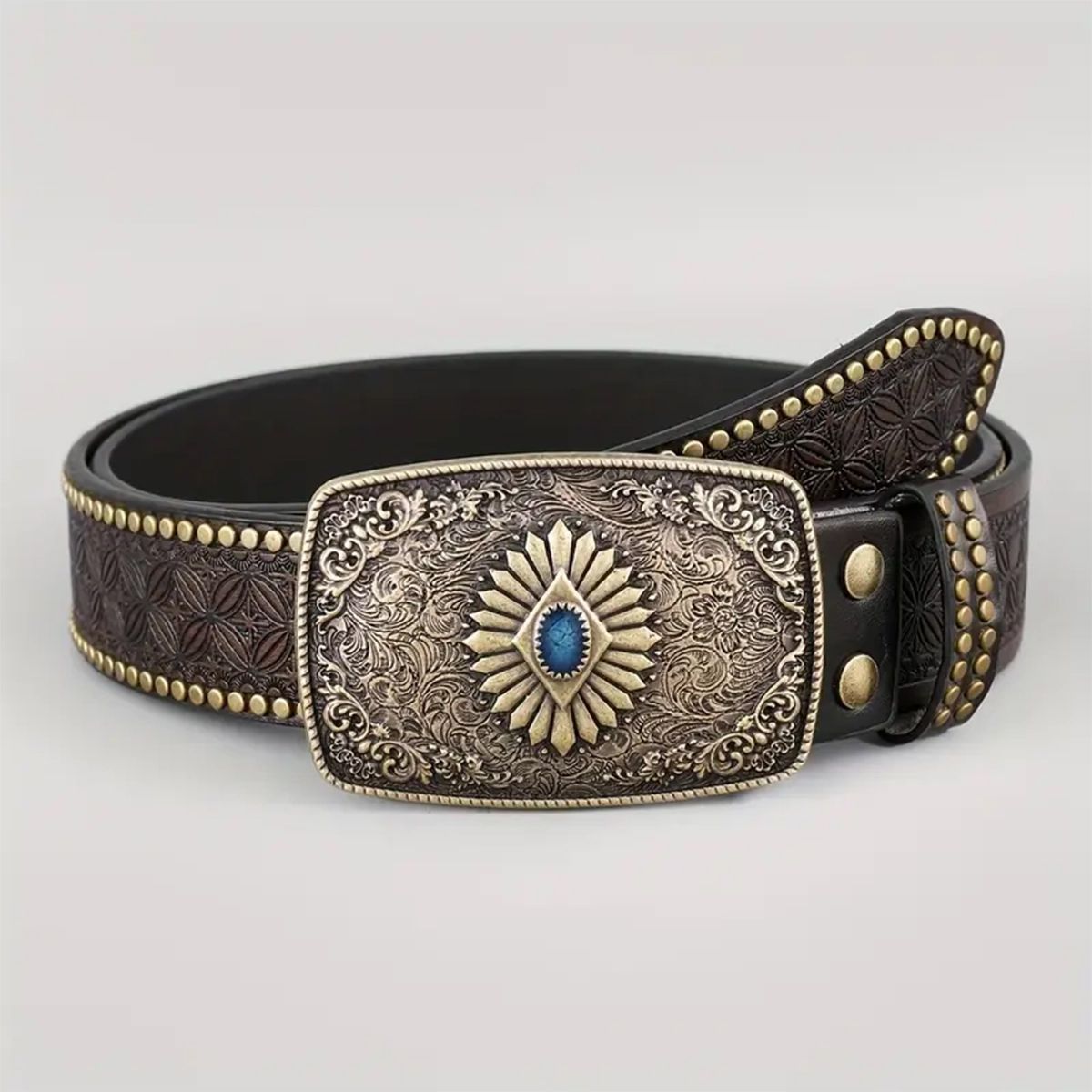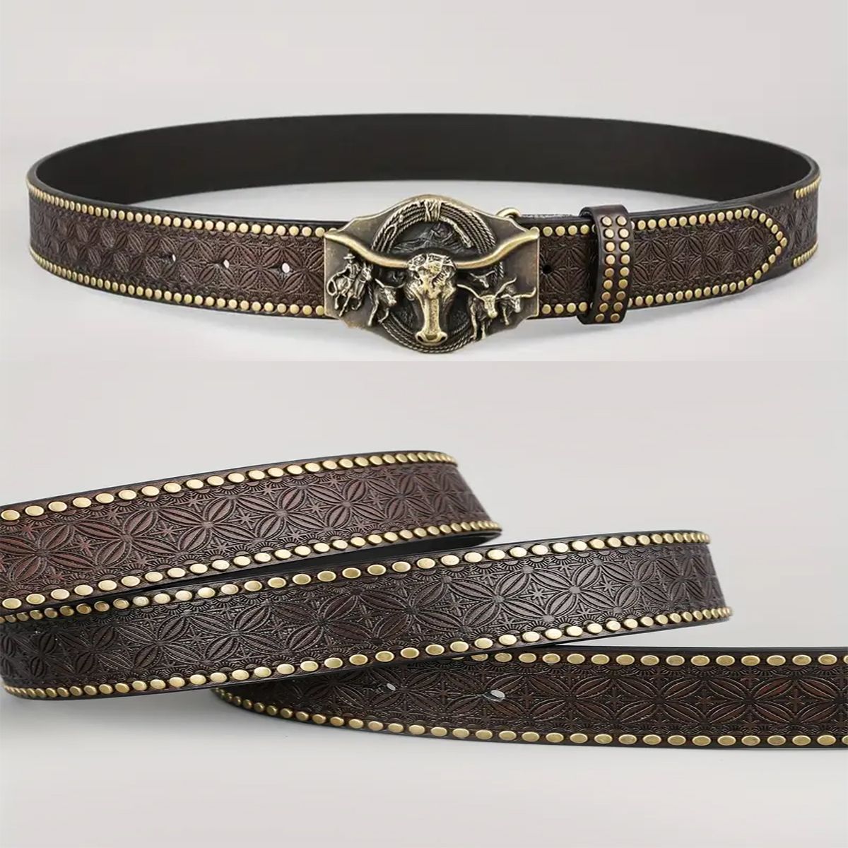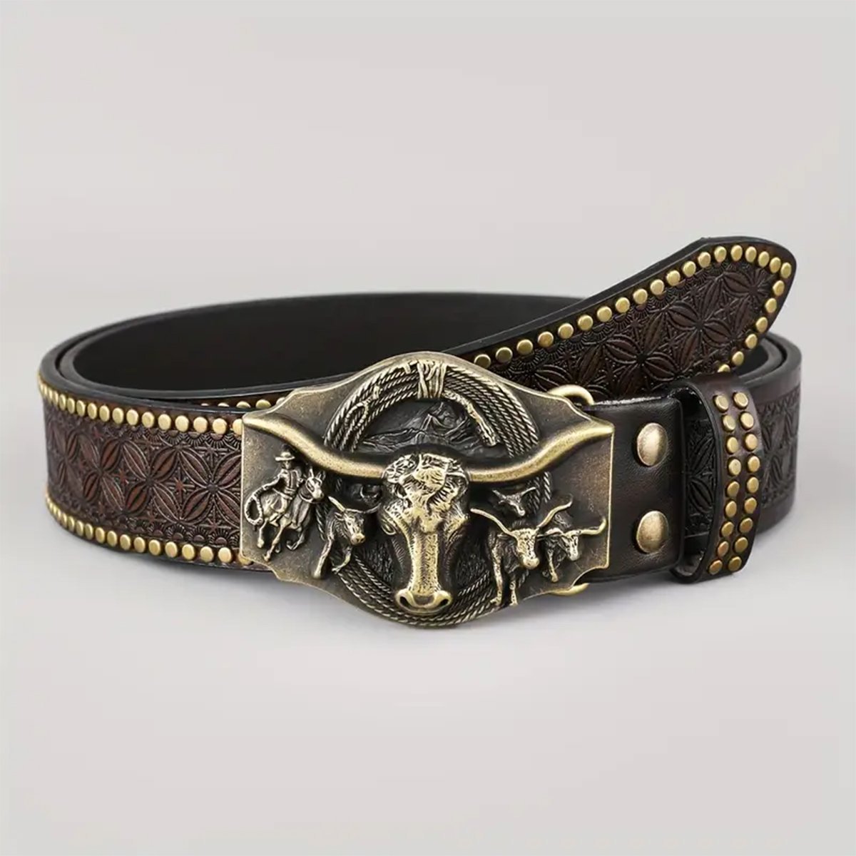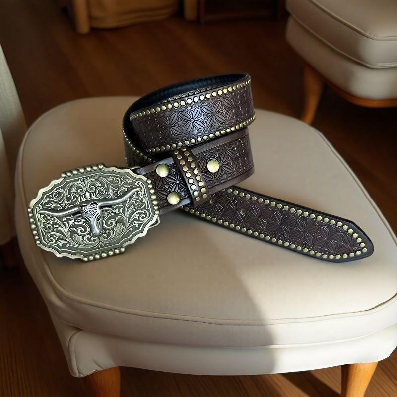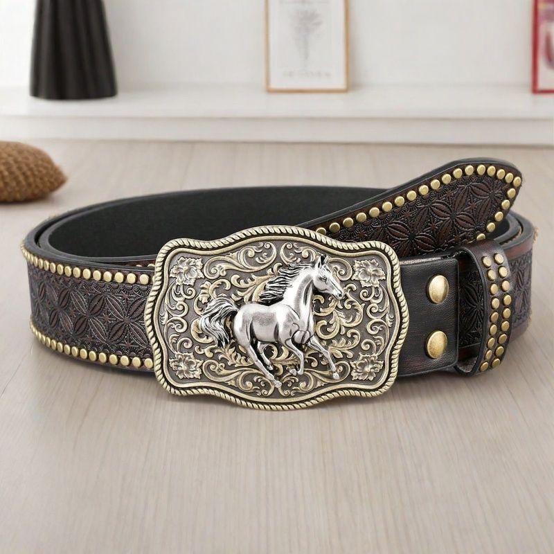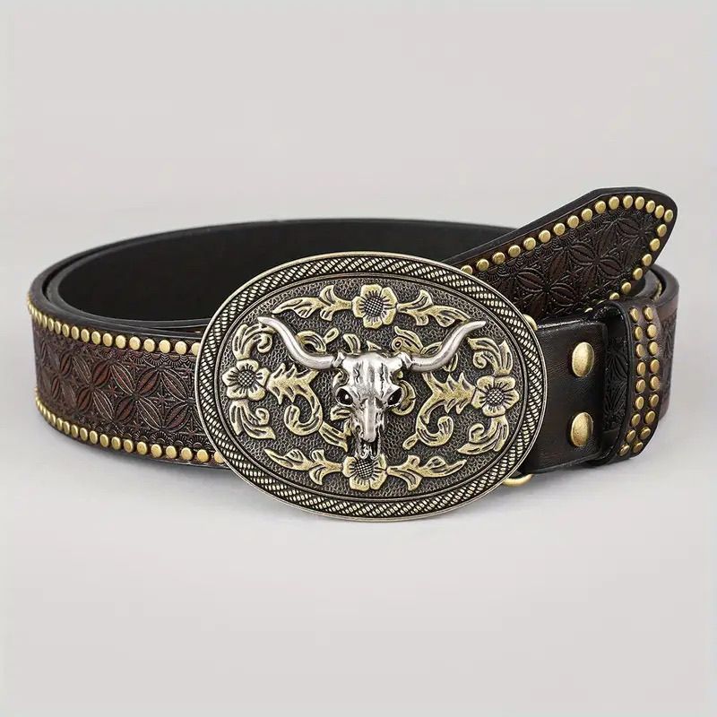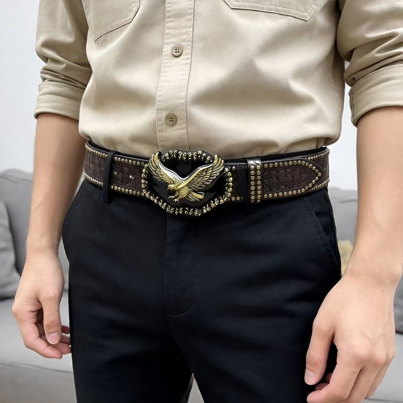 크로스 보더 웨스턴 카우보이 벨트 트렌디 레트로 청소년 펑크 양각 남성 리벳 가죽 벨트 재고 있음 도매스토어 가기