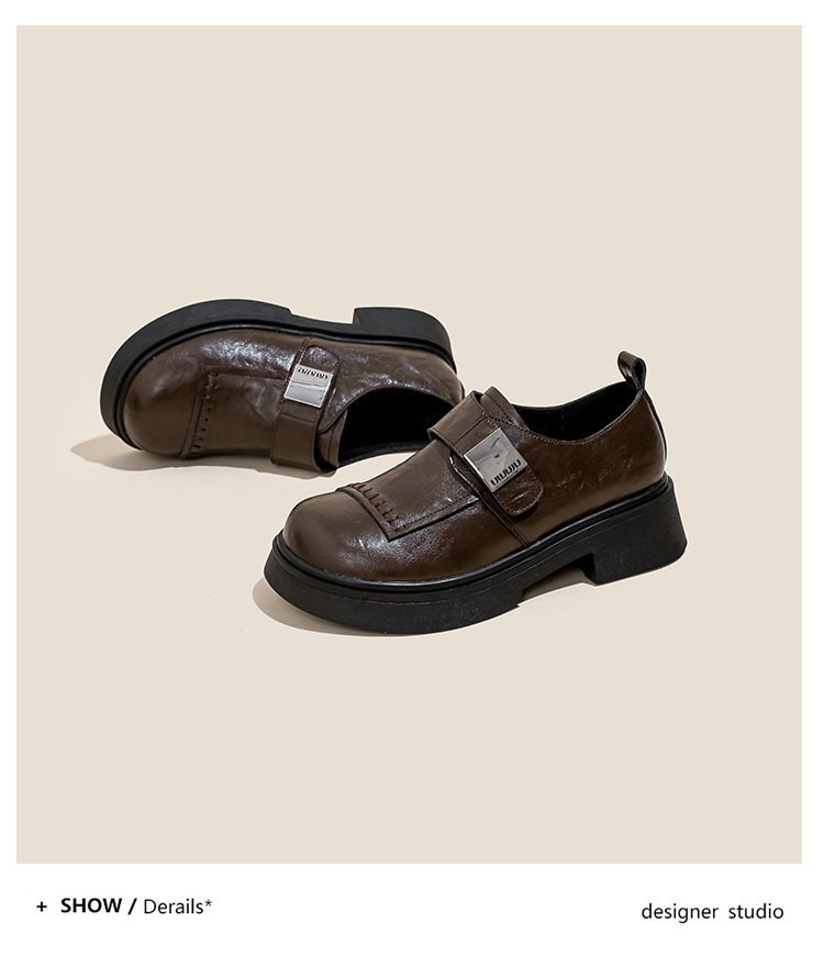 2025 봄 새로운 검은 색 작은 가죽 신발 부드러운 가죽 프랑스 복고풍 대학 스타일 jk 벨크로 여성을위한 두꺼운 밑창 로퍼스토어 가기