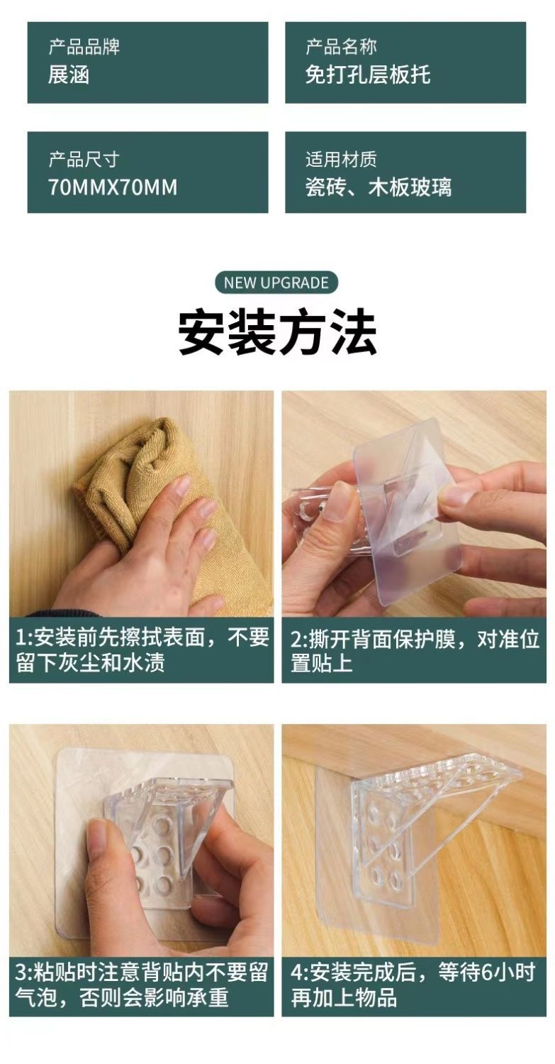 구멍이 없는 옷장 계층화 된 선반 지지대 숨겨진 삼각형 브래킷 주방 욕실 선반 내 하중 직각 선반 스티커