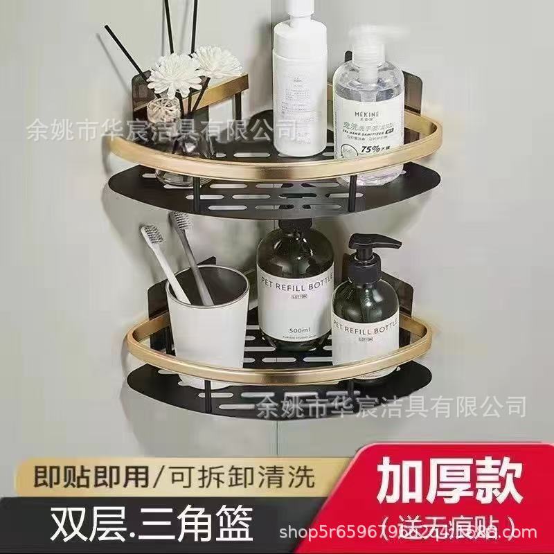 욕실 삼각형 저장 랙 펀치없는 공간 알루미늄 욕실 코너 코너 흡입 직사각형 블랙 스토리지 랙스토어 가기