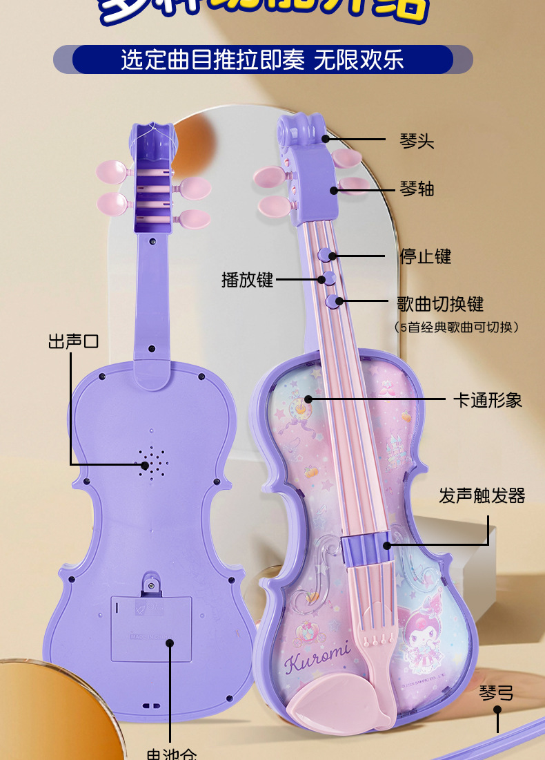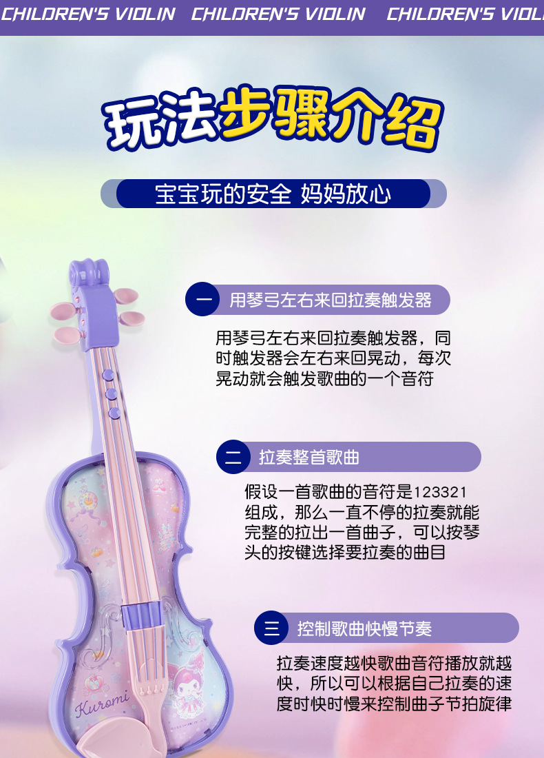 산리오 쿠로미 어린이 바이올린 장난감 공주 악기 아기 초보자는 우쿨렐레를 연주할 수 있습니다스토어 가기