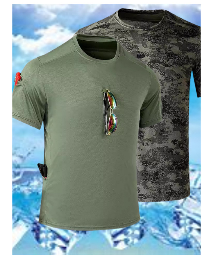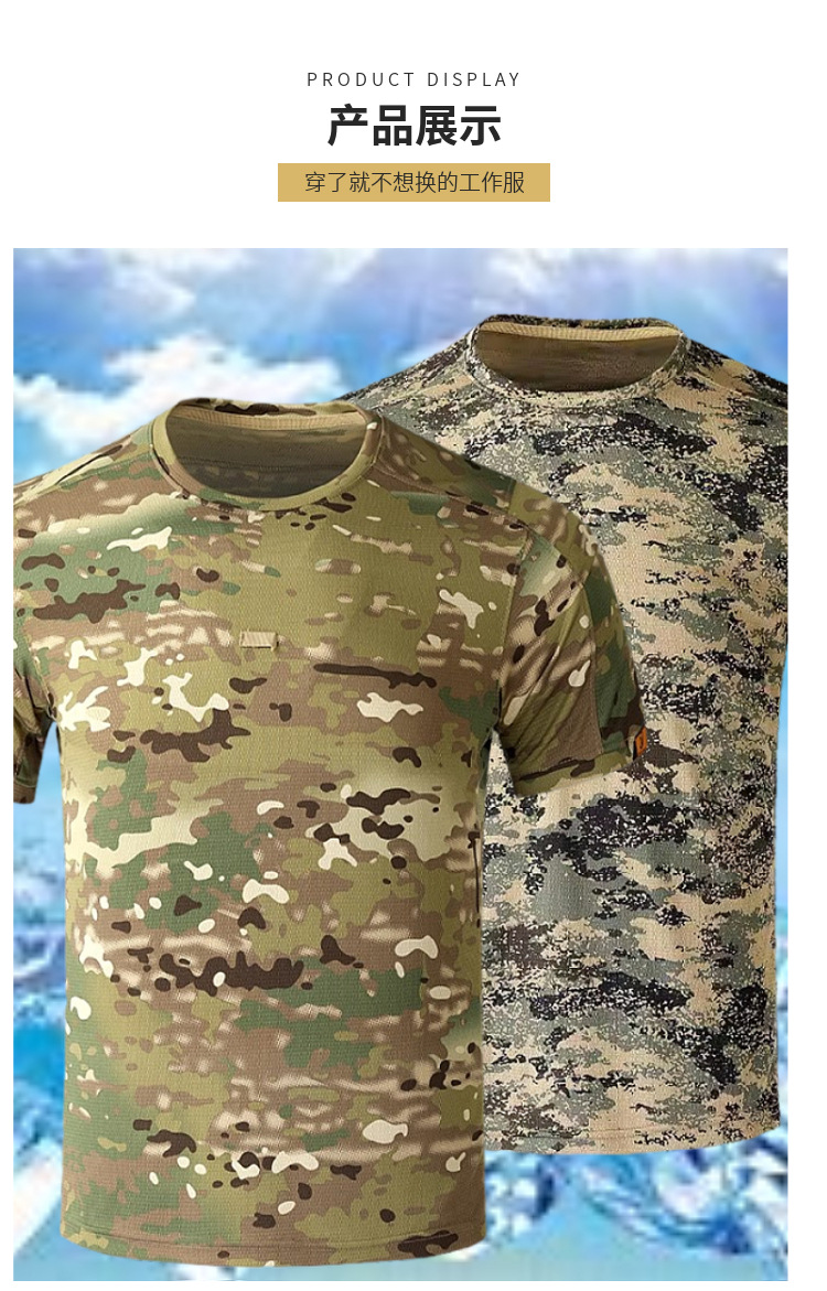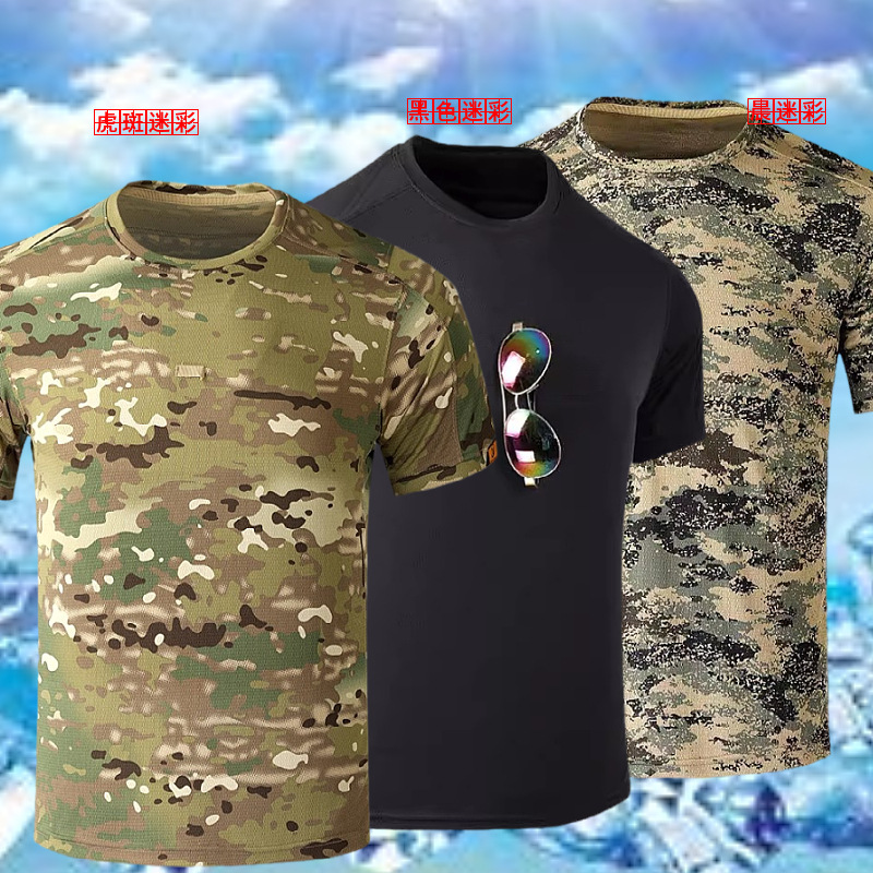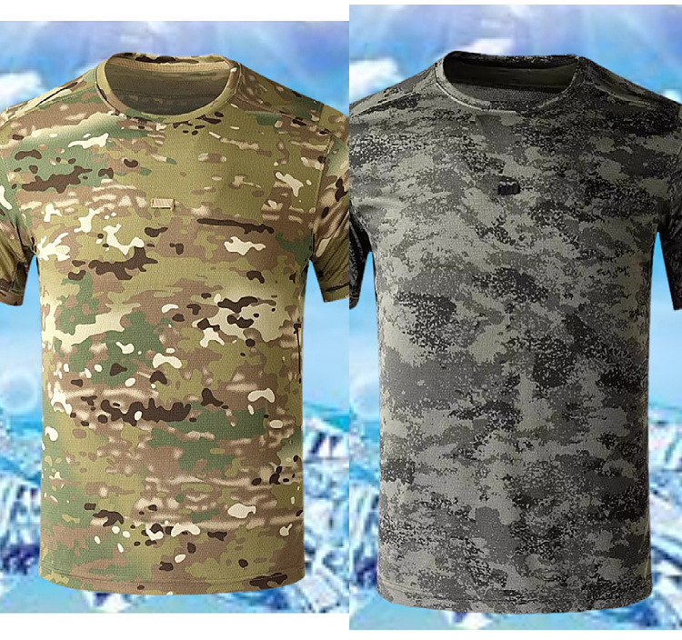 야외 스포츠 등산 및 달리기 학생 군사 훈련 위장 티셔츠 편안하고 통기성이 뛰어난 남성용 위장 반팔 티셔츠 재고 있음스토어 가기