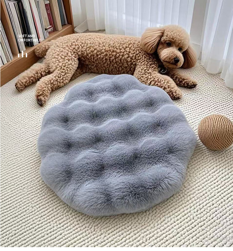 사계절용 애완동물 매트, 고양이 매트, 고양이 개집, 수면 매트, 담요, 원형 헤어프리 버블 벨벳 매트