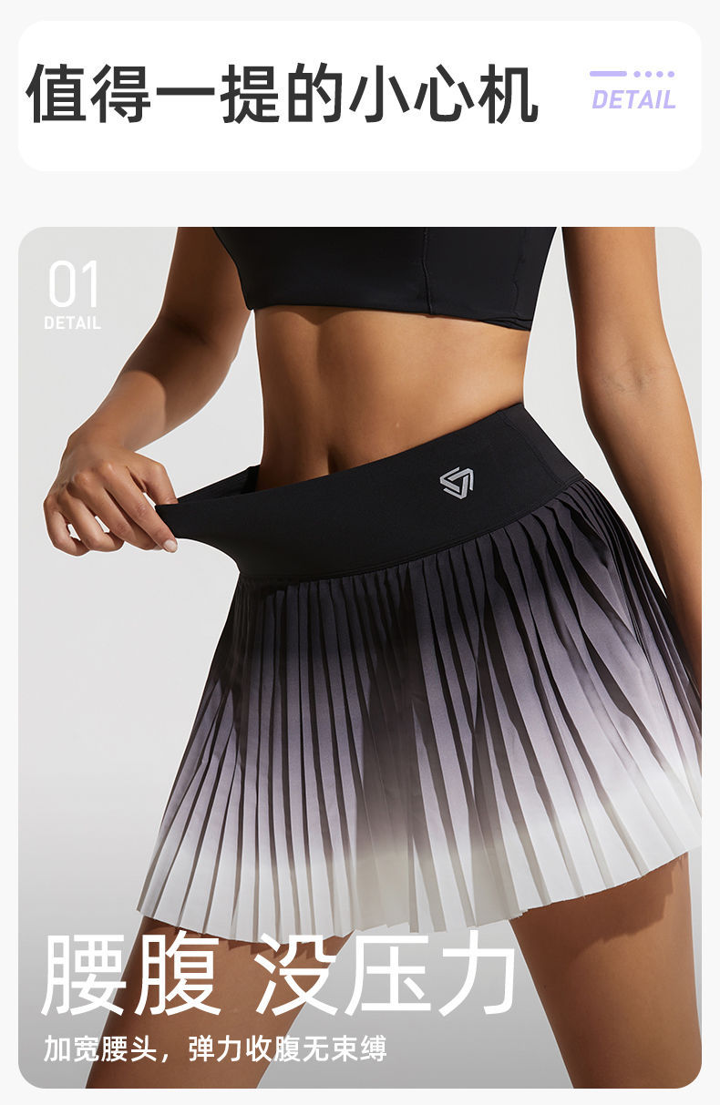 여성용 스포츠 짧은 스커트, 하이 웨이스트, 노출 방지, 주름, 속건성, 런닝, 자외선 차단, 테니스, 배드민턴, 피트니스 A라인 스커트