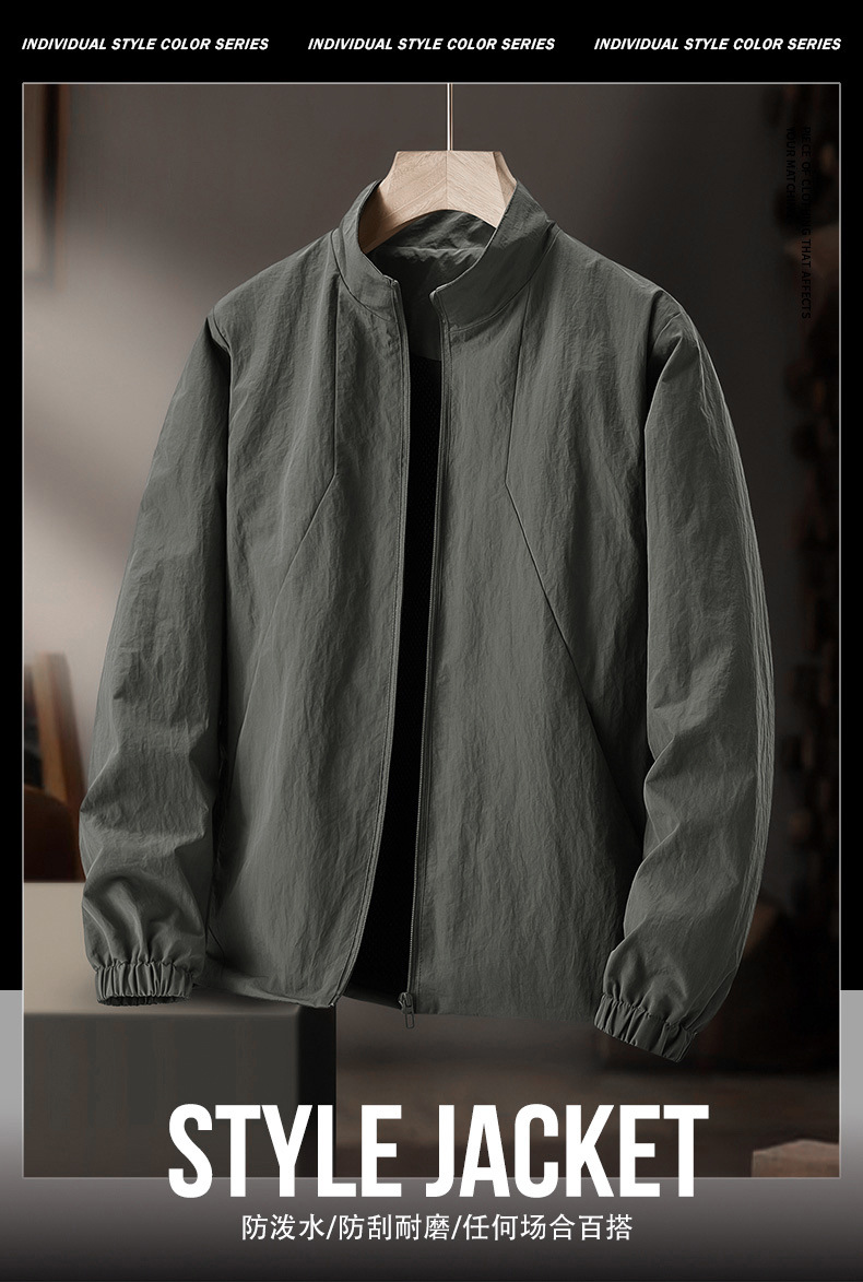 [Nylon Fabric] 봄과 가을 새로운 스타일의 워크 재킷 남성용 스트레치 방수 야외 재킷 스탠드 칼라 재킷