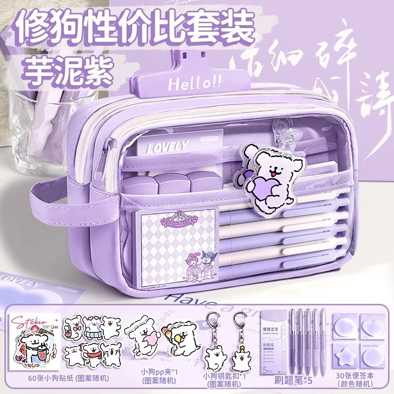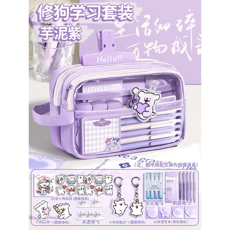 • [개 수리 학습 세트] 타로 퍼플 + 강아지 스티커 60개 + 아이스 클립 5개 + 강아지 펜던트 + 강아지 PP 클립 + 질문 브러쉬 펜 5개 + 노트 패드 30개 + 형광펜