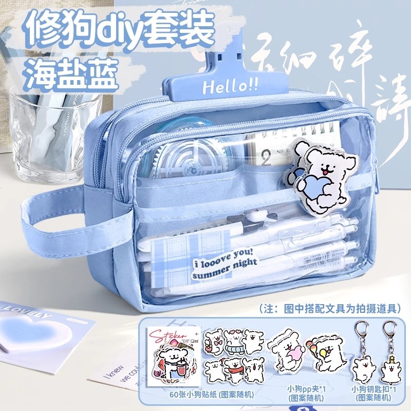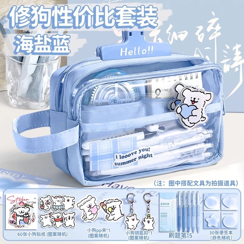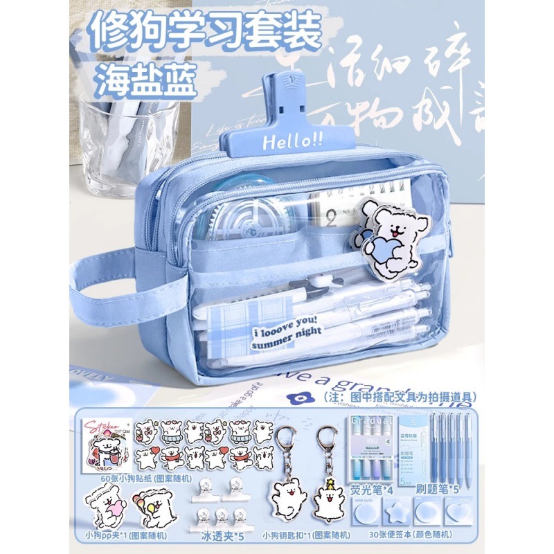 • [개 수리 학습 세트] 씨 솔트 블루 + 강아지 스티커 60개 + 아이스 클립 5개 + 강아지 펜던트 + 강아지 PP 클립 + 질문 브러쉬 펜 5개 + 노트 패드 30개 + 형광펜
