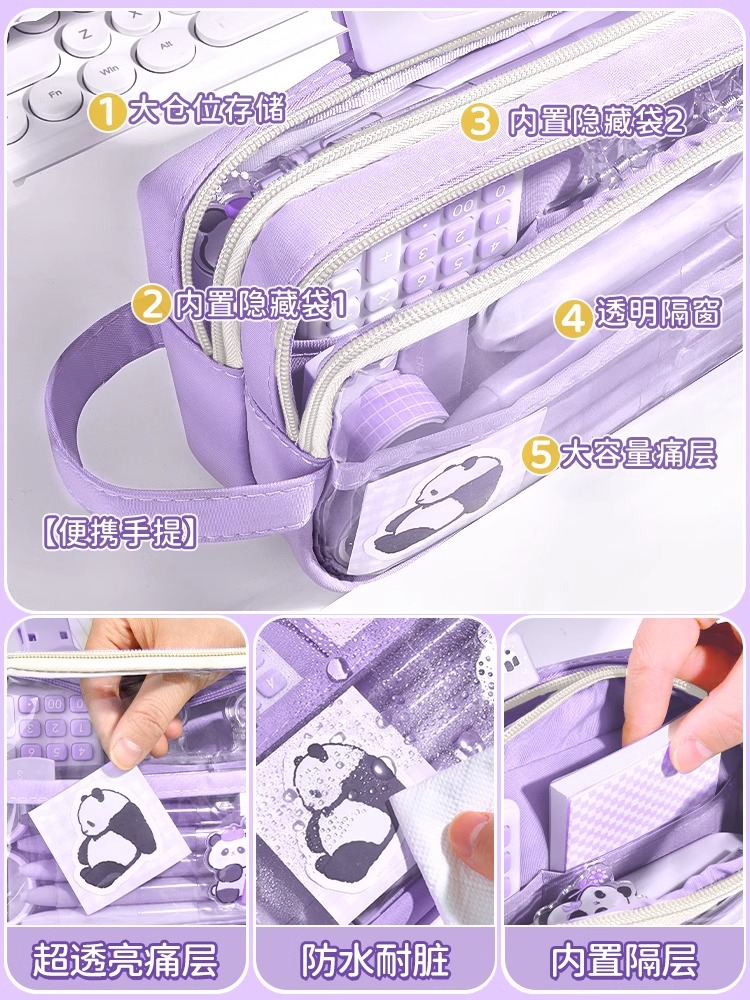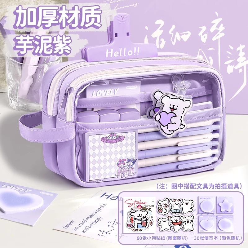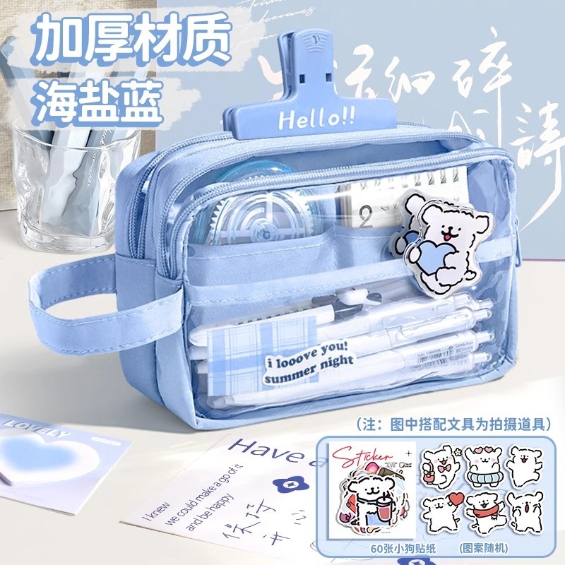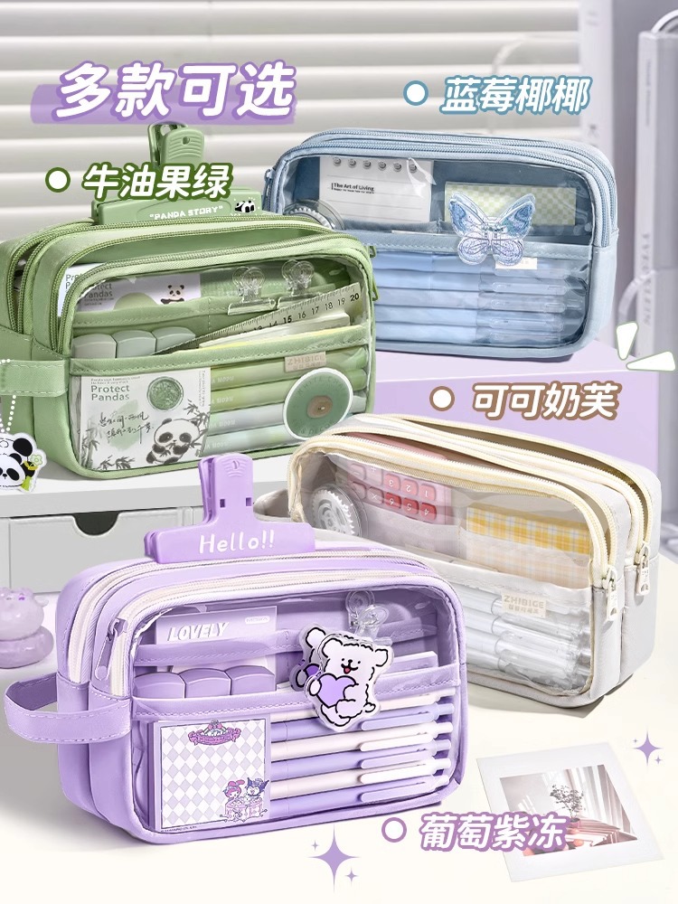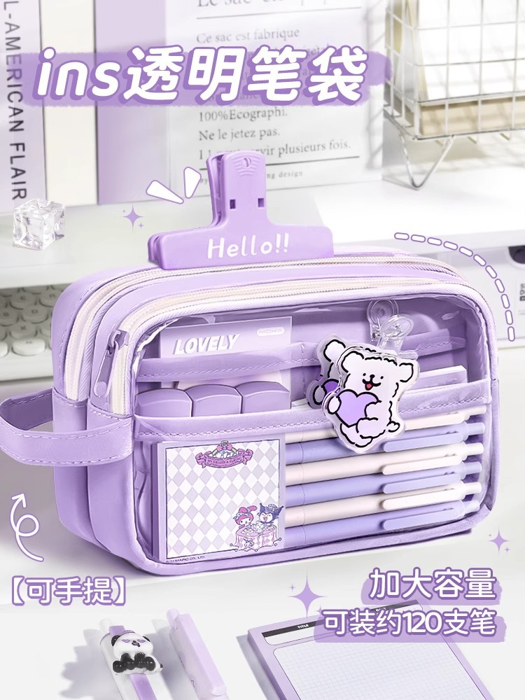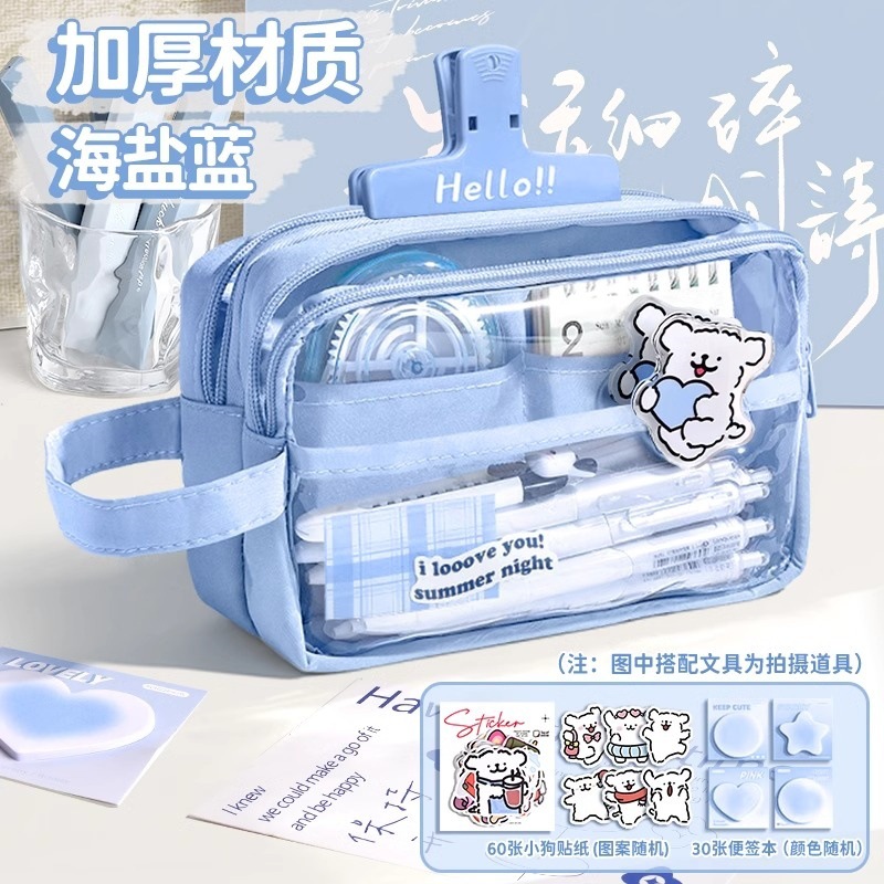 새로운 스타일의 소녀의 고급스러운 투명 문구 가방, 대용량 필통, 문구 상자, 간단한 ins 스타일 문구 필통스토어 가기