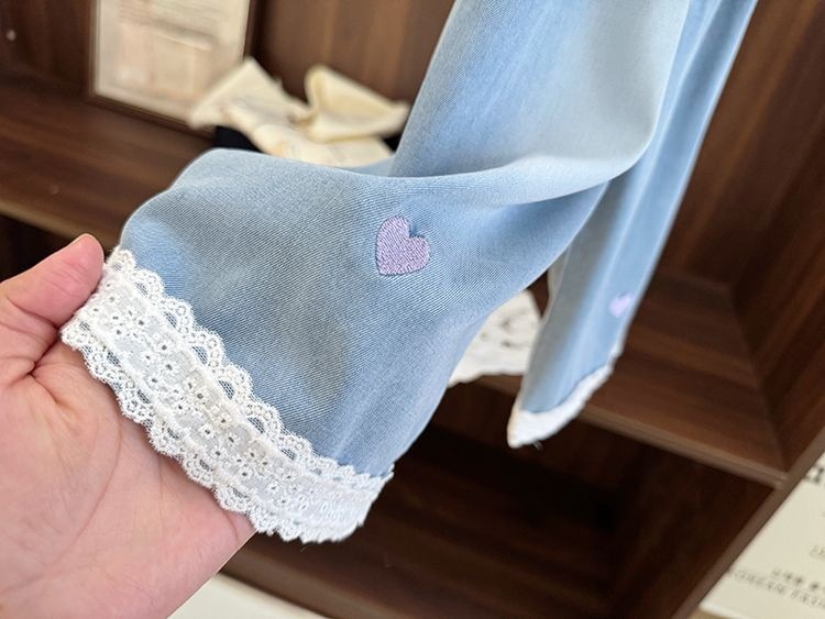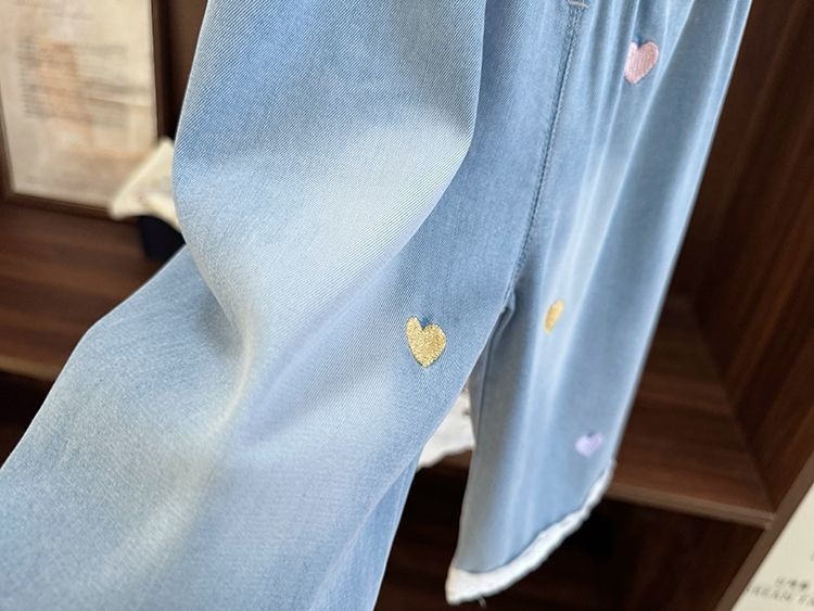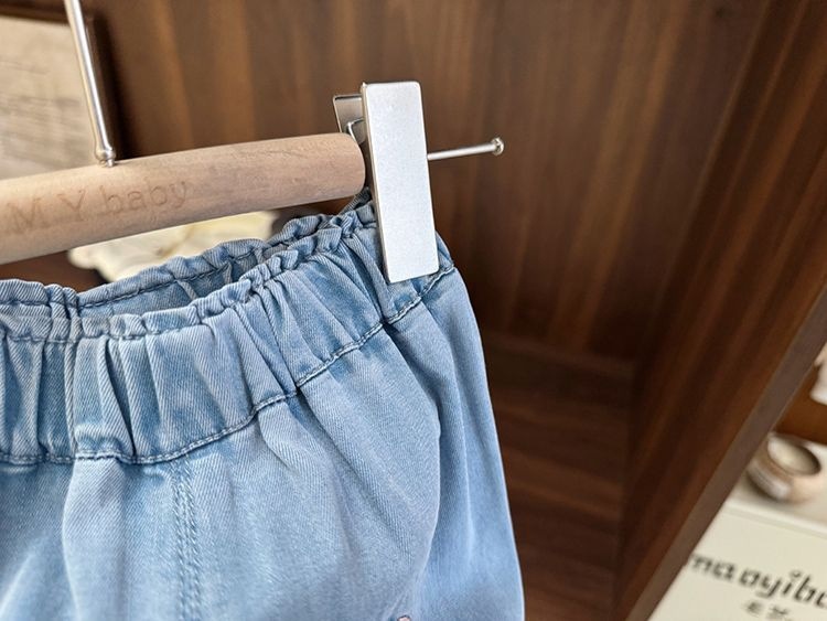 여아용 시원하고 얇은 소프트 데님 팬츠, 여아 여름 2026년 신상품, 여아용 드레이프 스트레이트 모기 방지 팬츠스토어 가기