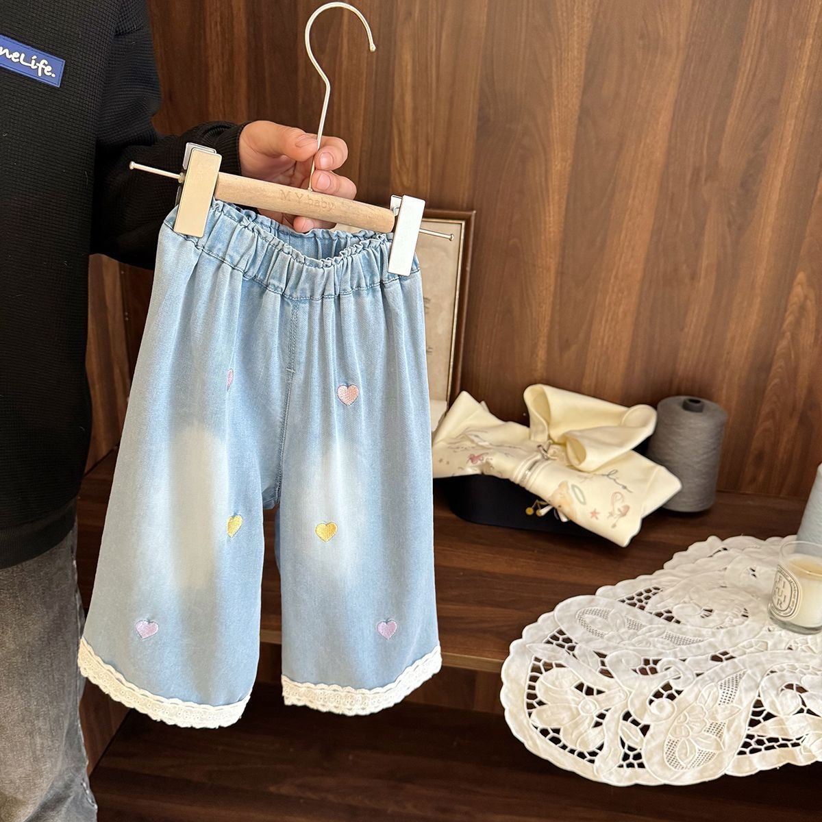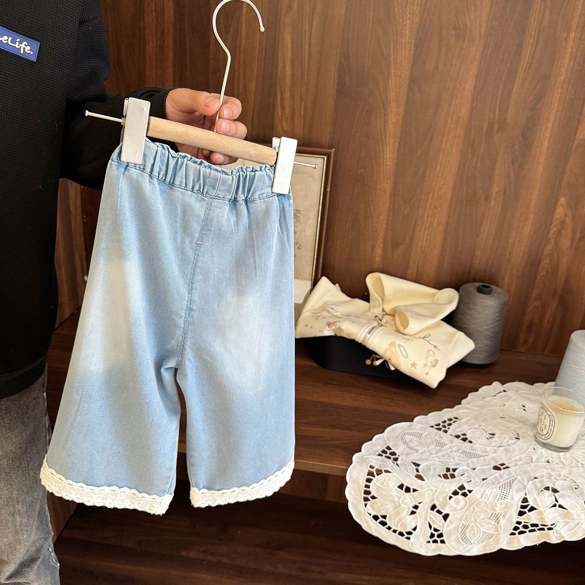 여아용 시원하고 얇은 소프트 데님 팬츠, 여아 여름 2026년 신상품, 여아용 드레이프 스트레이트 모기 방지 팬츠