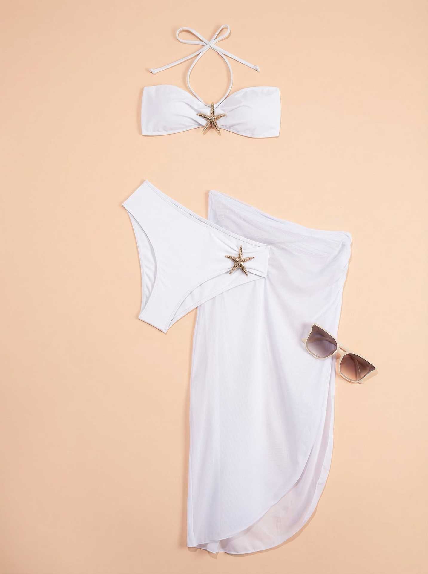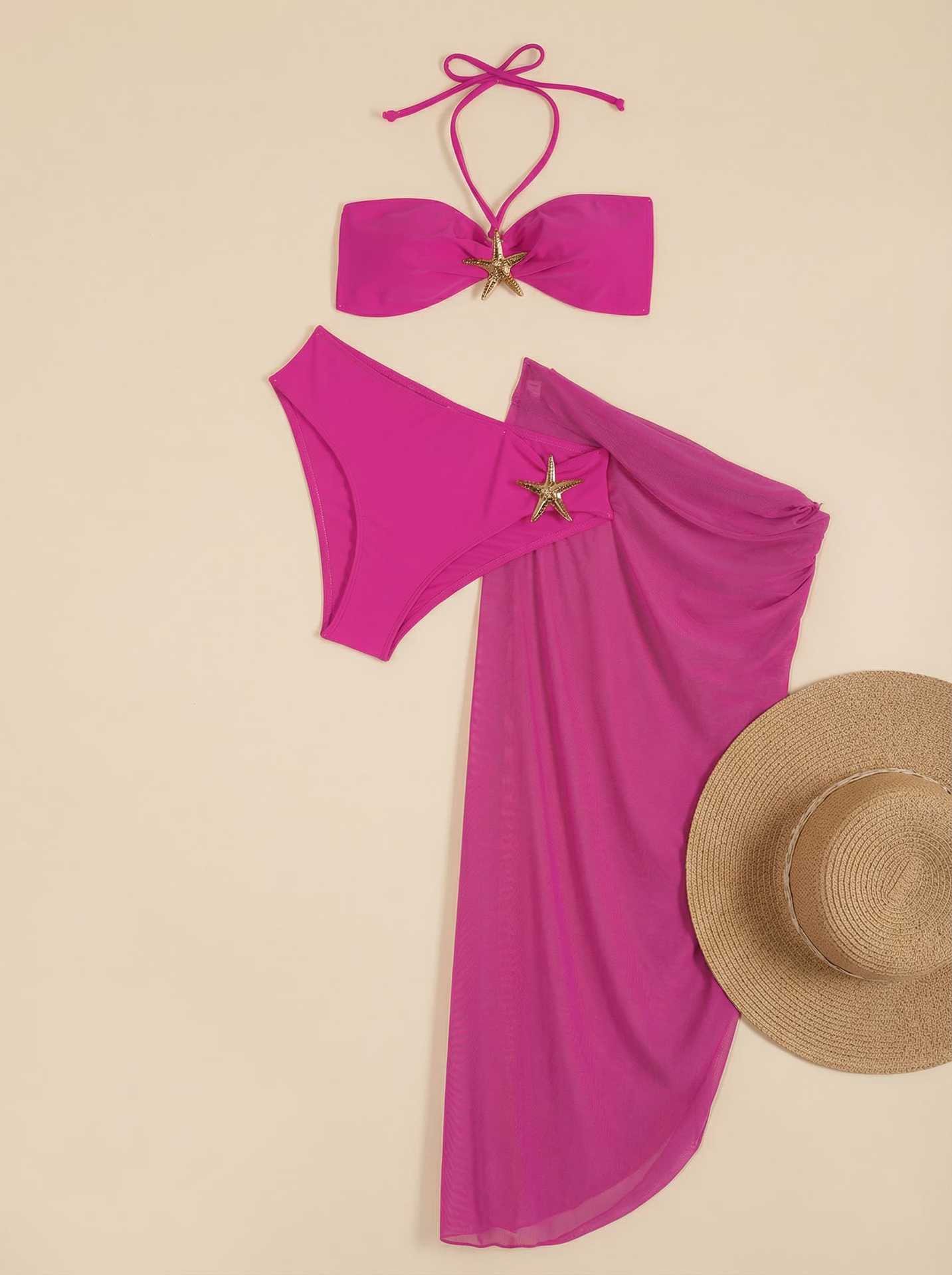 2025 유럽과 미국의 국경 간 비키니 3 피스 섹시 넥 비키니 스플릿 여성 수영복 비치 스커트 수영복스토어 가기