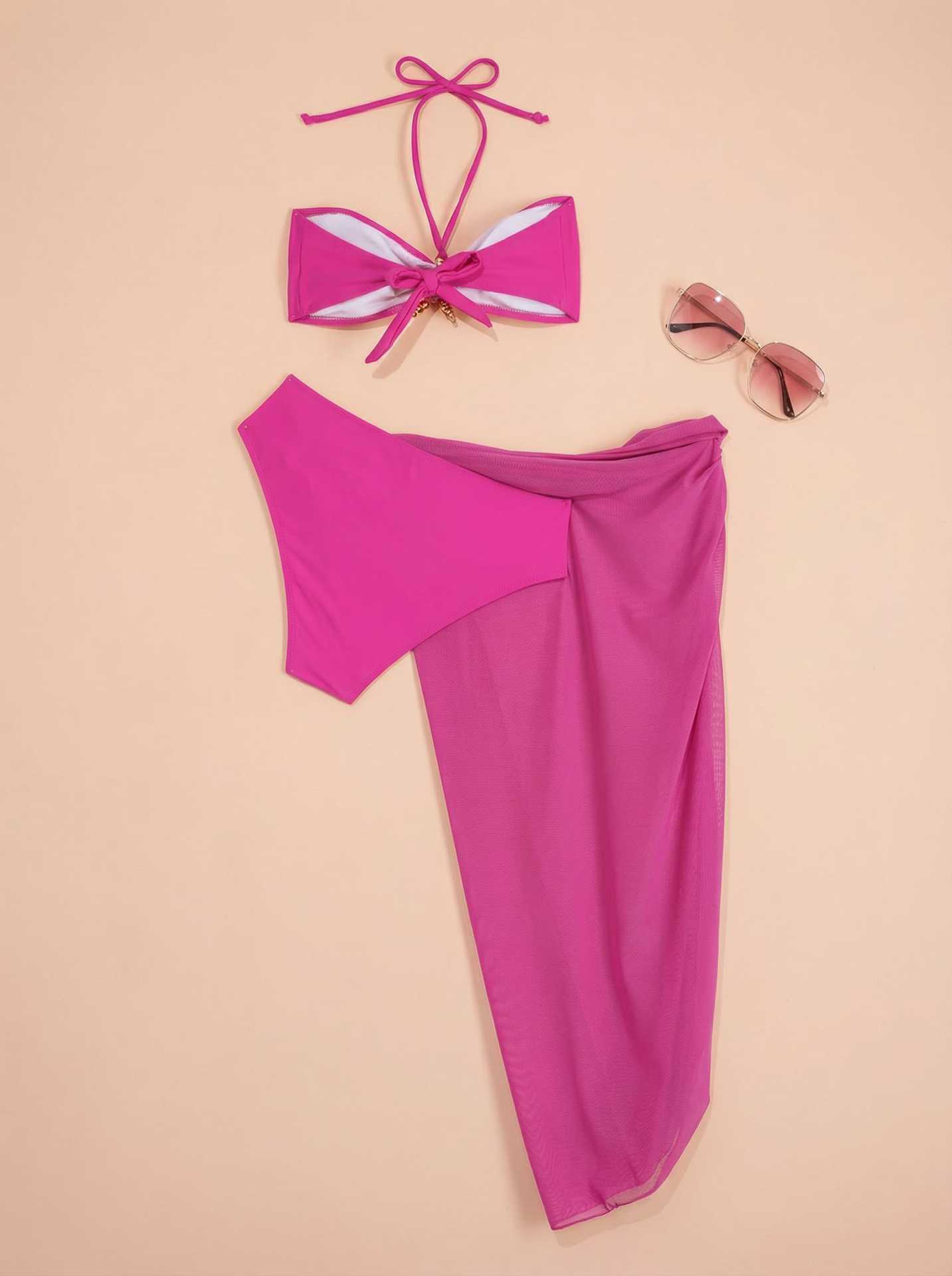 2025 유럽과 미국의 국경 간 비키니 3 피스 섹시 넥 비키니 스플릿 여성 수영복 비치 스커트 수영복