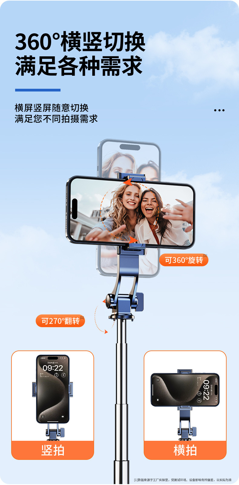 3-in-1 휴대용 셀카봉 블루투스 셀카봉 360도 회전 휴대폰 사진봉 삼각대 라이브 방송 스탠드스토어 가기