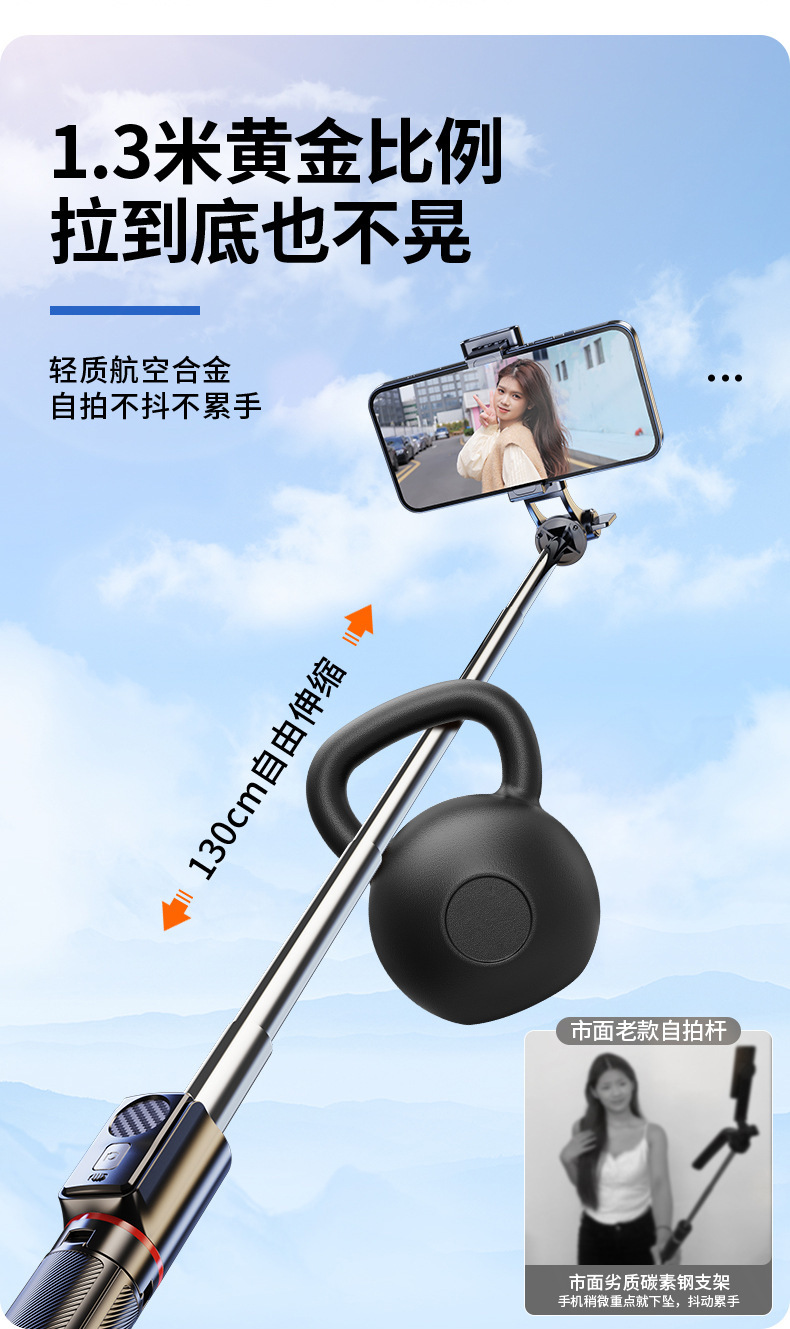 3-in-1 휴대용 셀카봉 블루투스 셀카봉 360도 회전 휴대폰 사진봉 삼각대 라이브 방송 스탠드