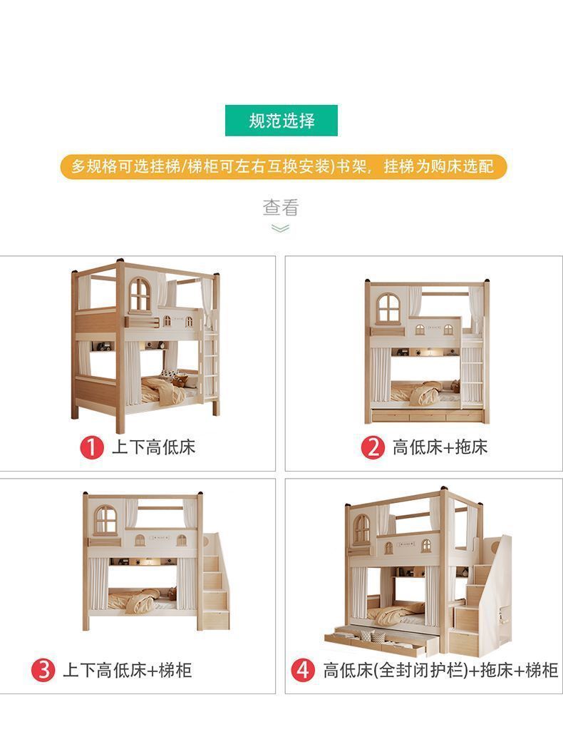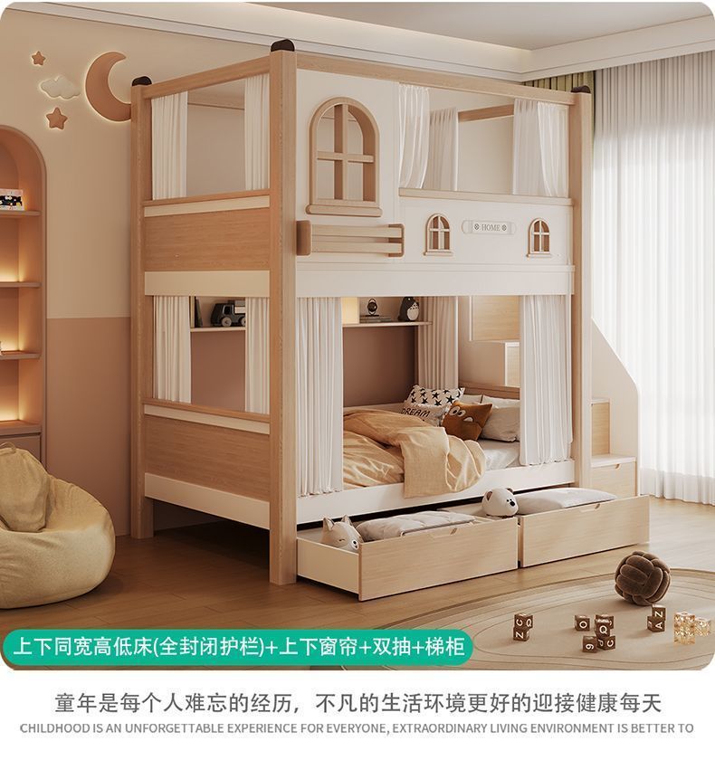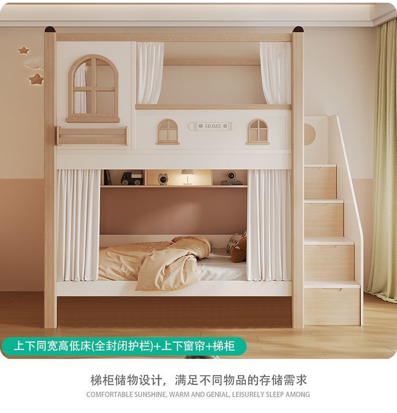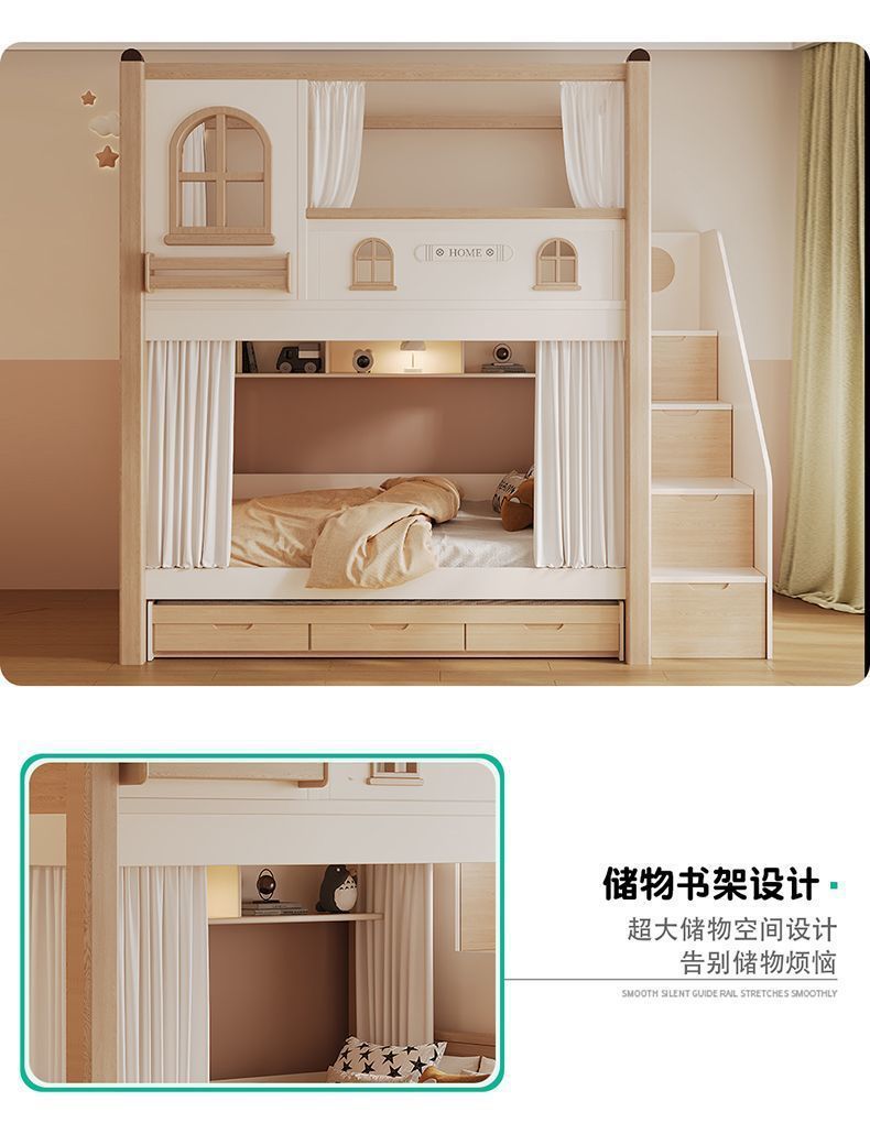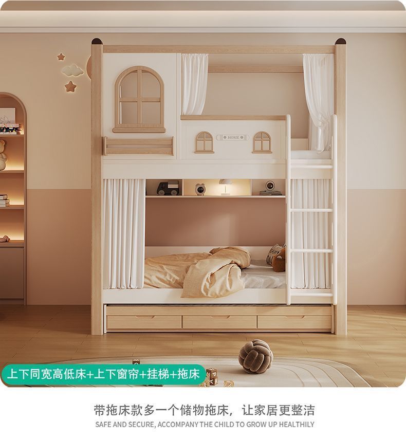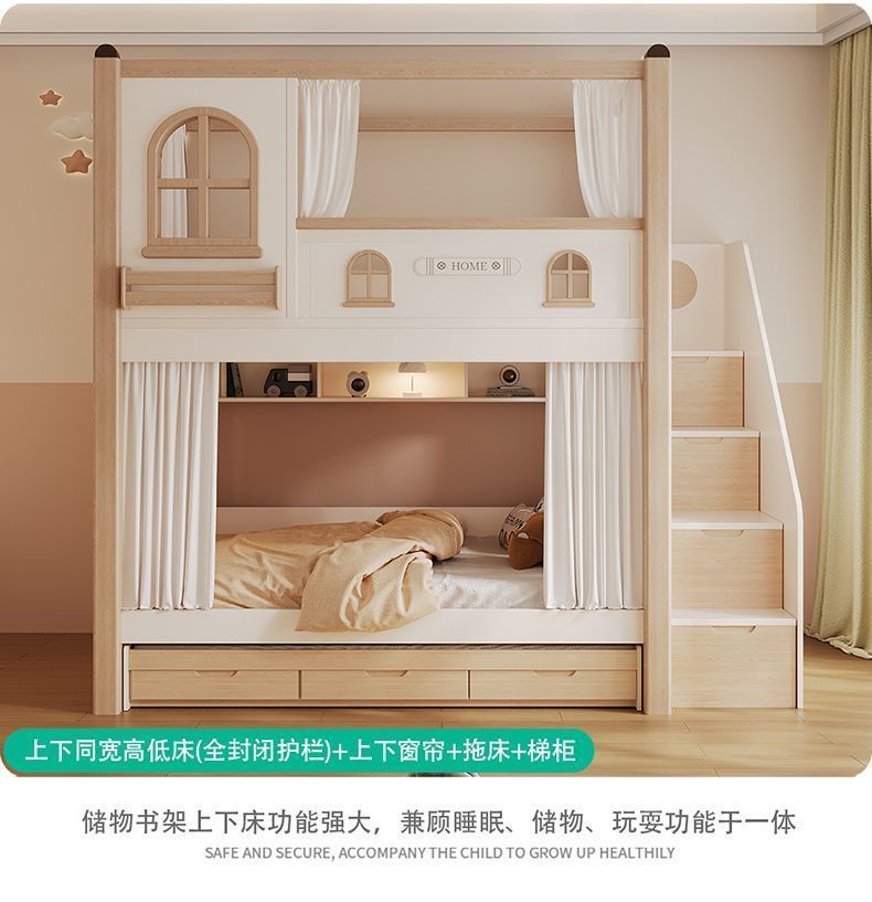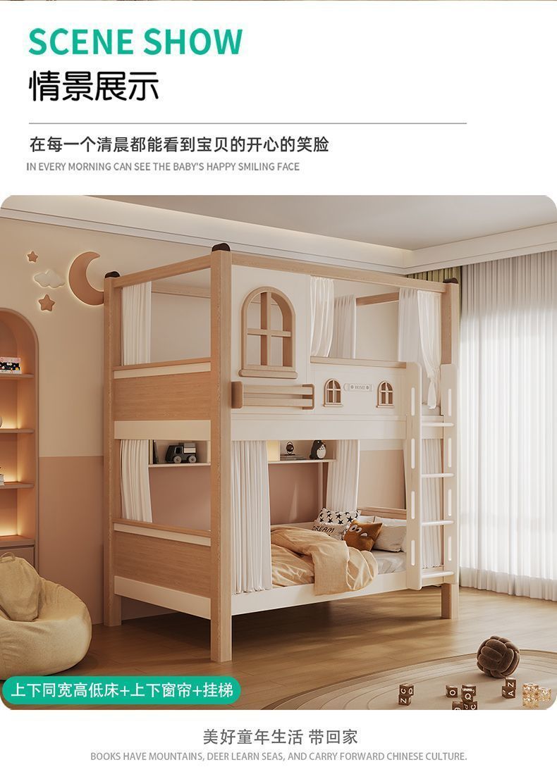 크림풍 이층침대, 높은 가드레일, 어린이용 높낮이 침대, 이층침대, 서로 방해받지 않는 이층침대