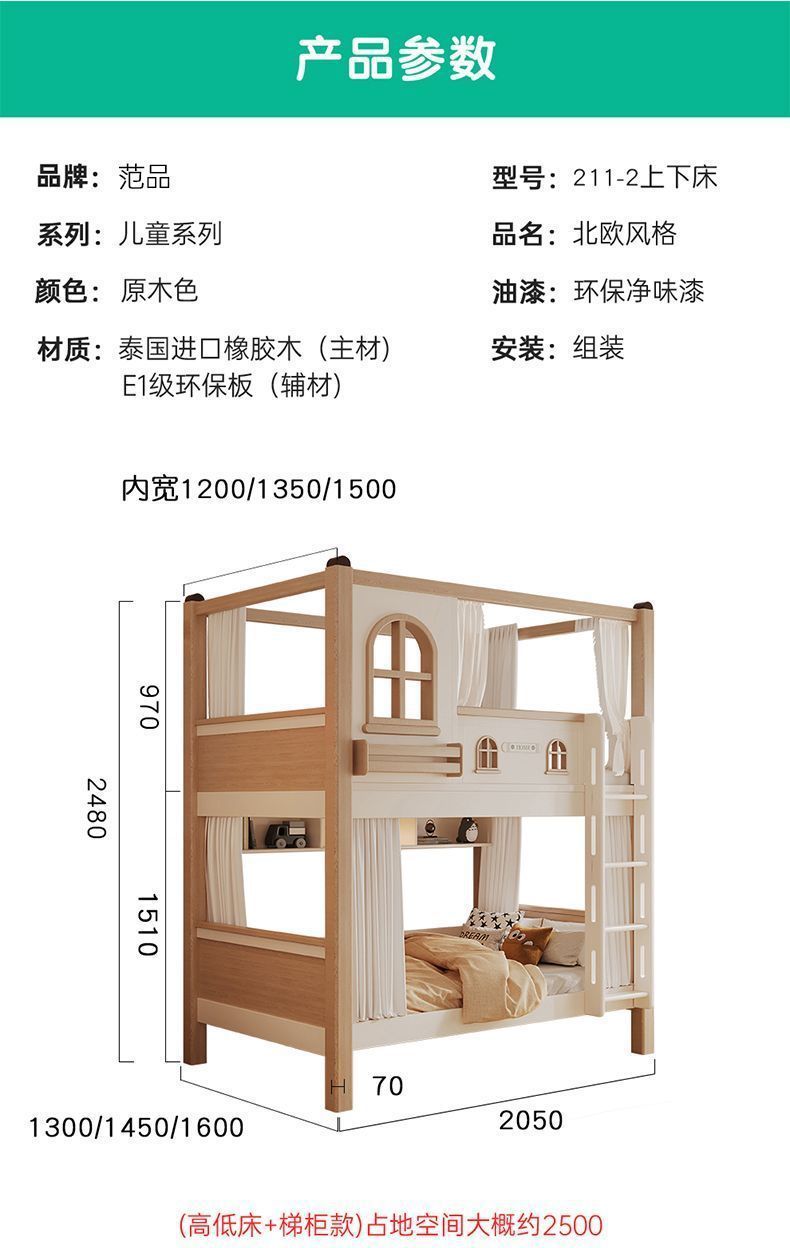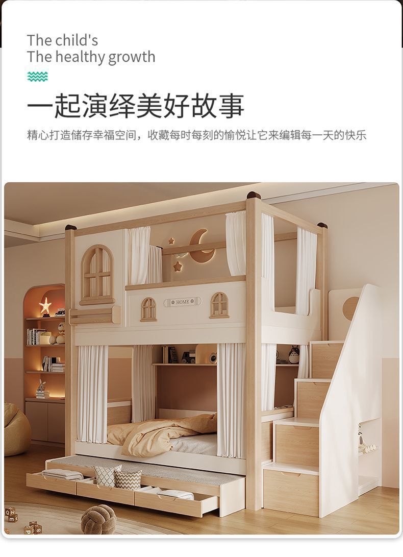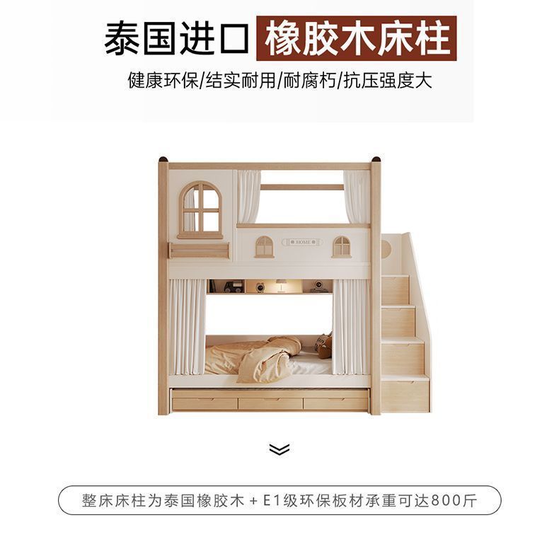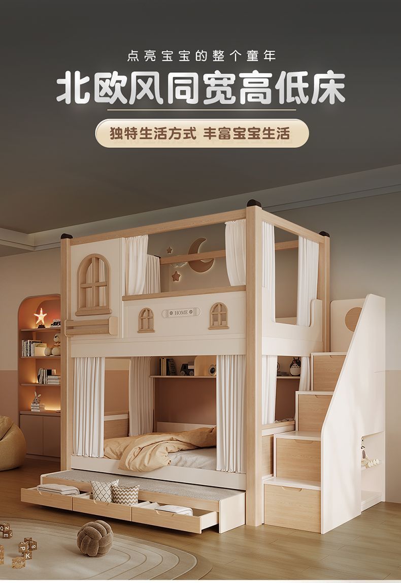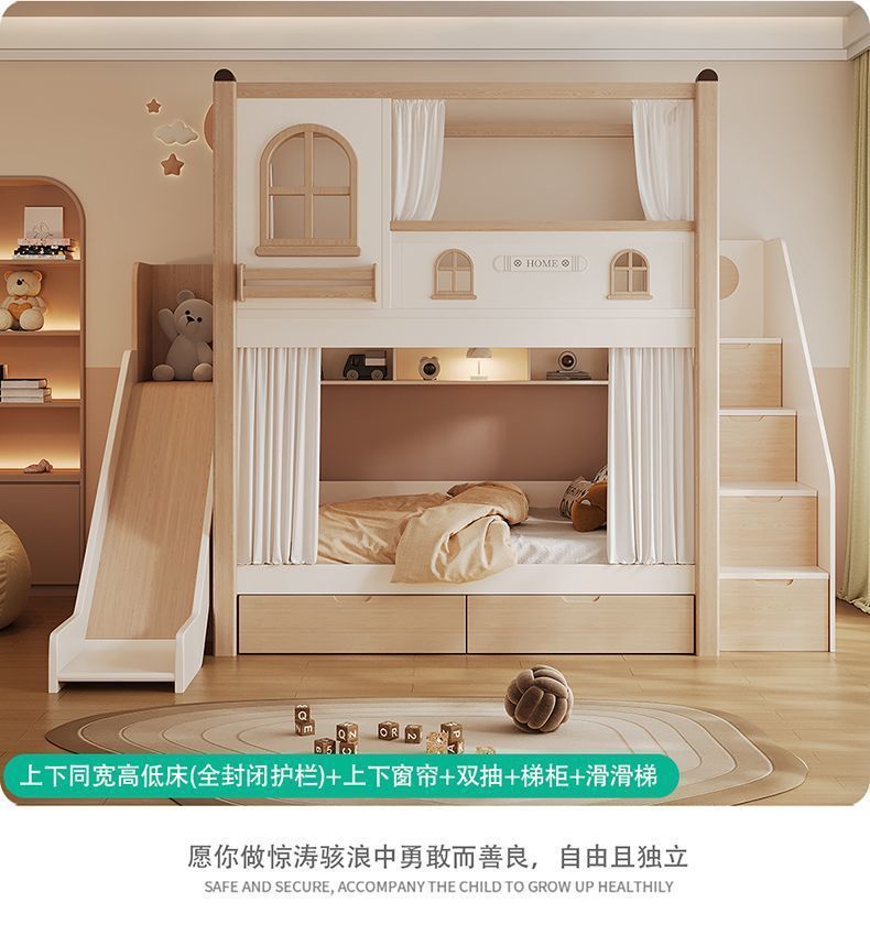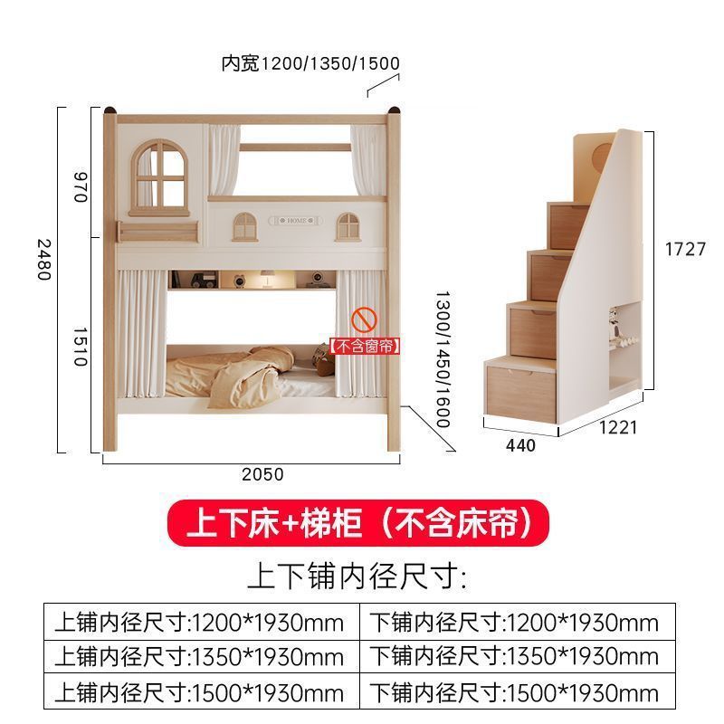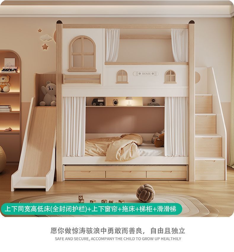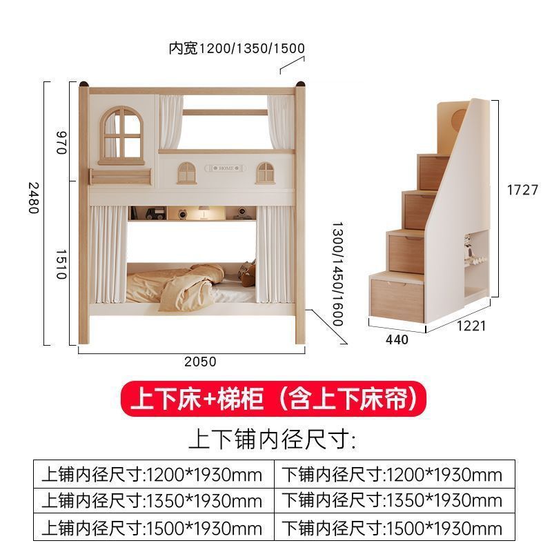 크림풍 이층침대, 높은 가드레일, 어린이용 높낮이 침대, 이층침대, 서로 방해받지 않는 이층침대