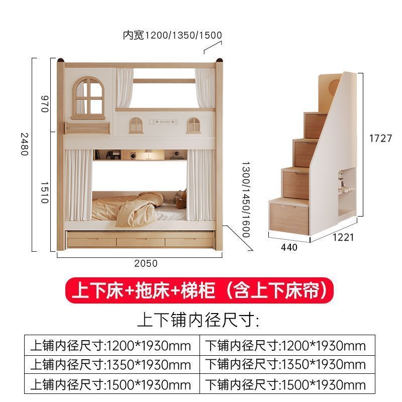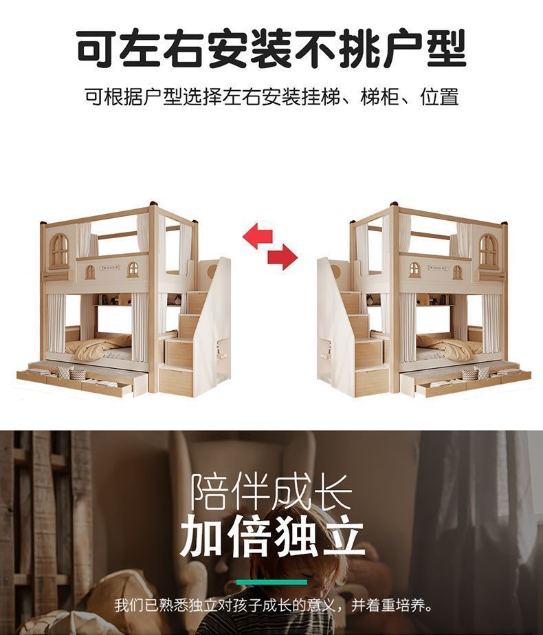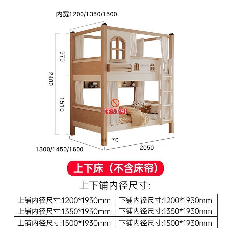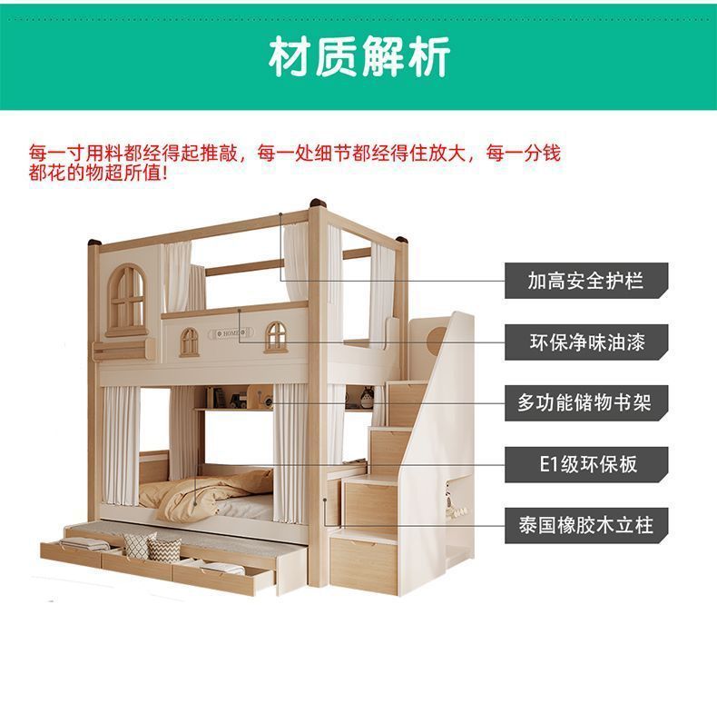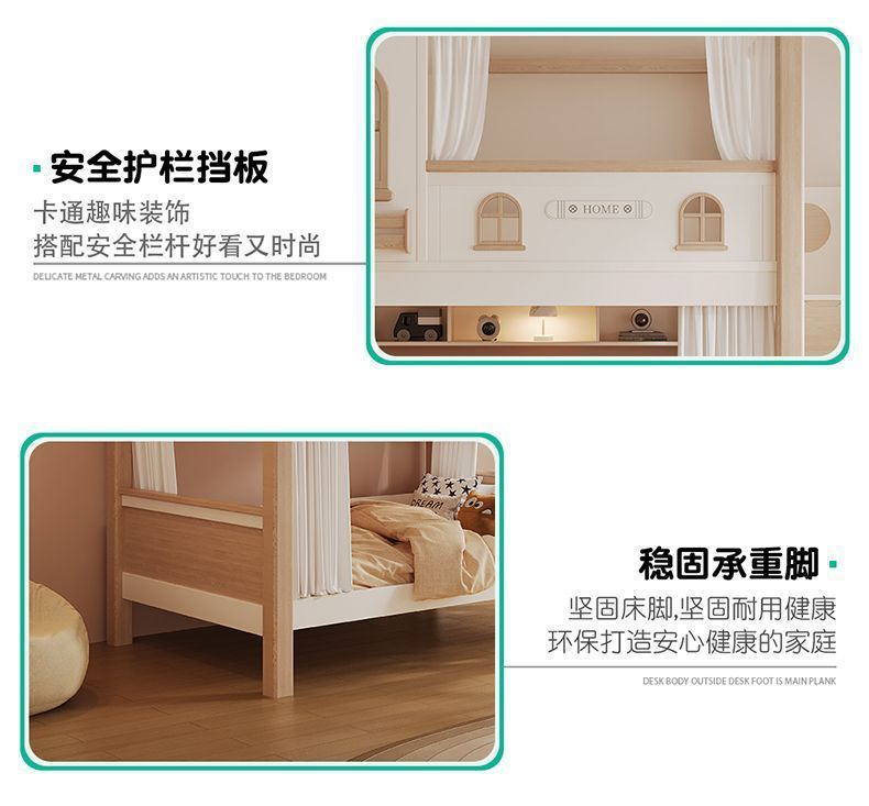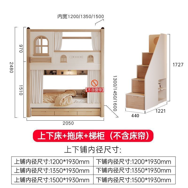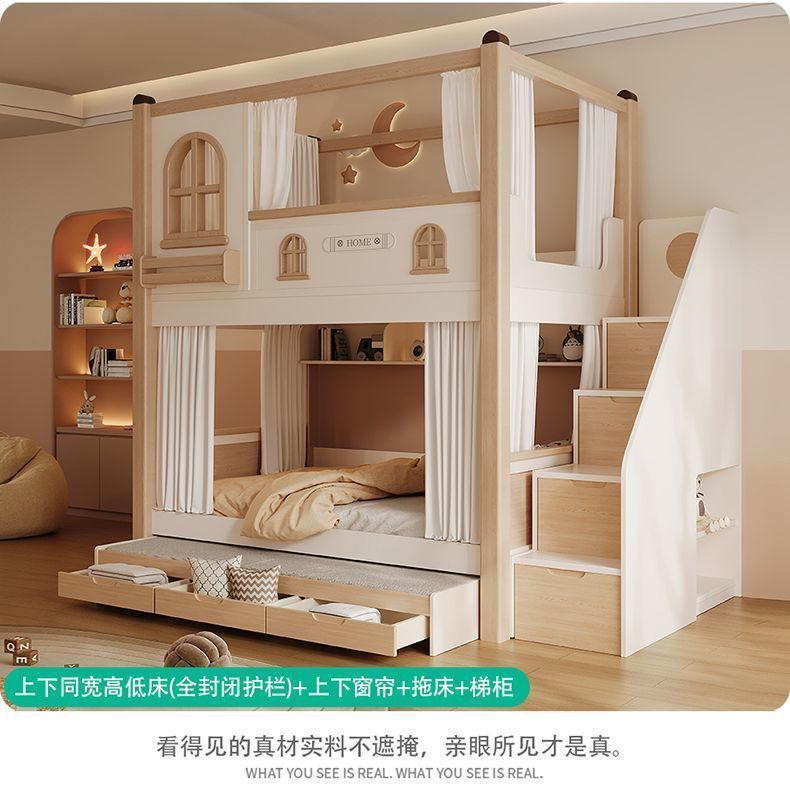 크림풍 이층침대, 높은 가드레일, 어린이용 높낮이 침대, 이층침대, 서로 방해받지 않는 이층침대