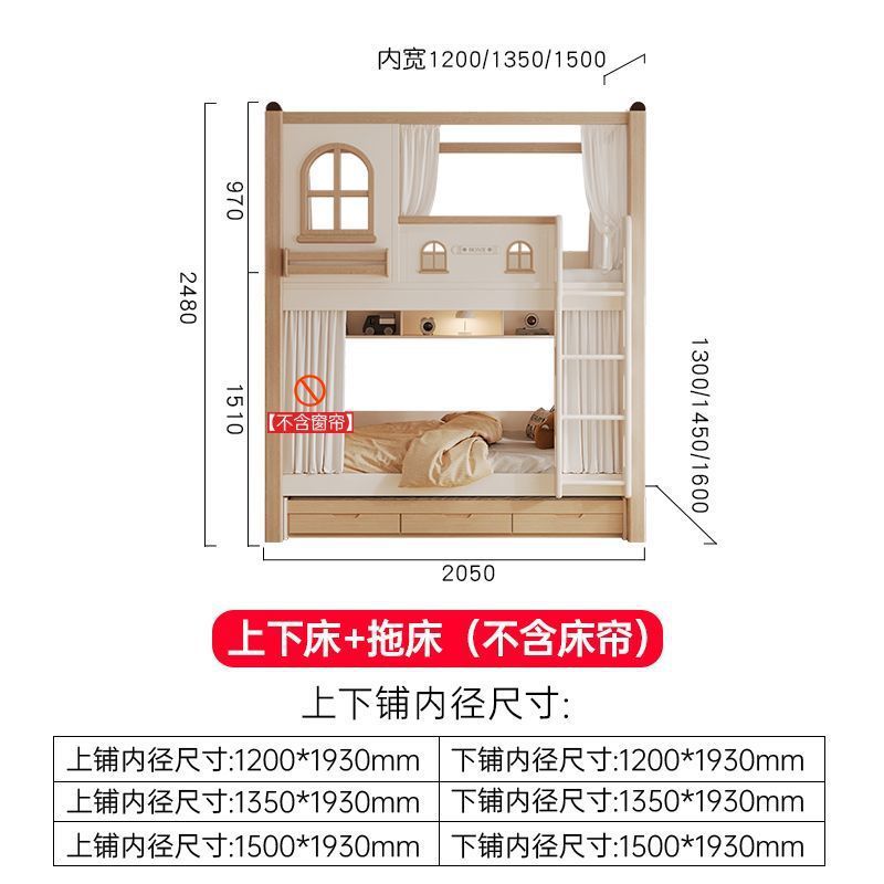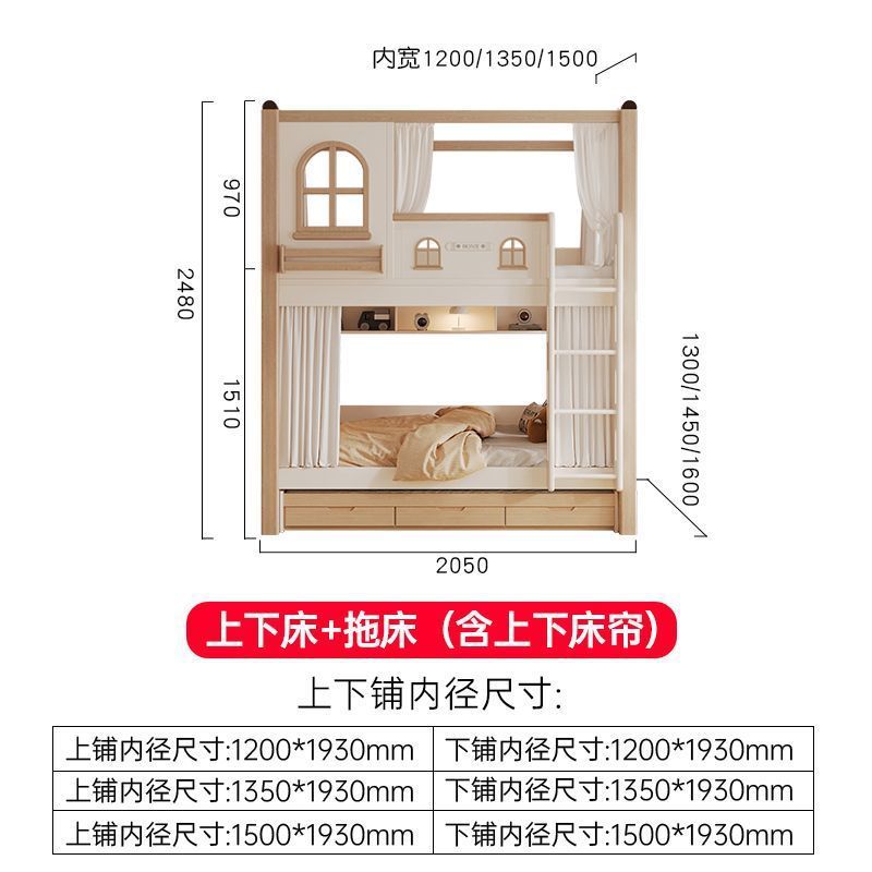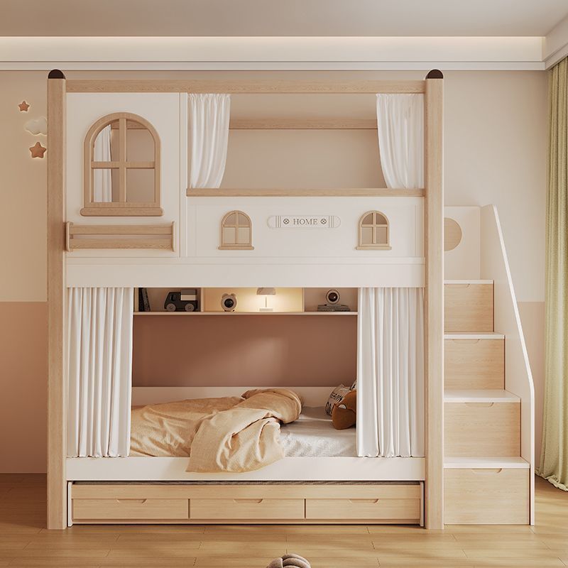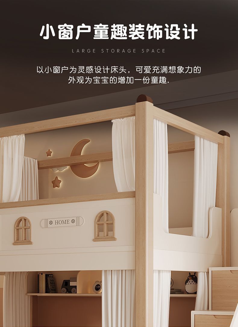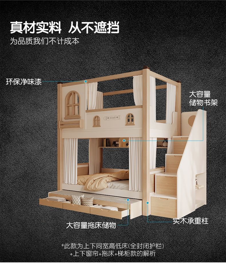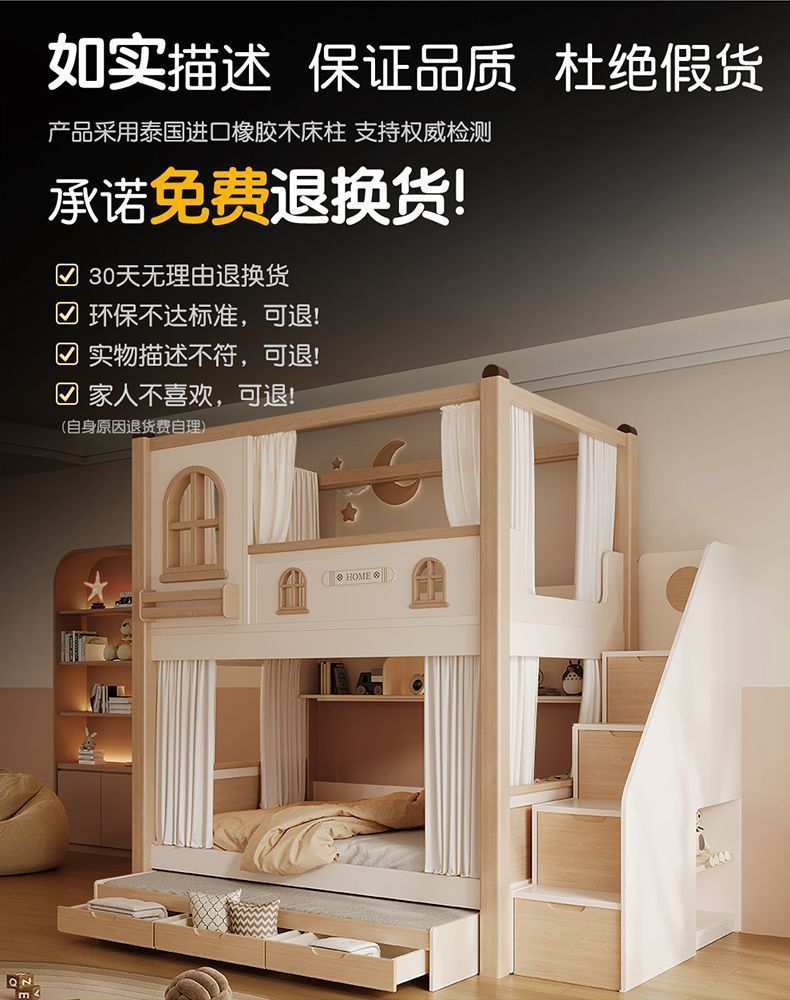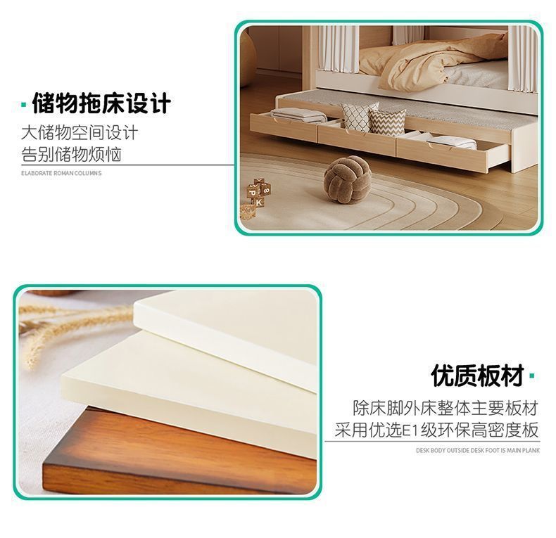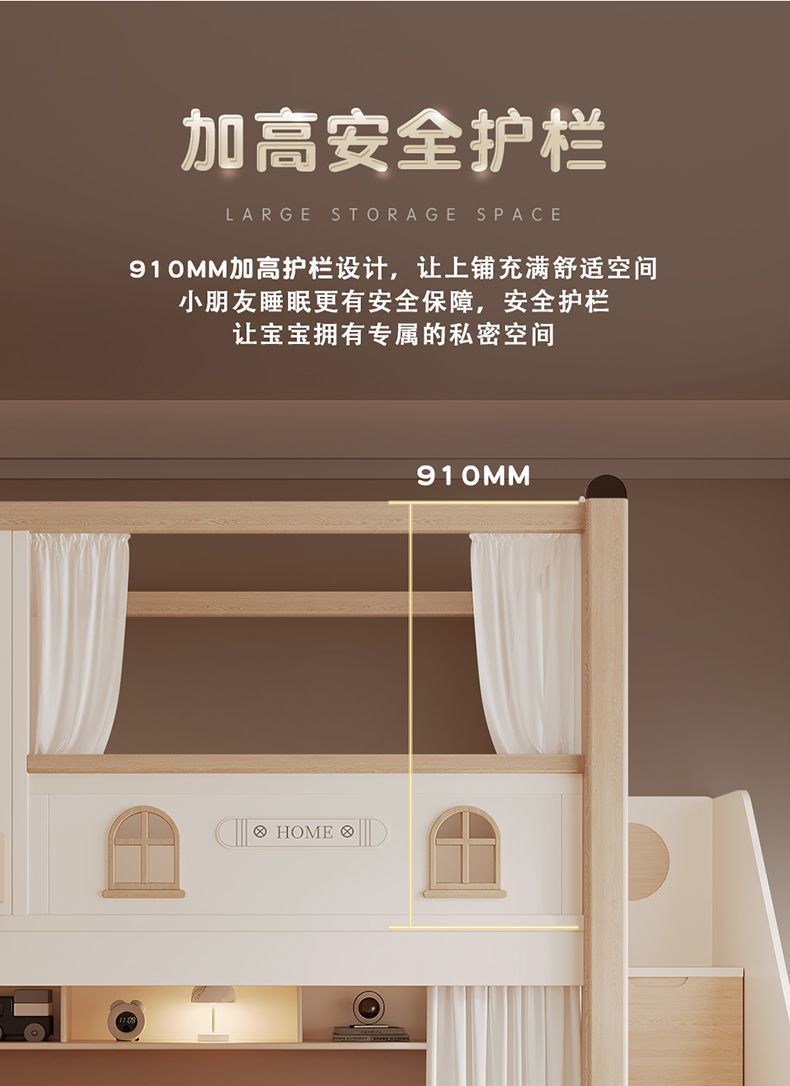 크림풍 이층침대, 높은 가드레일, 어린이용 높낮이 침대, 이층침대, 서로 방해받지 않는 이층침대