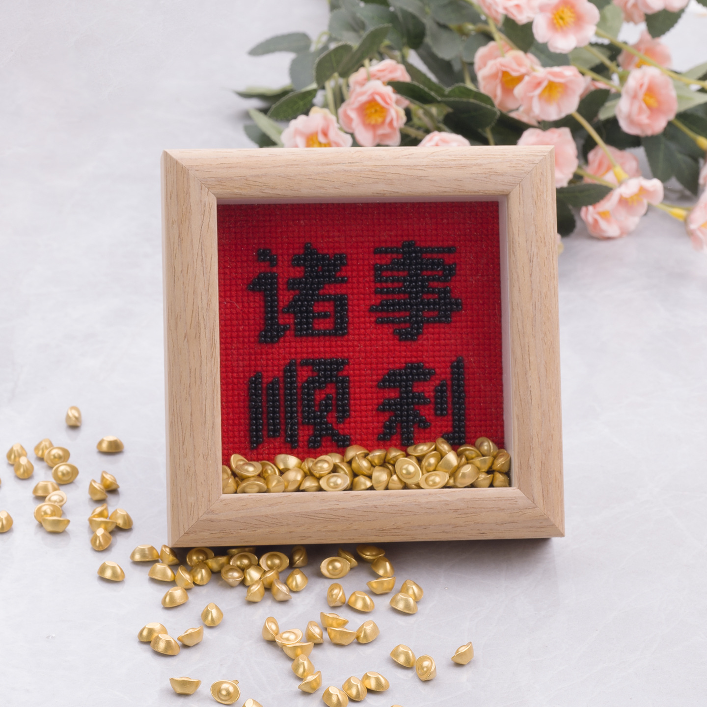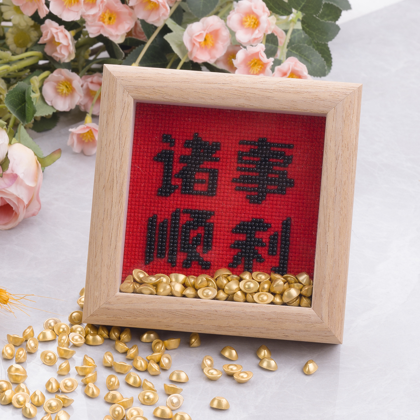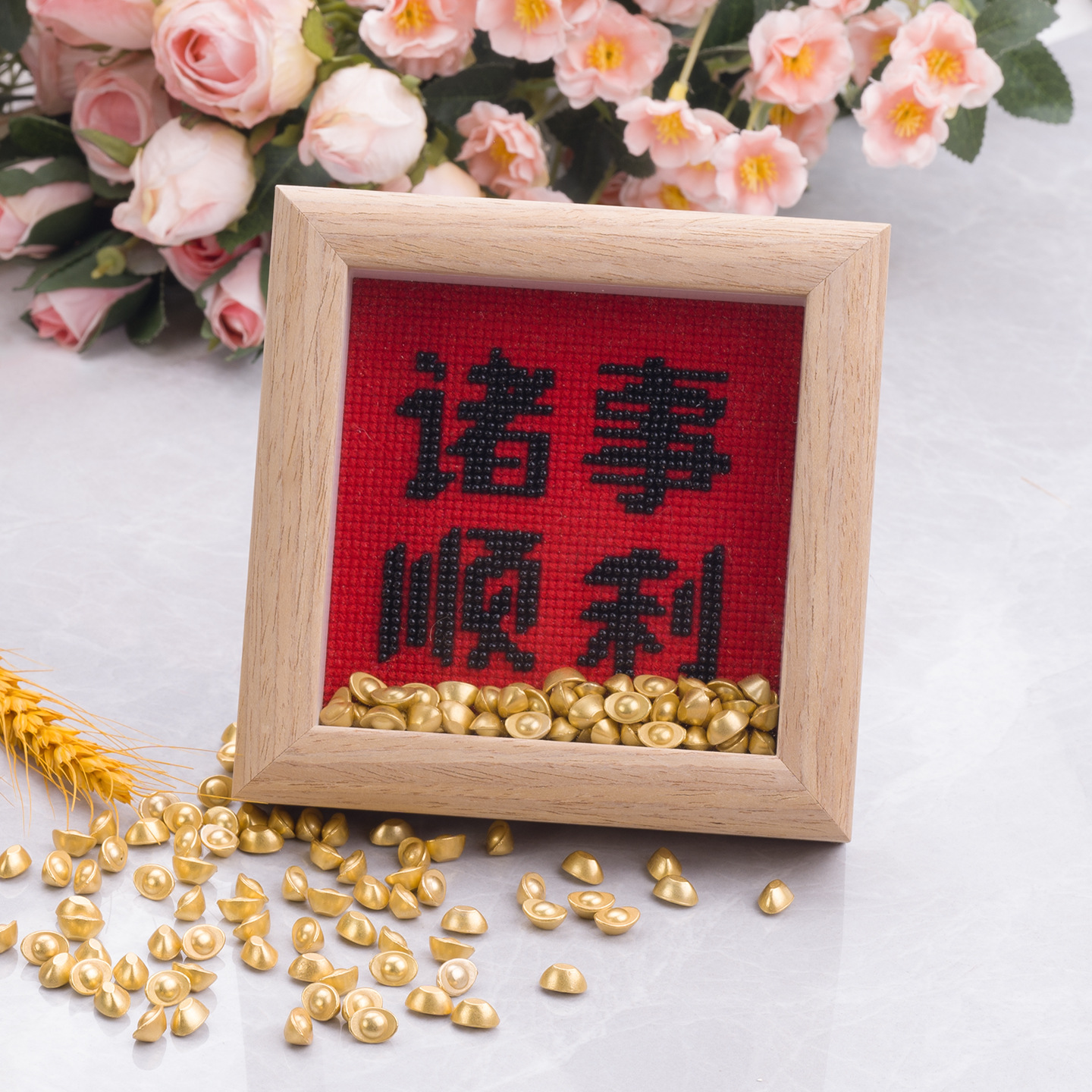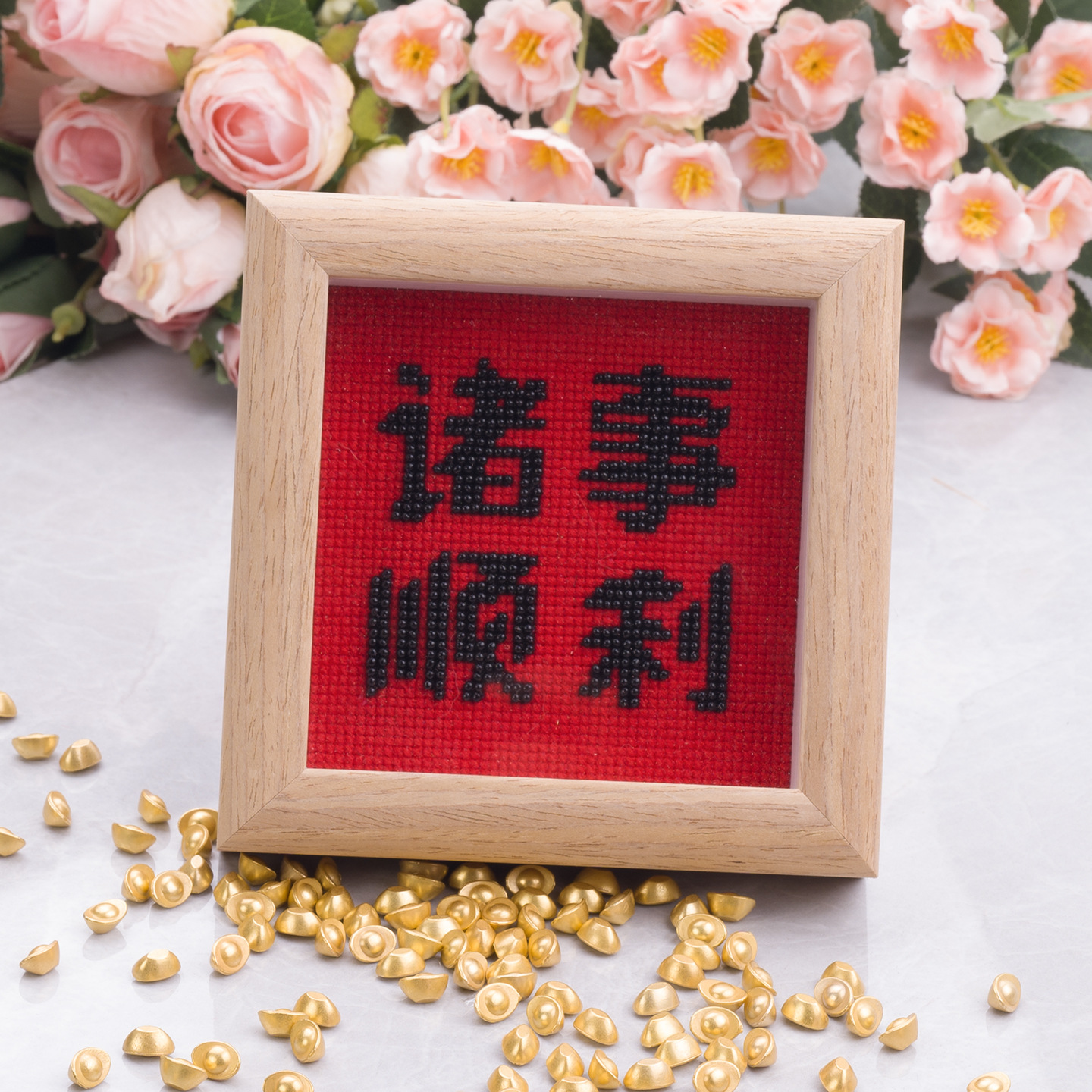 【全线绣是十字绣,不带珠子.】