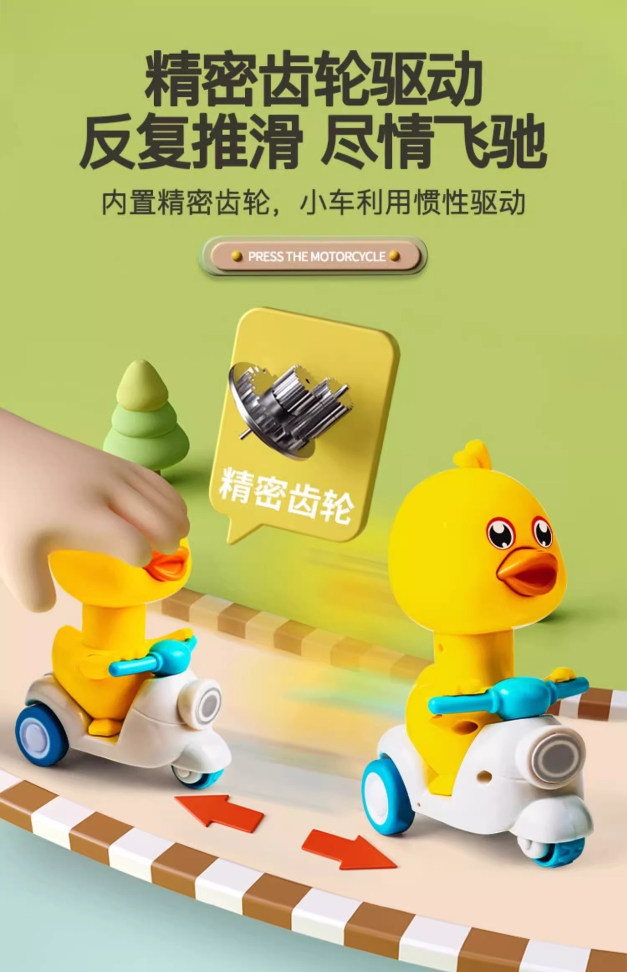 어린이 프레스 작은 오리 오토바이 장난감 1 ~ 3 세 아기 소년과 소녀 작은 노란색 오리 관성 풀백 자동차