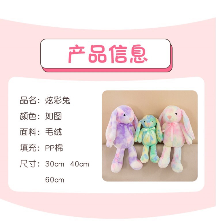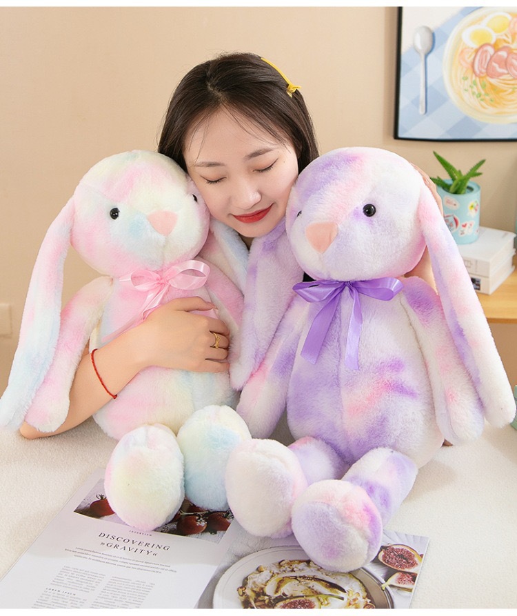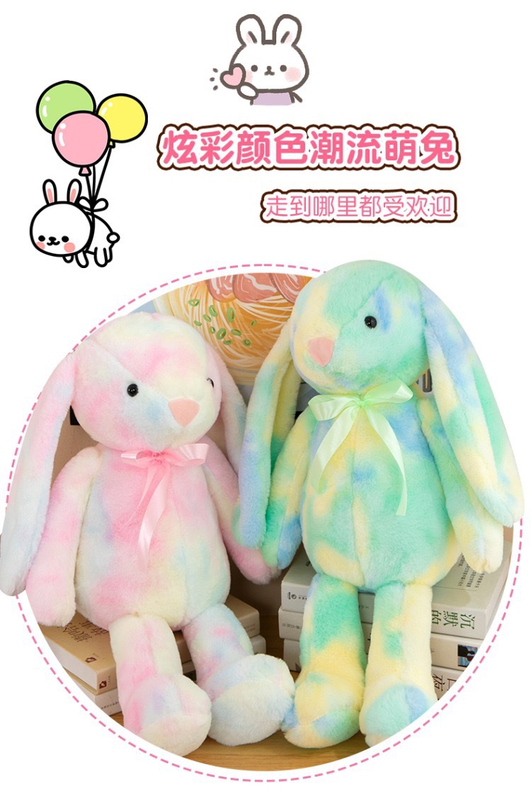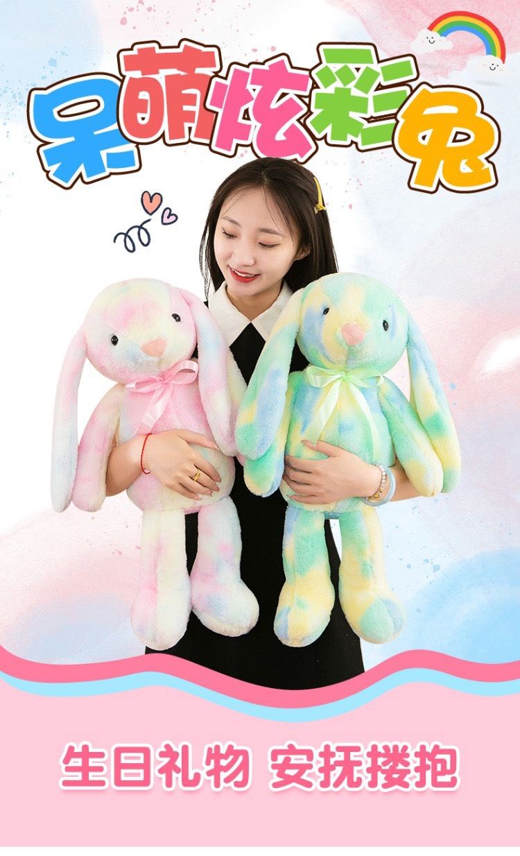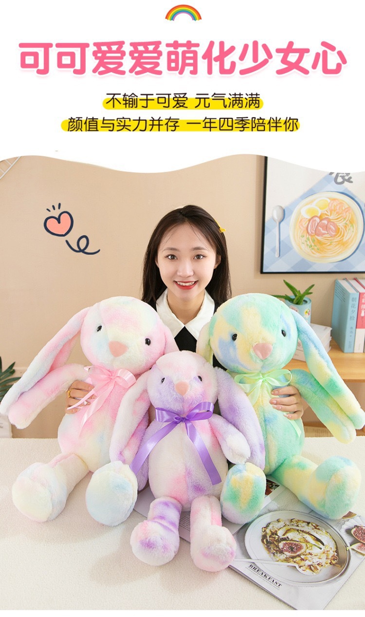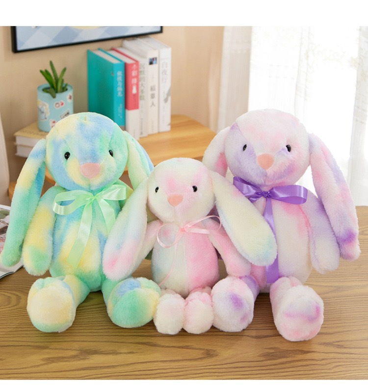창의적인 신상품 타이다이 토끼 컬러풀 인형 귀여운 인형 귀여운 베개 플러시 장난감 해외 도매스토어 가기