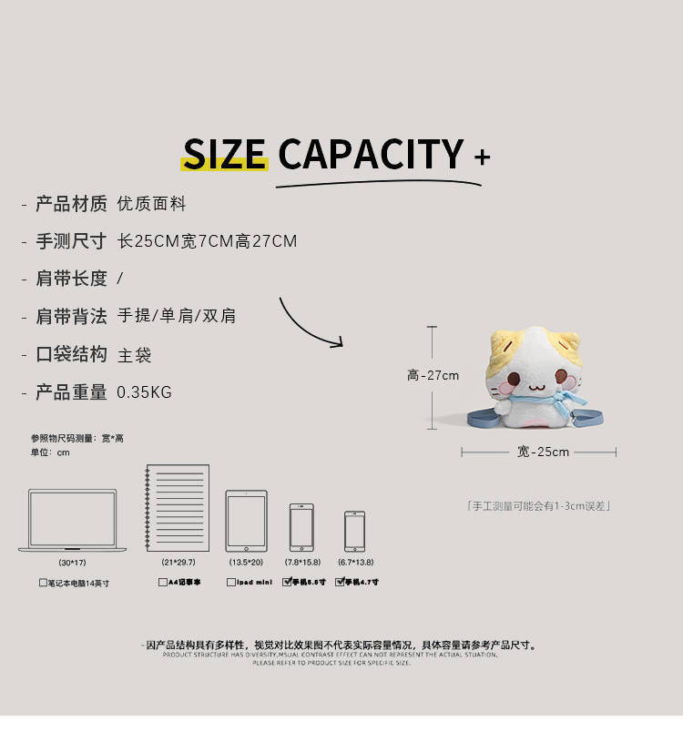 Simumda 공식 정통 마시멜로 고양이 인형 가방 작은 8 인형 가방 귀여운 만화 가방 배낭 도매