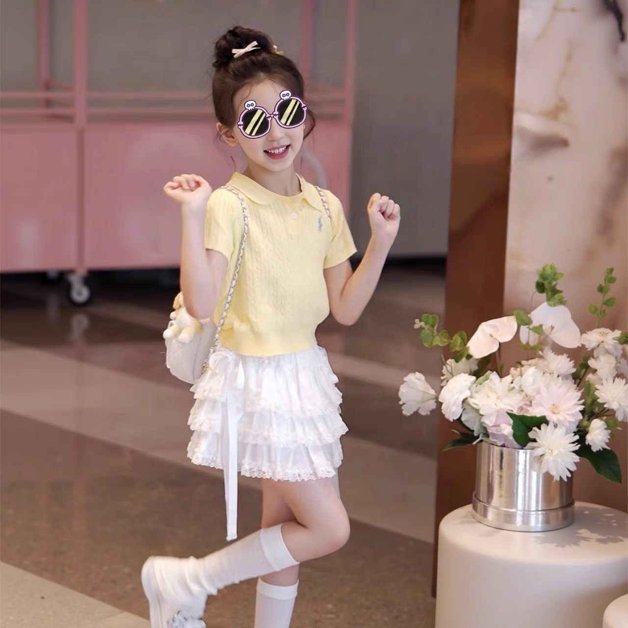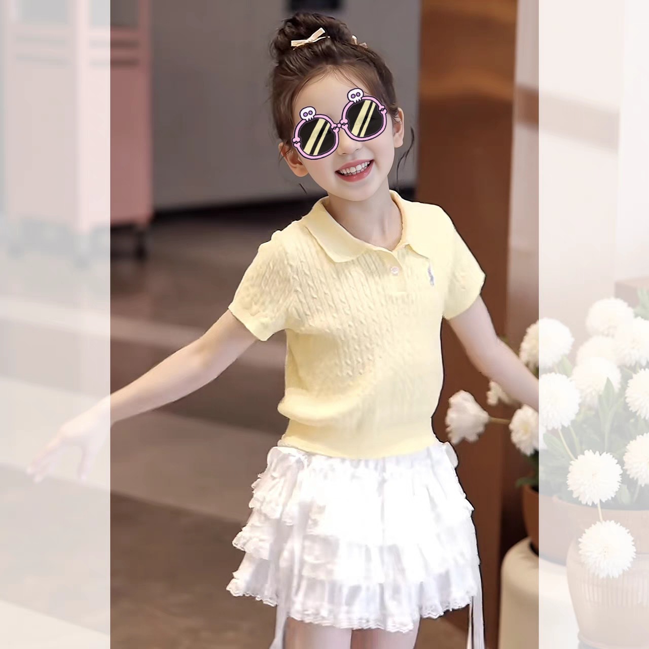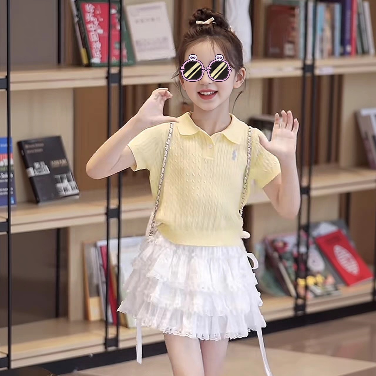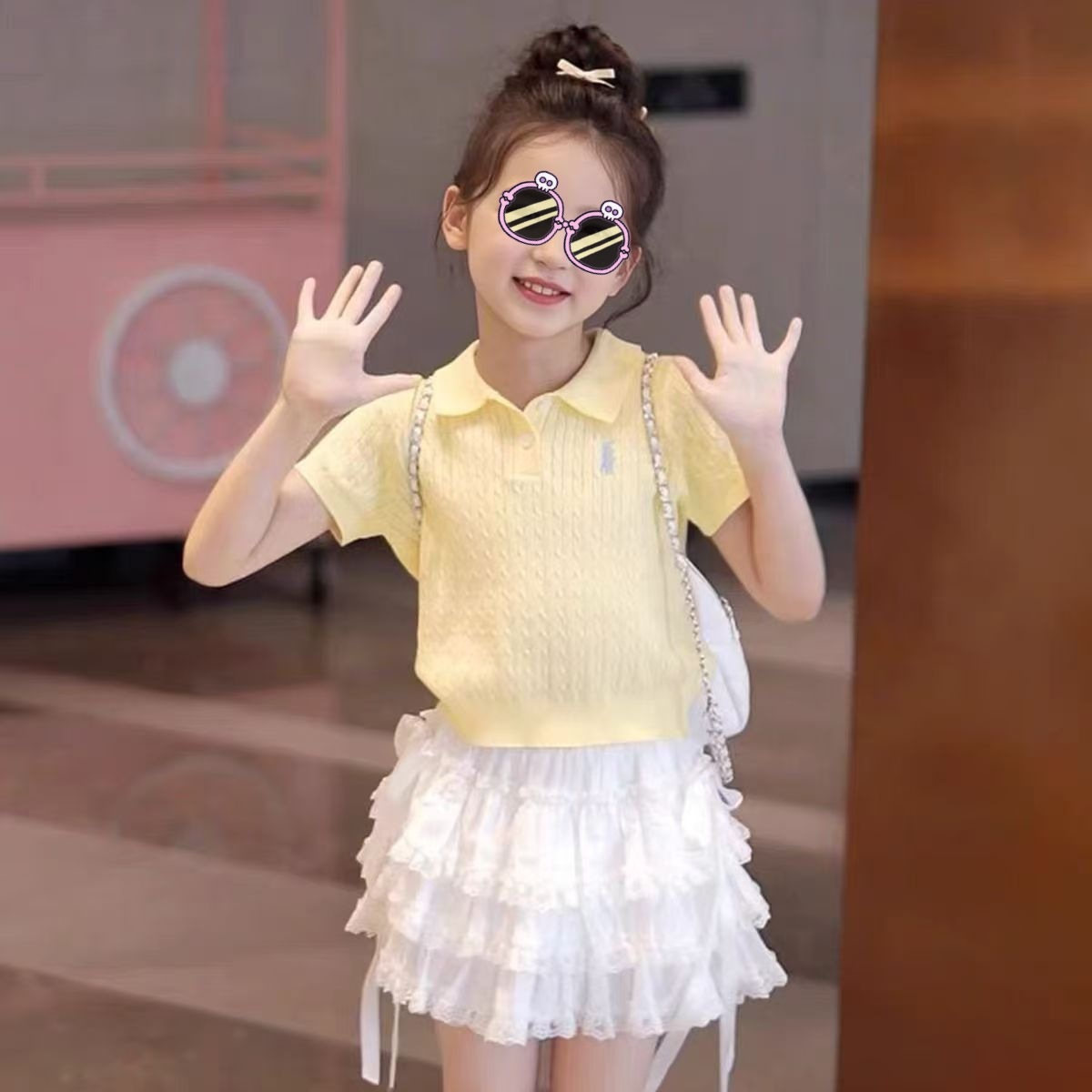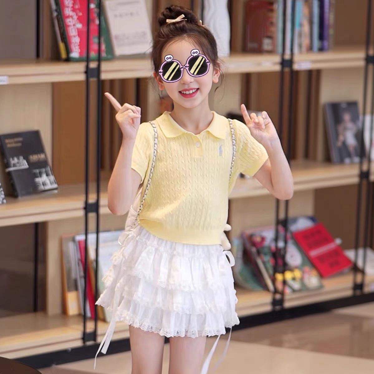 소녀 여름 원피스 세트 2025 새로운 어린이 얇은 반팔 스웨터 여름 소녀 투피스 유행 원피스스토어 가기