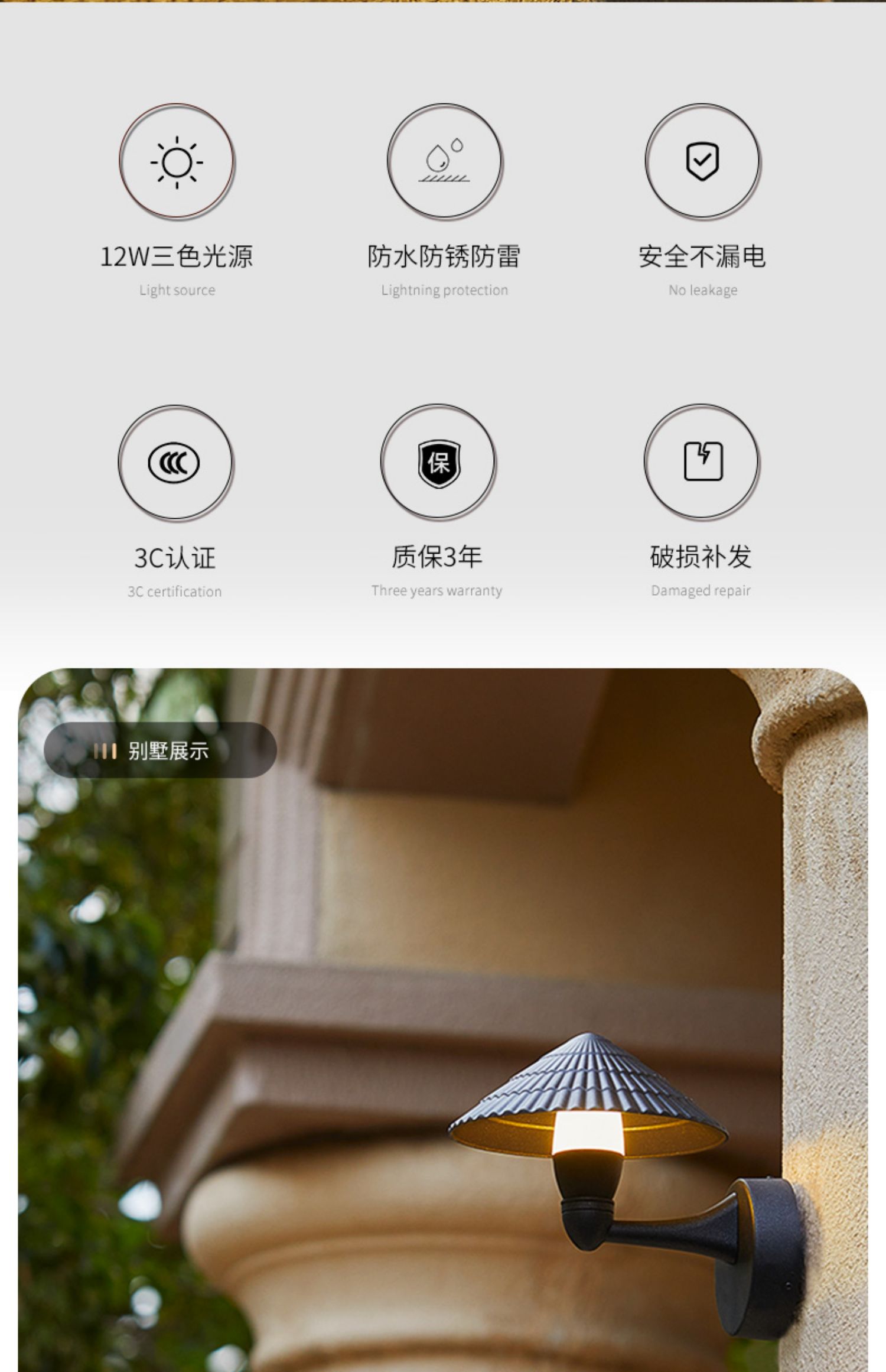 • 고대 로마 벽 램프 하향형 모델/12W 3색 팁 전구