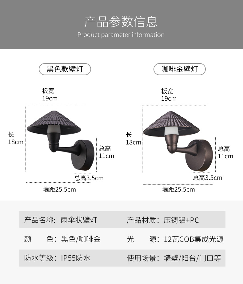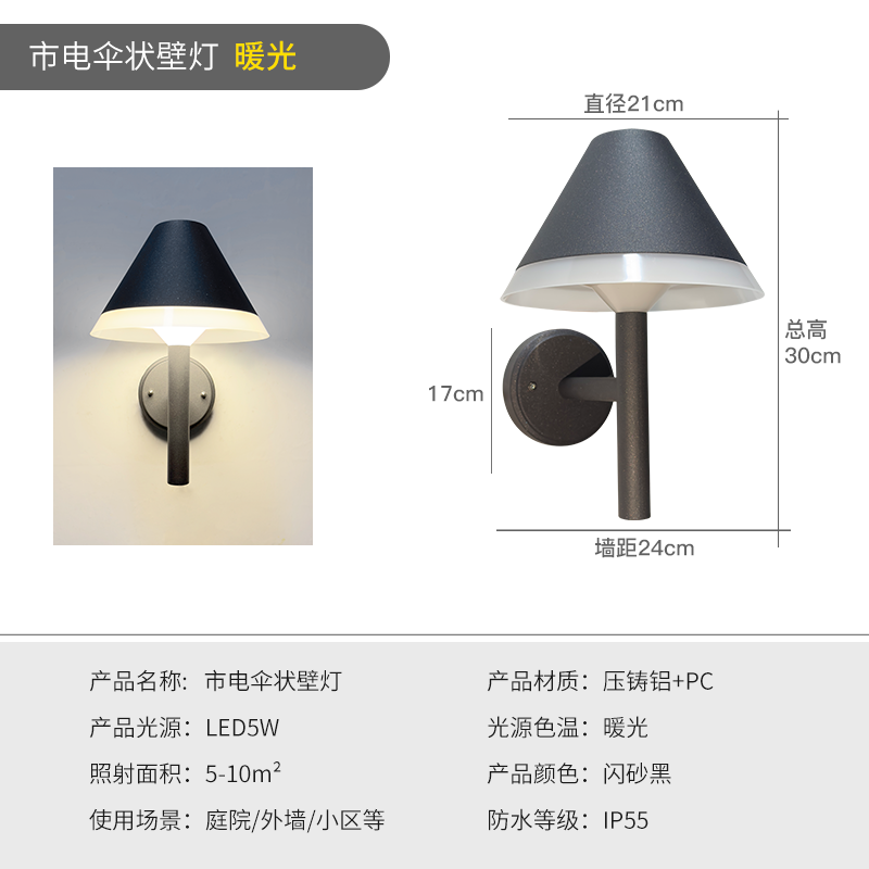 • 우산 벽 램프/플래시 샌드 블랙/5W 따뜻한 빛