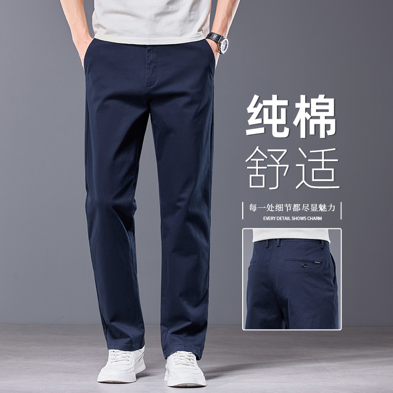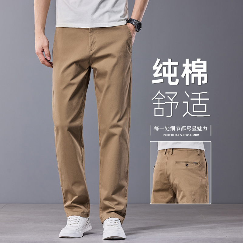 남성용 순면 캐주얼 바지 2025 여름 새로운 느슨하고 편안한 얇은 바지 스트레이트 탄성 남성 바지 드롭 배송