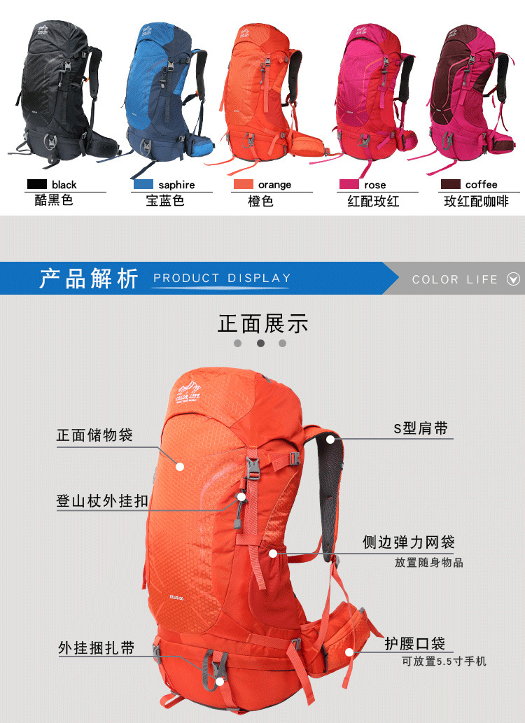 대용량 전문 등산 가방 야외 하이킹 배낭 방수 및 내마모성 경량 등산 장비 배낭스토어 가기