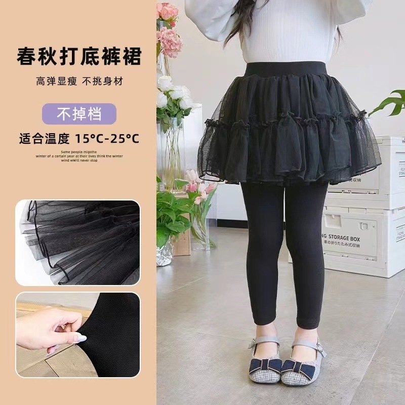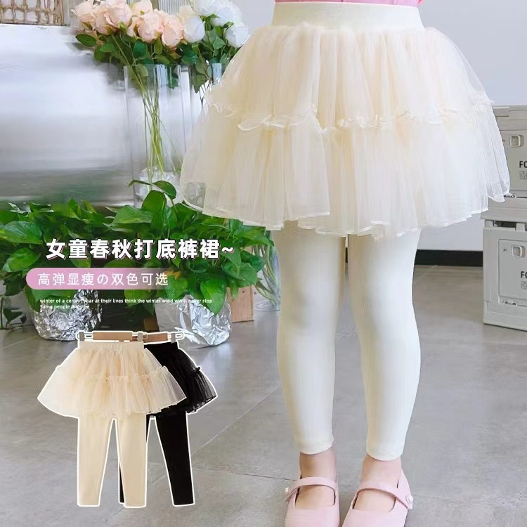 여아용 팬츠 스커트, 봄 여름 다용도 아동용 페이크 투피스 팬츠, 패셔너블한 거즈 스커트, 화이트 레깅스, 아우터용 베이비 팬츠
