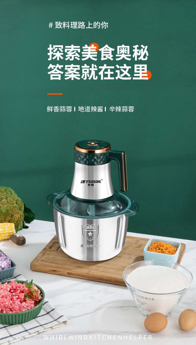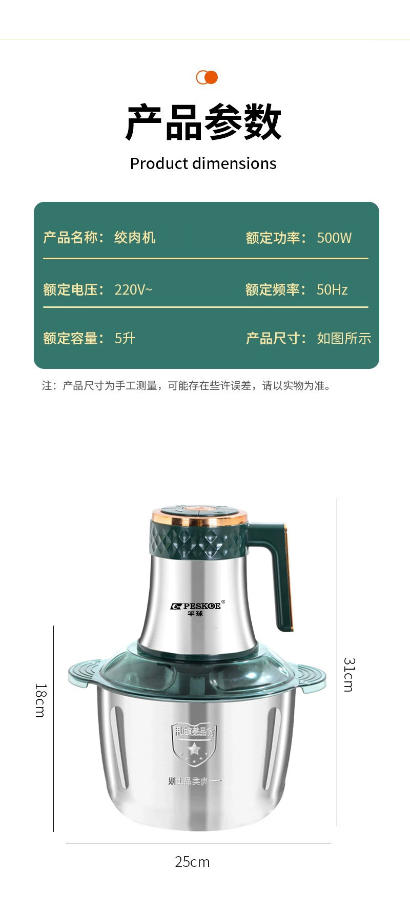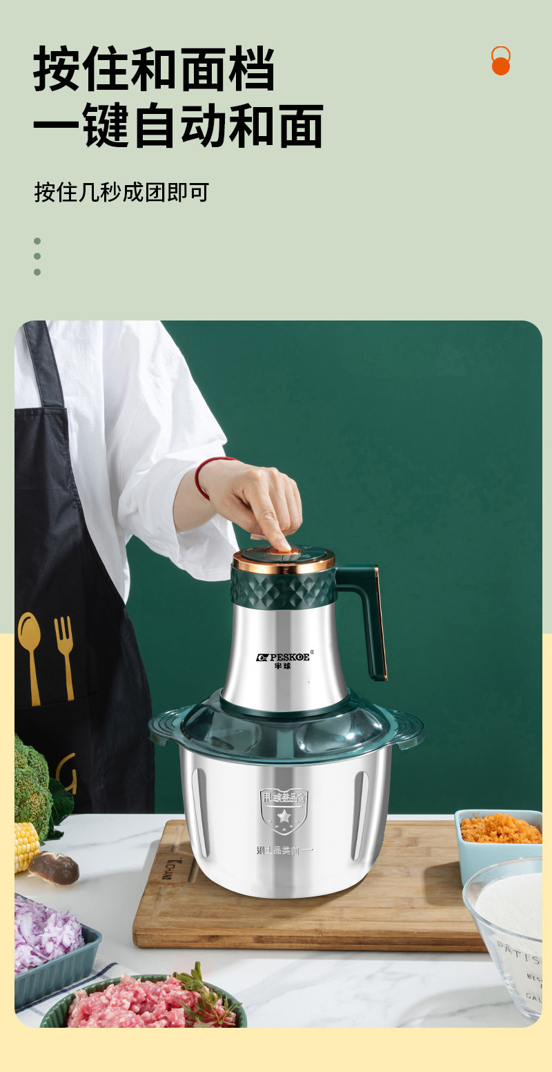 반구형 고기 분쇄기 가정용 5L 전기 소형 믹서기 자동 다목적 고기 분쇄 및 반죽 다기능스토어 가기