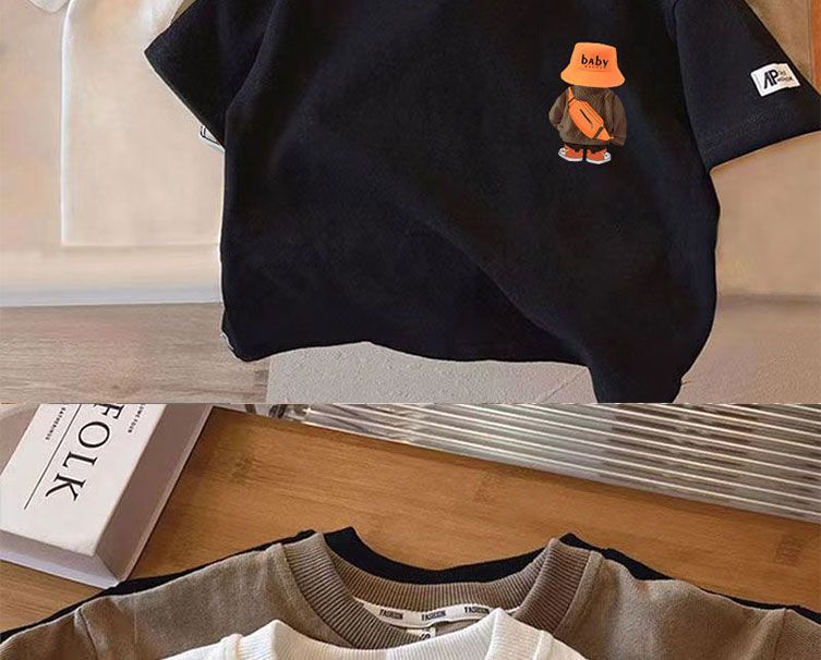 새로운 여름 한국식 소년 소녀 코튼 반팔 티셔츠 탑 잘 생긴 서양식 여름 아기베이스 셔츠 트렌디 T스토어 가기