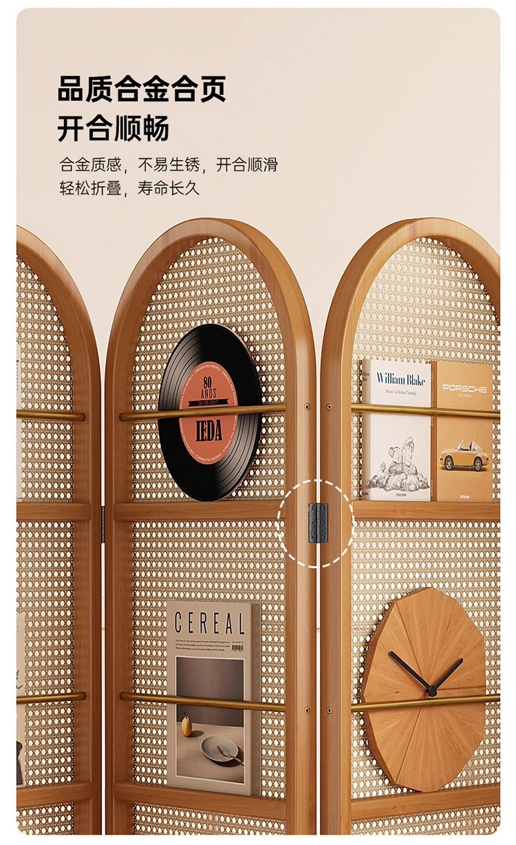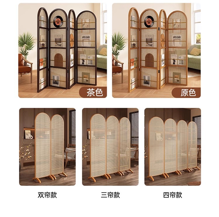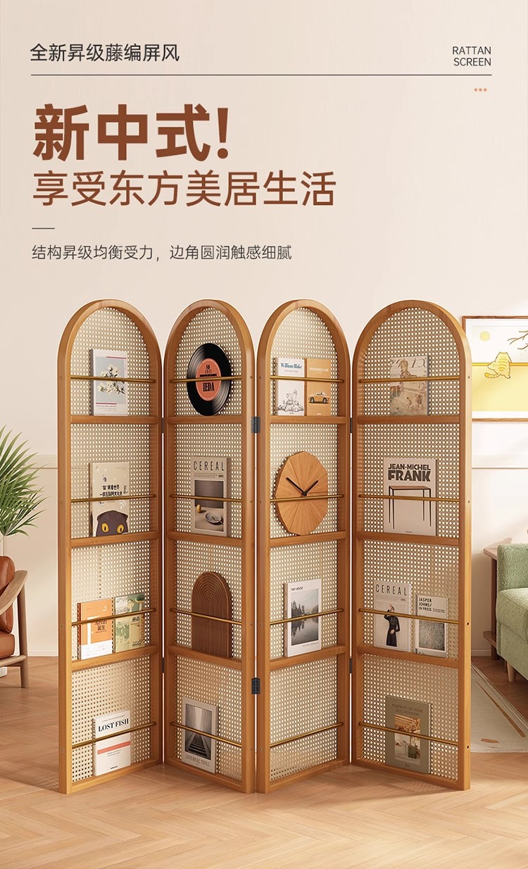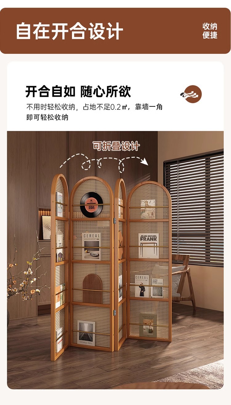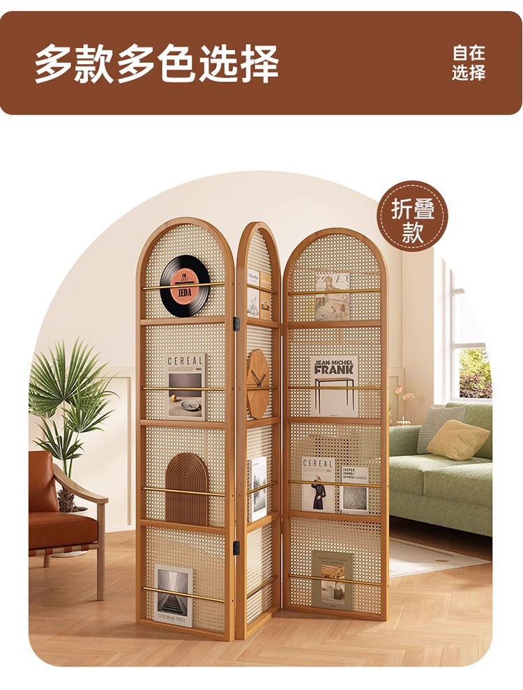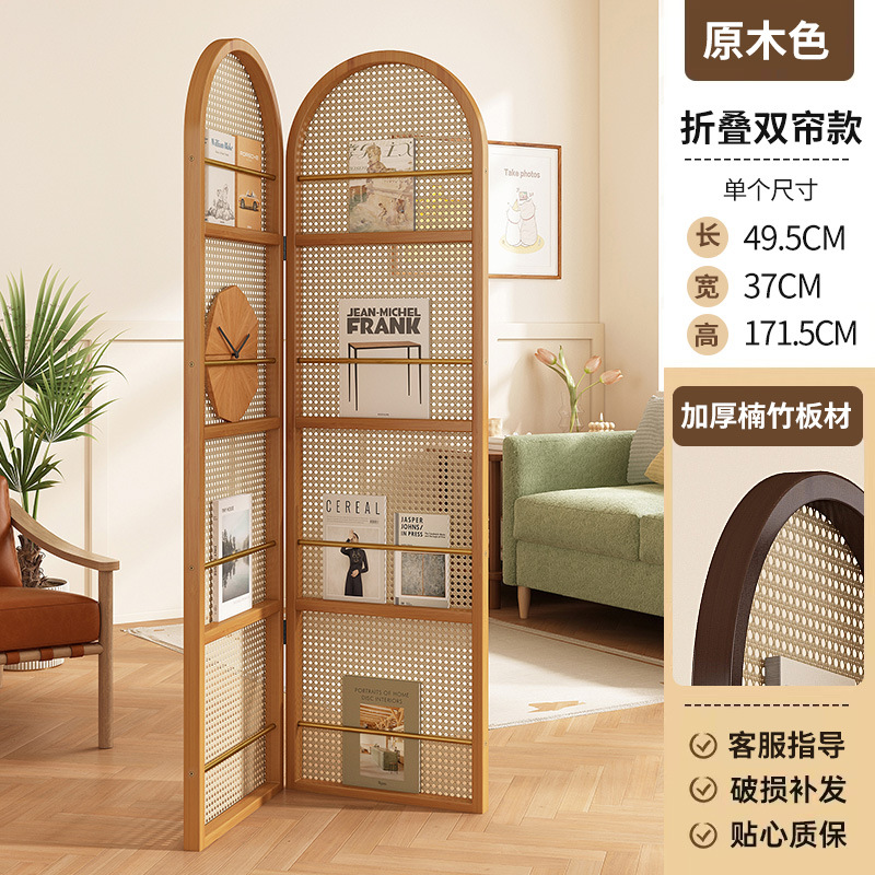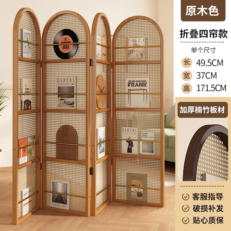 일본식 등나무 스크린 파티션, 거실용 원목 접이식 이동식 소형 아파트 입구 마감재 잡지 책장, 속이 빈 디자인스토어 가기